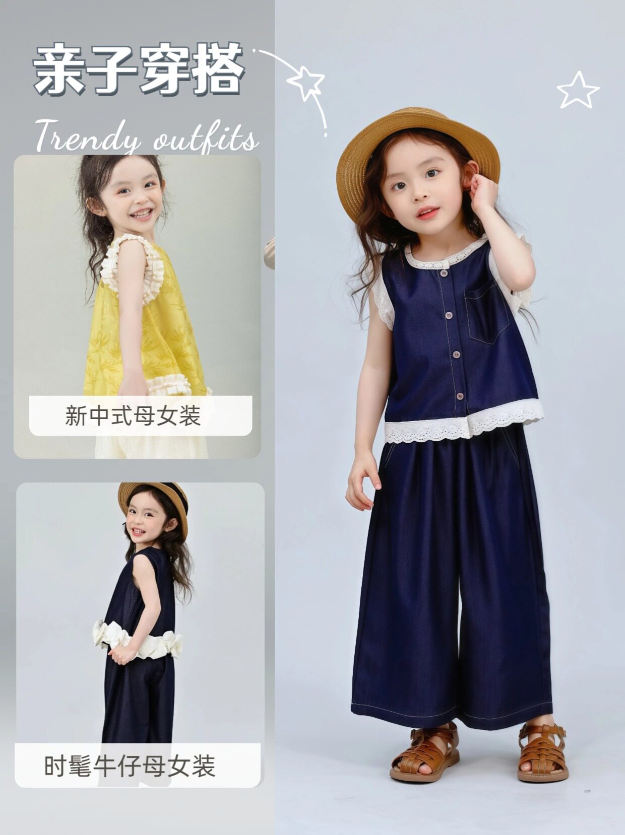 親子裝母女款2026新款夏季炸街輕薄高級感天絲牛仔兩件套女童套裝