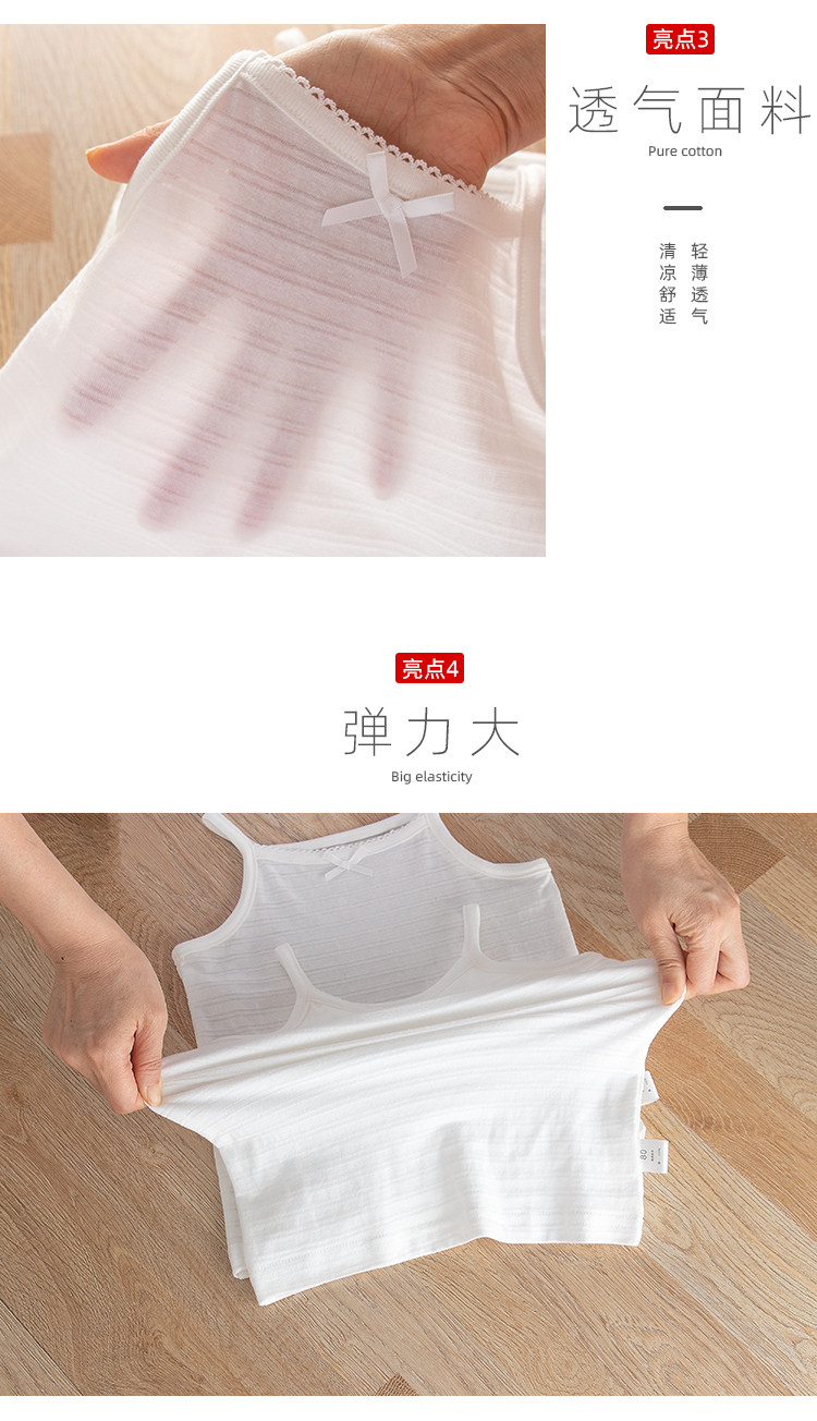 2件女童純棉薄款背心基礎白色吊帶內衣睡衣女孩寶寶打底衫外穿A類