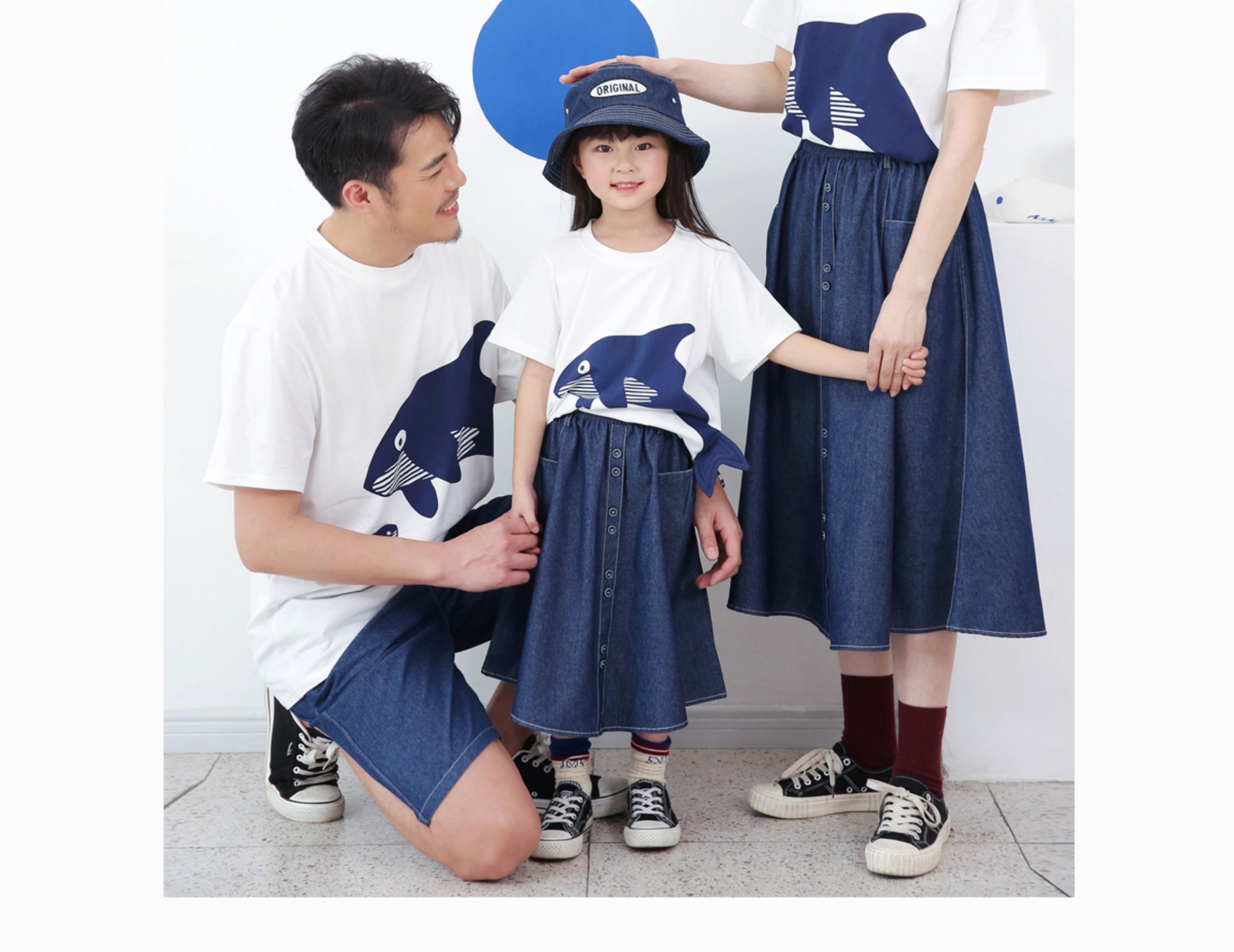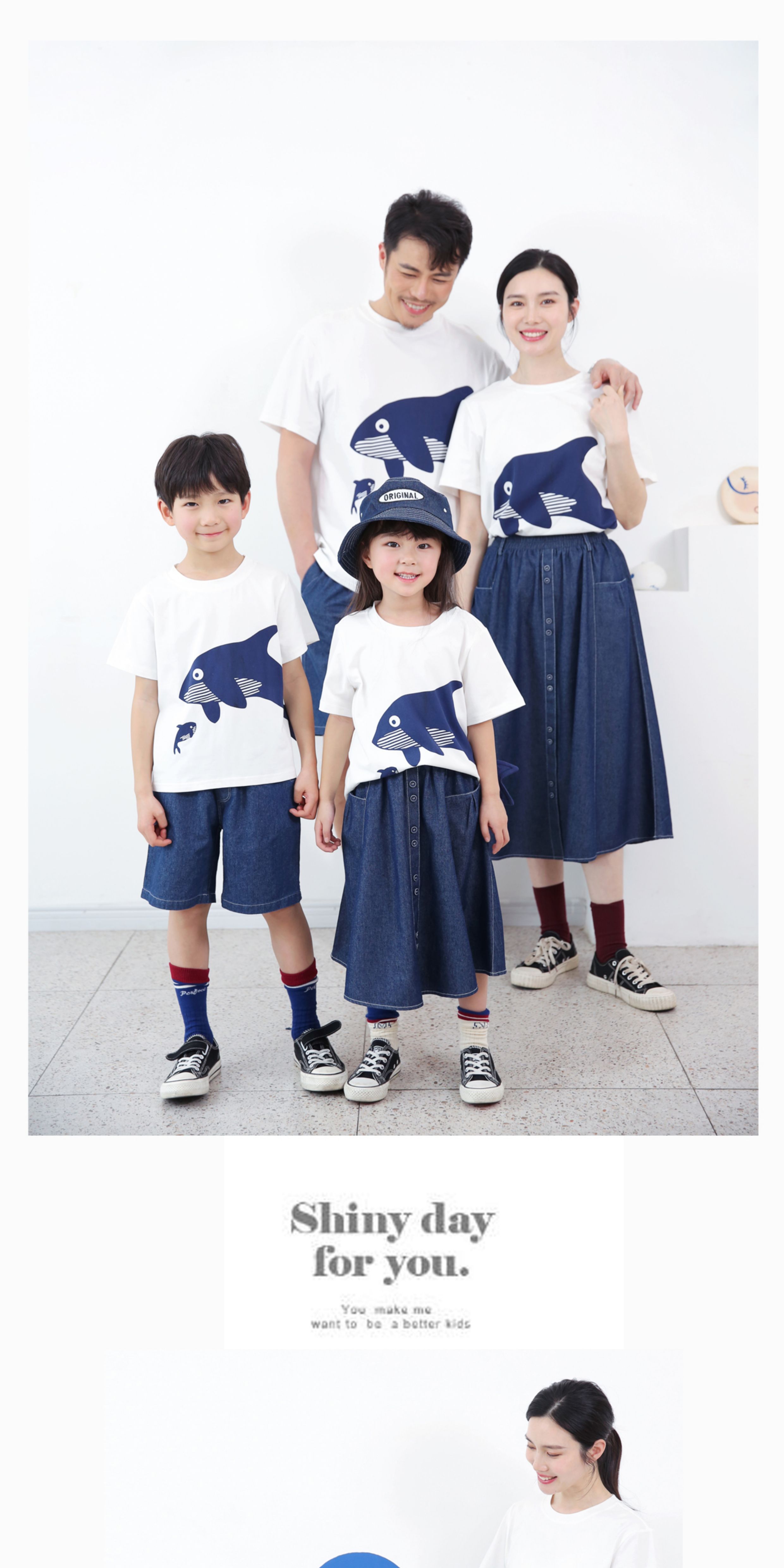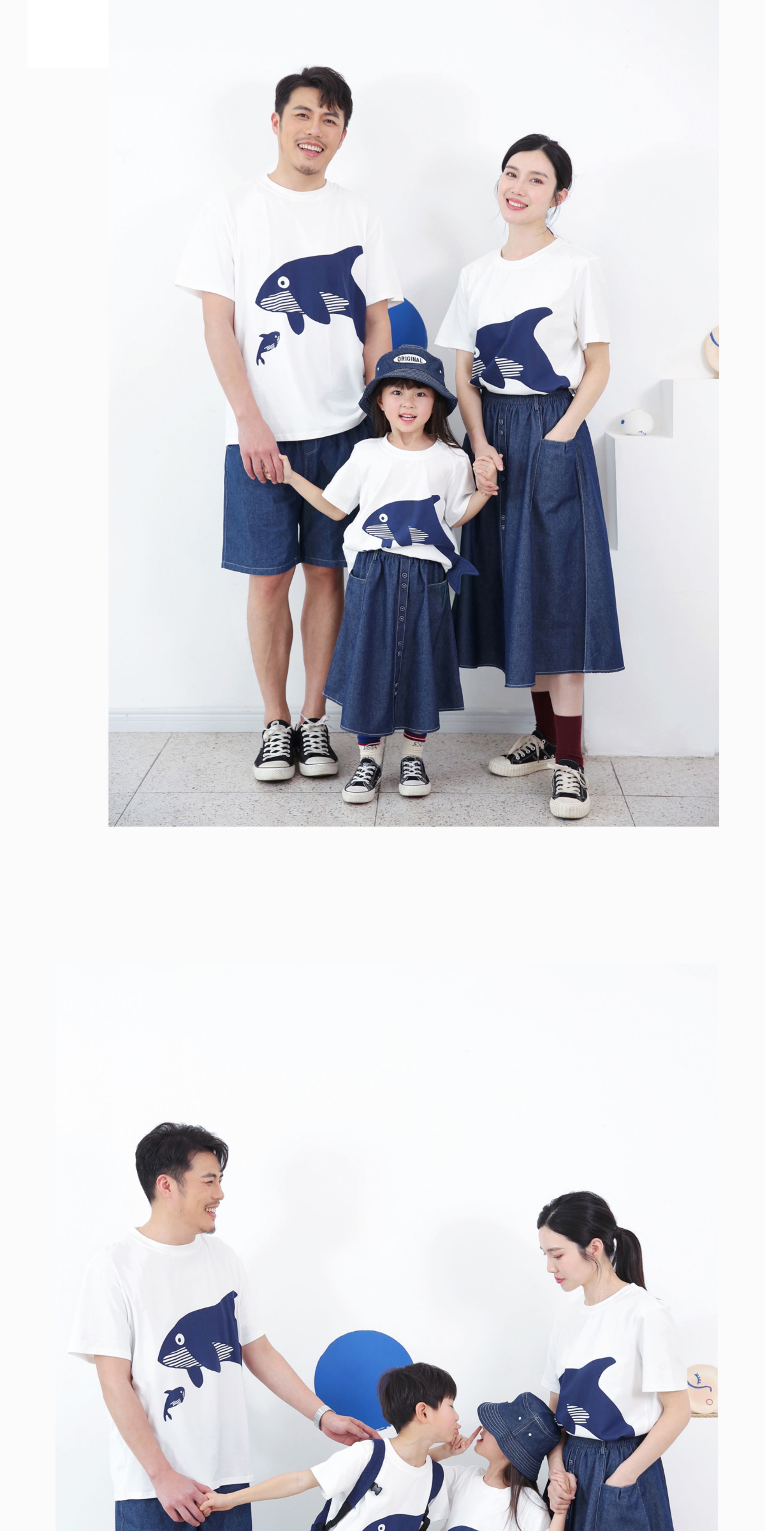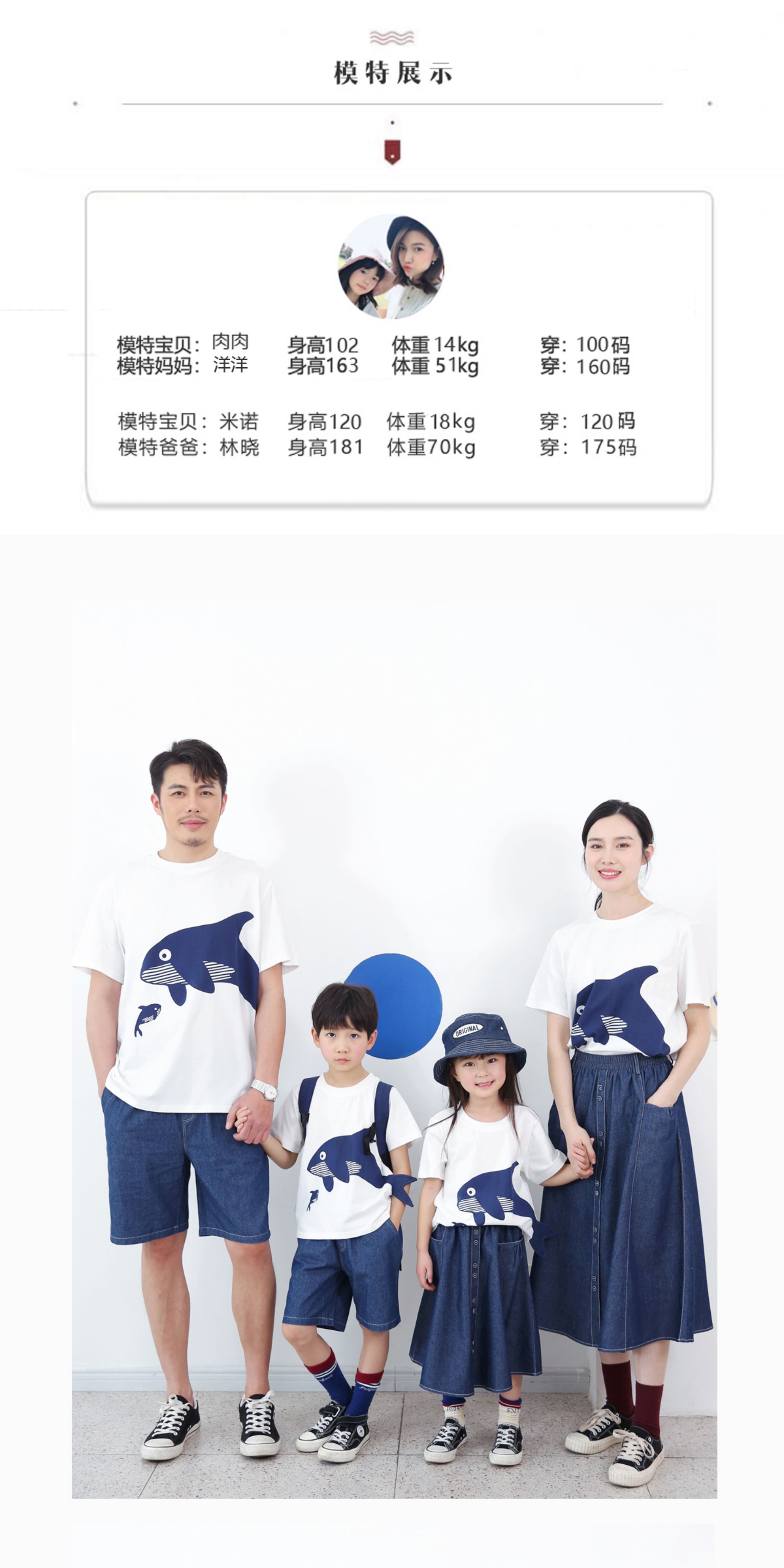 2025夏裝新款純棉寬松洋氣鯨魚T恤親子裝/高級一家三口四口全家裝