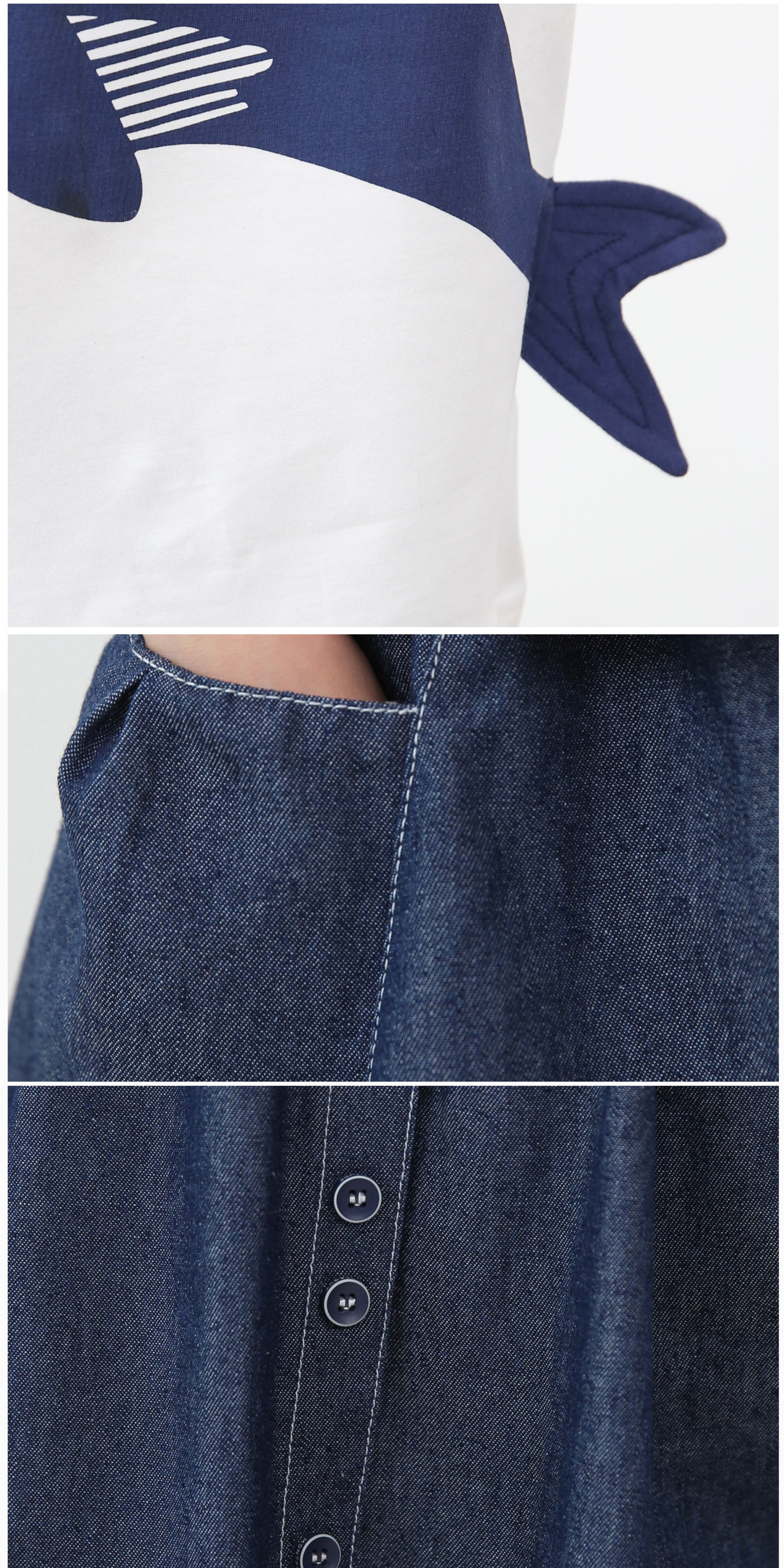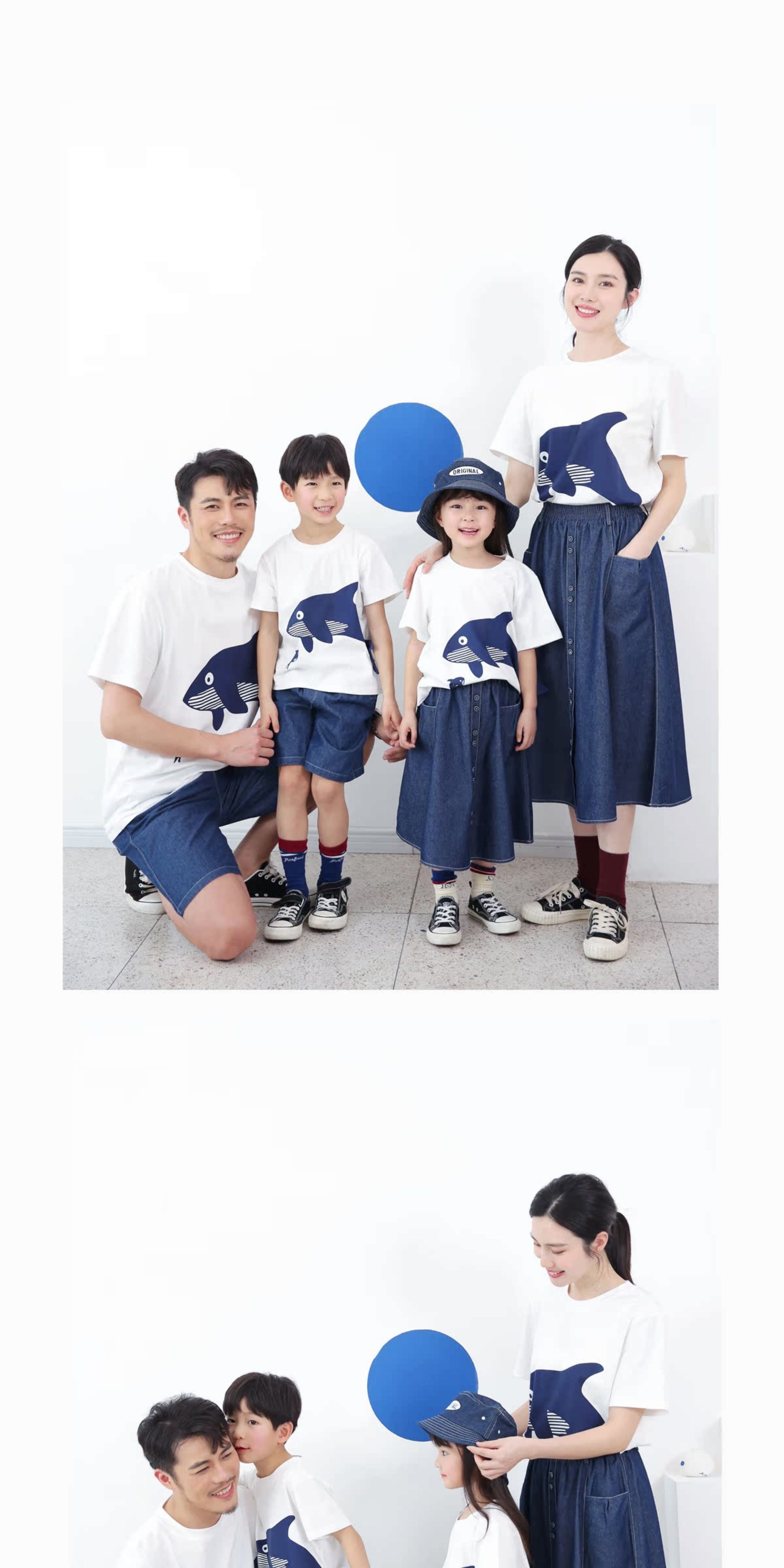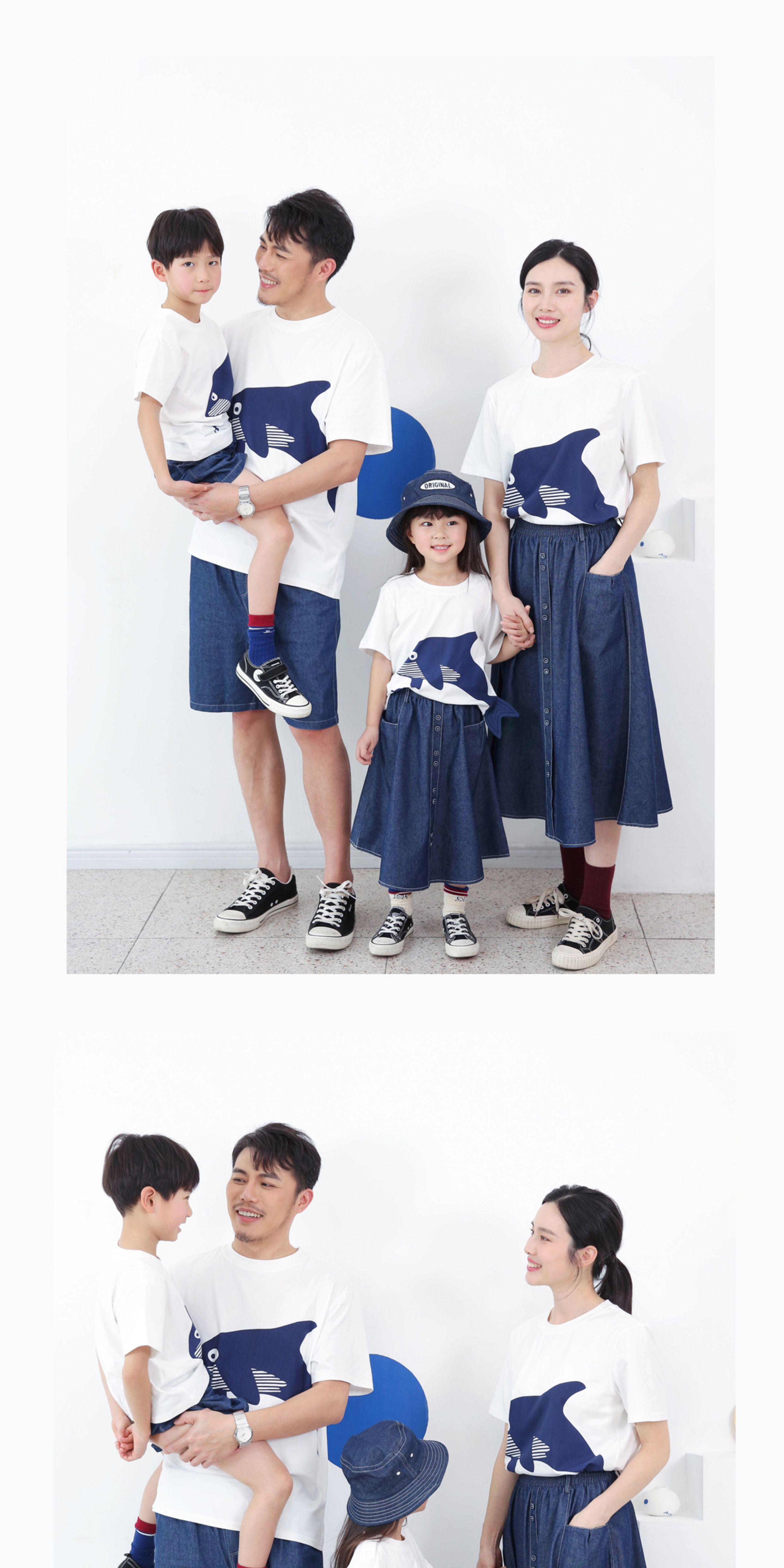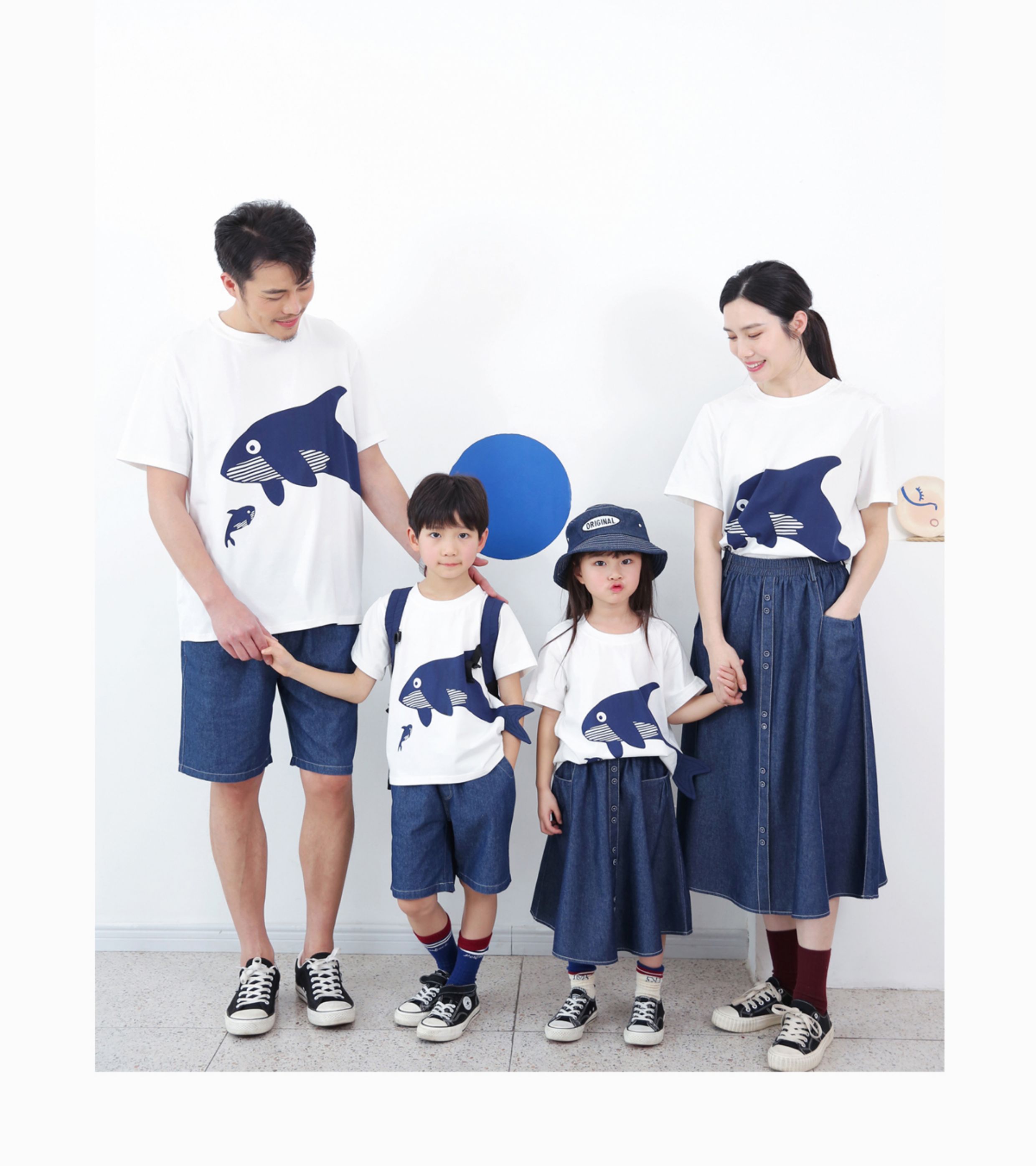2025夏裝新款純棉寬松洋氣鯨魚T恤親子裝/高級一家三口四口全家裝