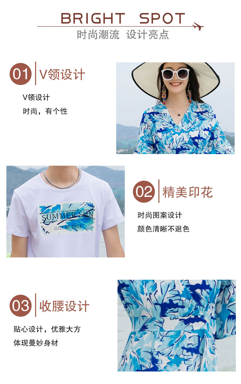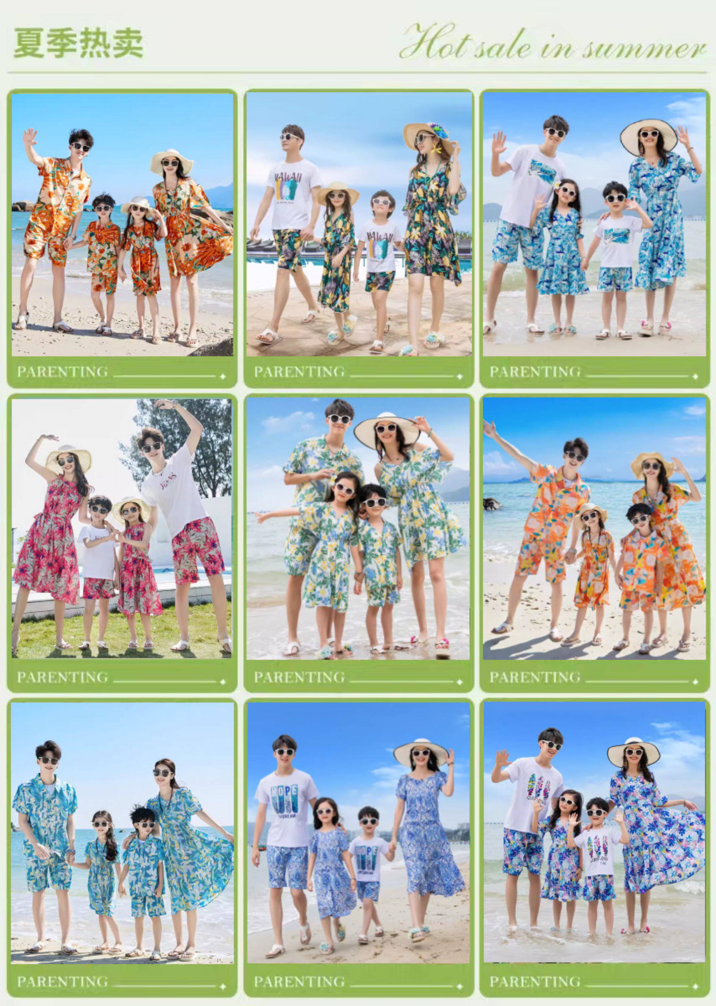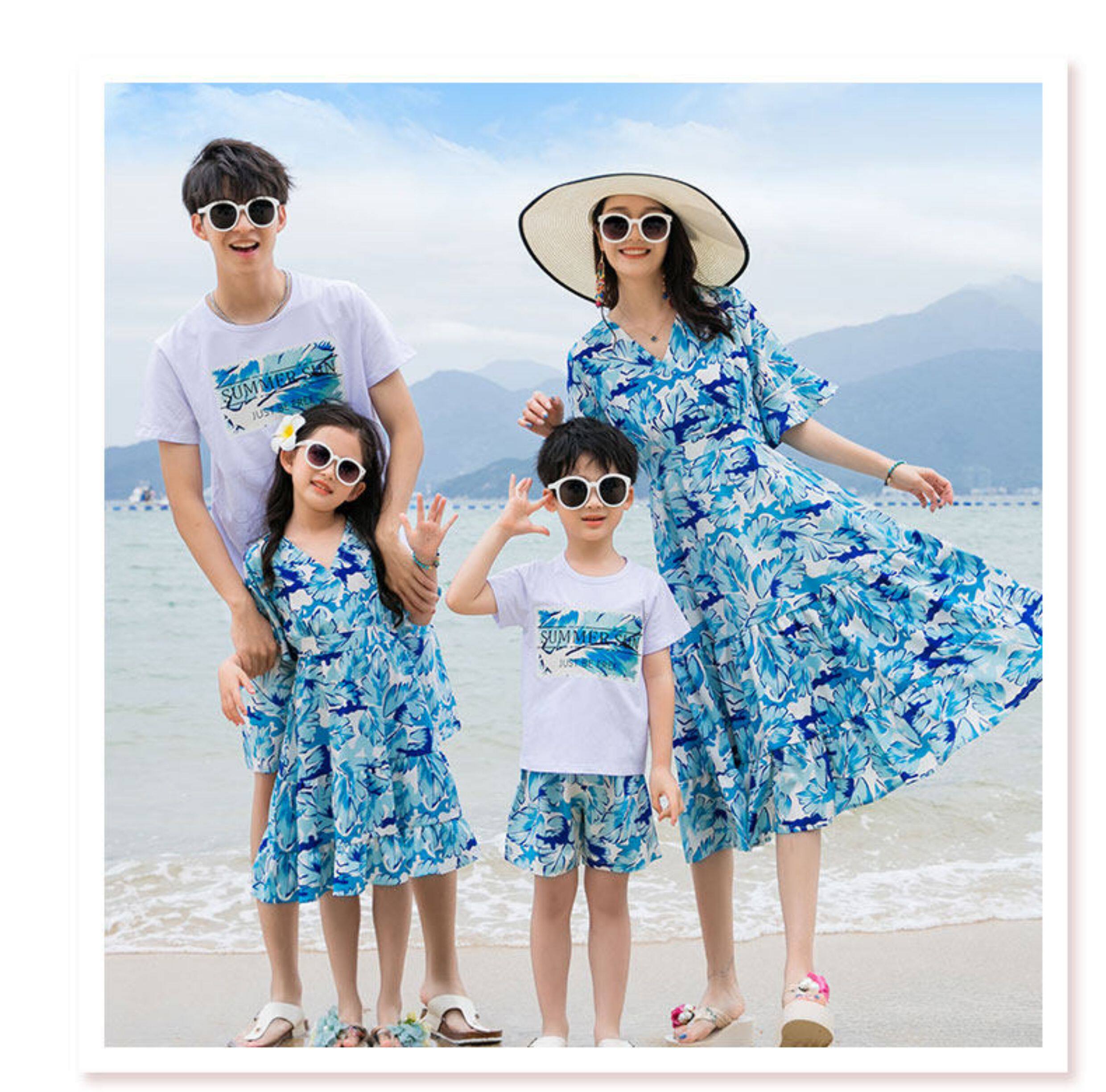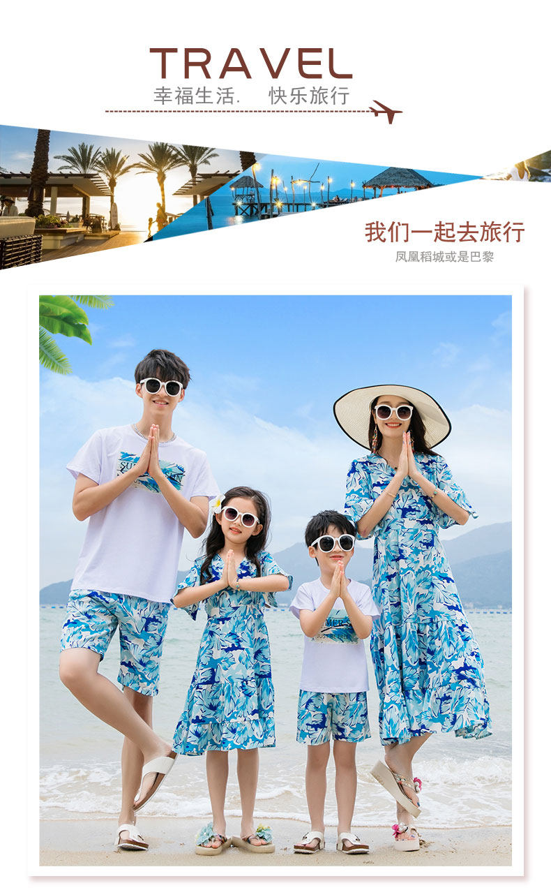 親子裝一家三口四口沙灘海邊母女連衣裙夏季大碼三亞度假短袖套裝