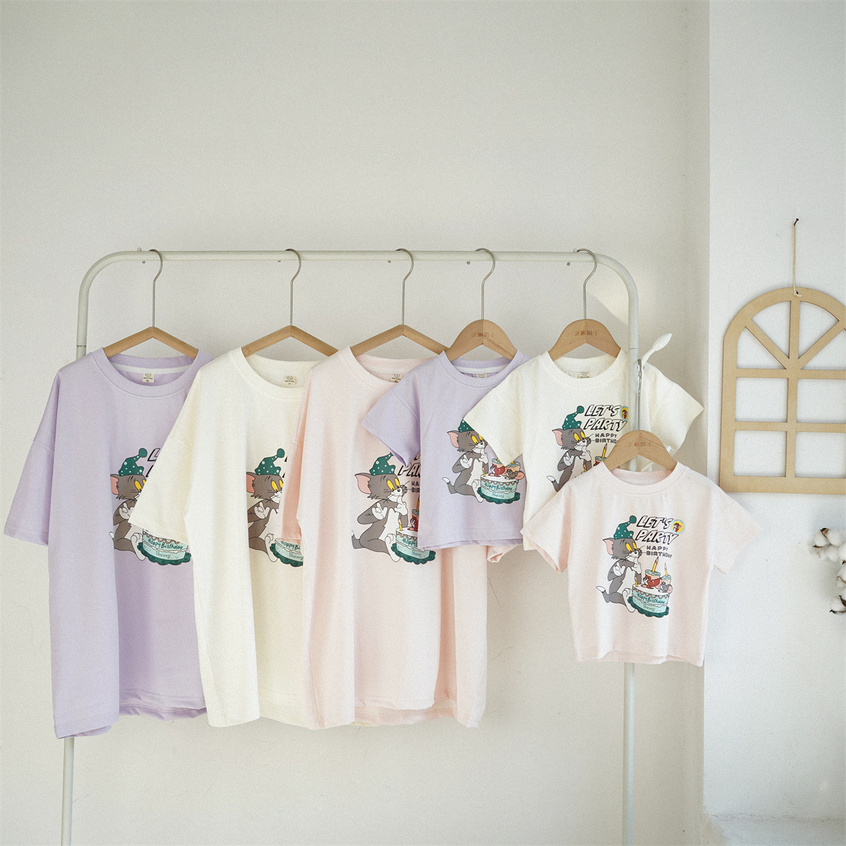 韓國童裝ins親子裝短袖t恤純棉可愛卡通老鼠夏款母女母子裝兄妹