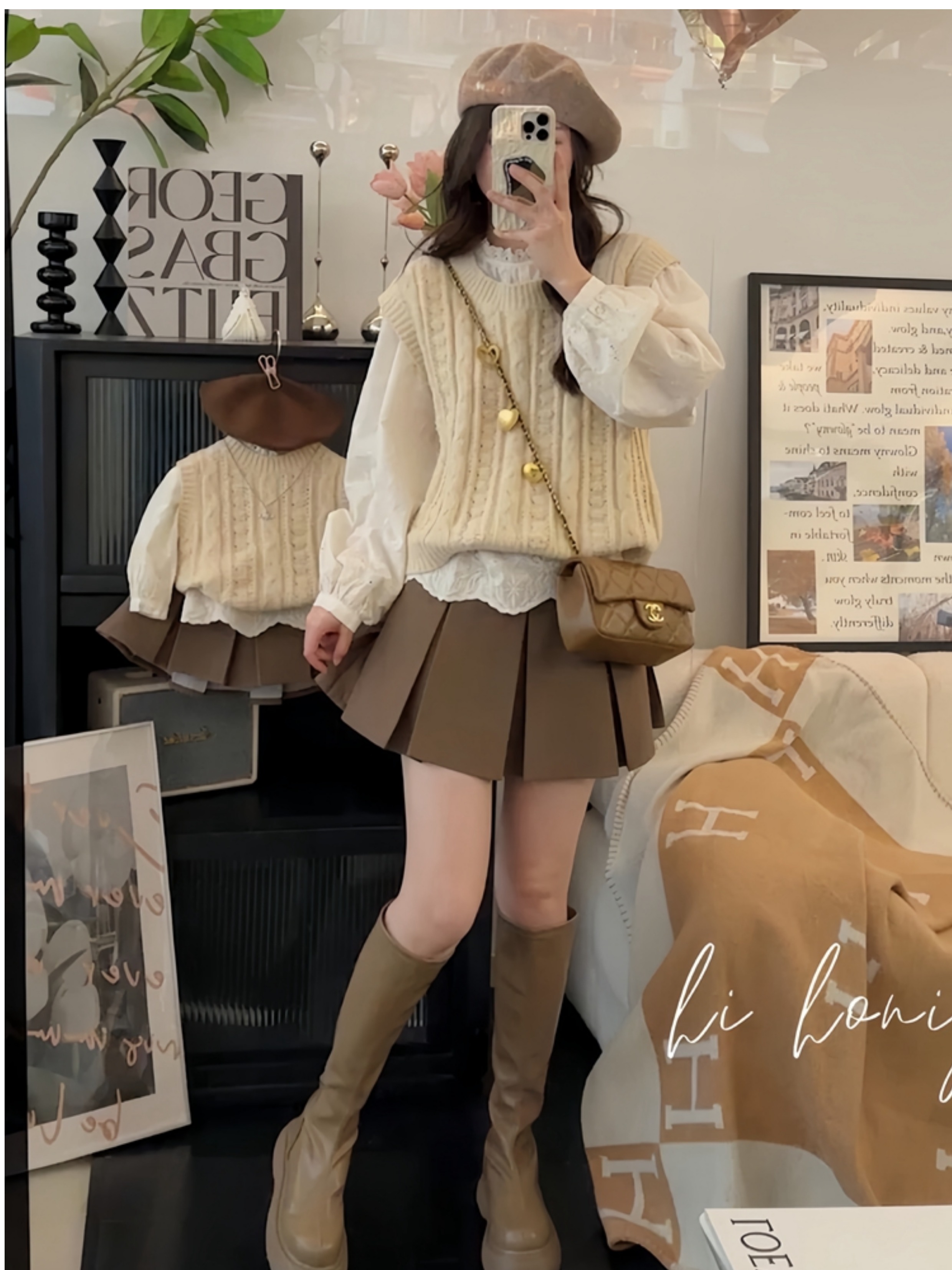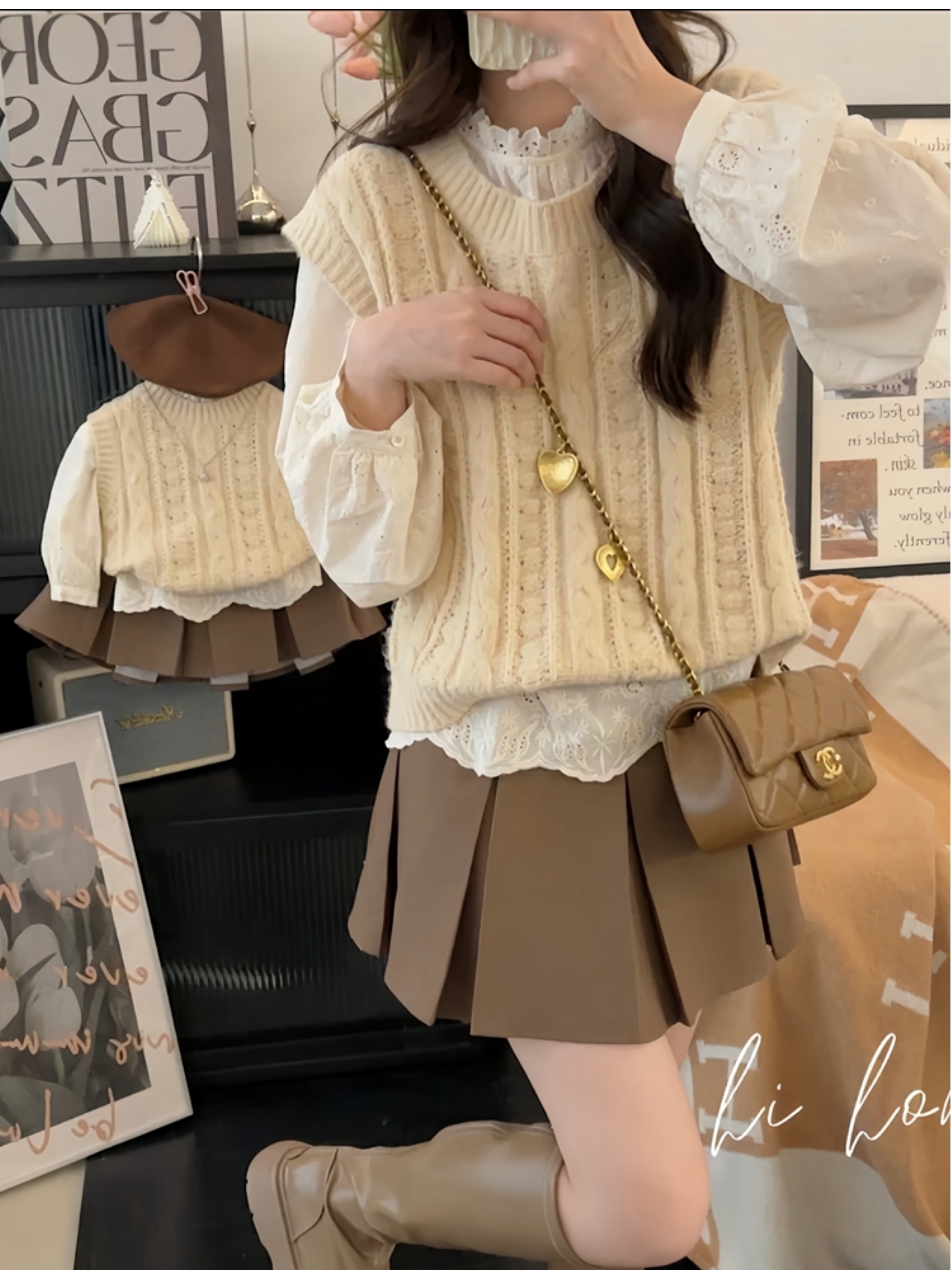 炸街親子裝2024新款秋冬一家三口洋氣韓版母女母子裝針織毛衣外套
