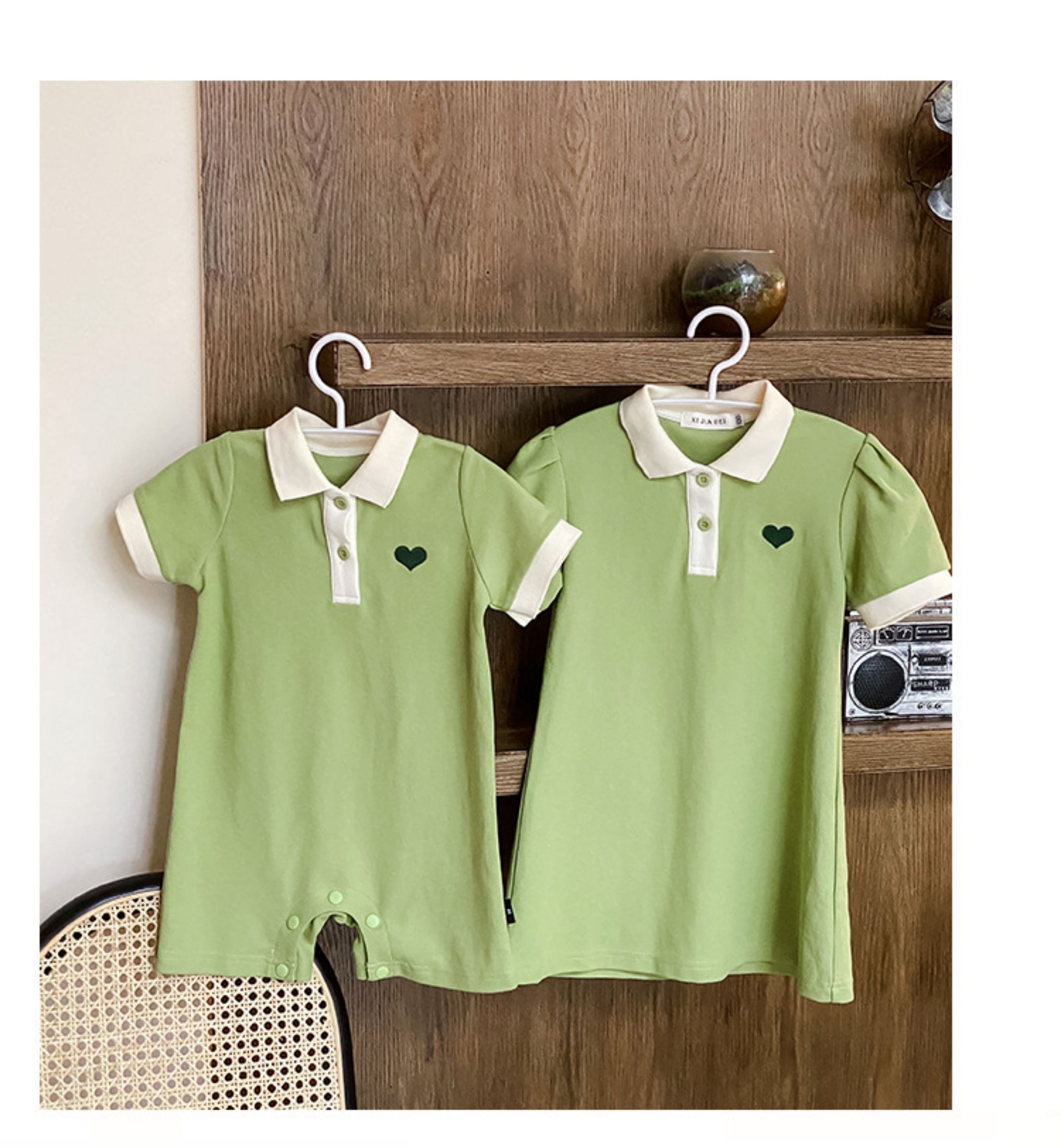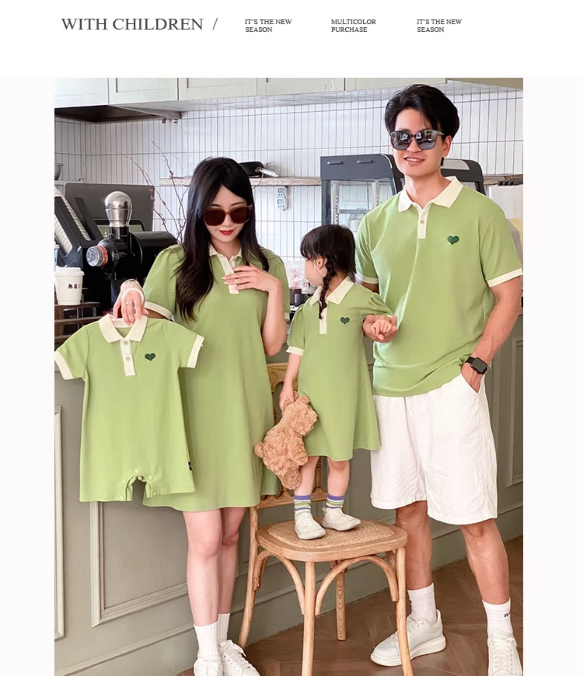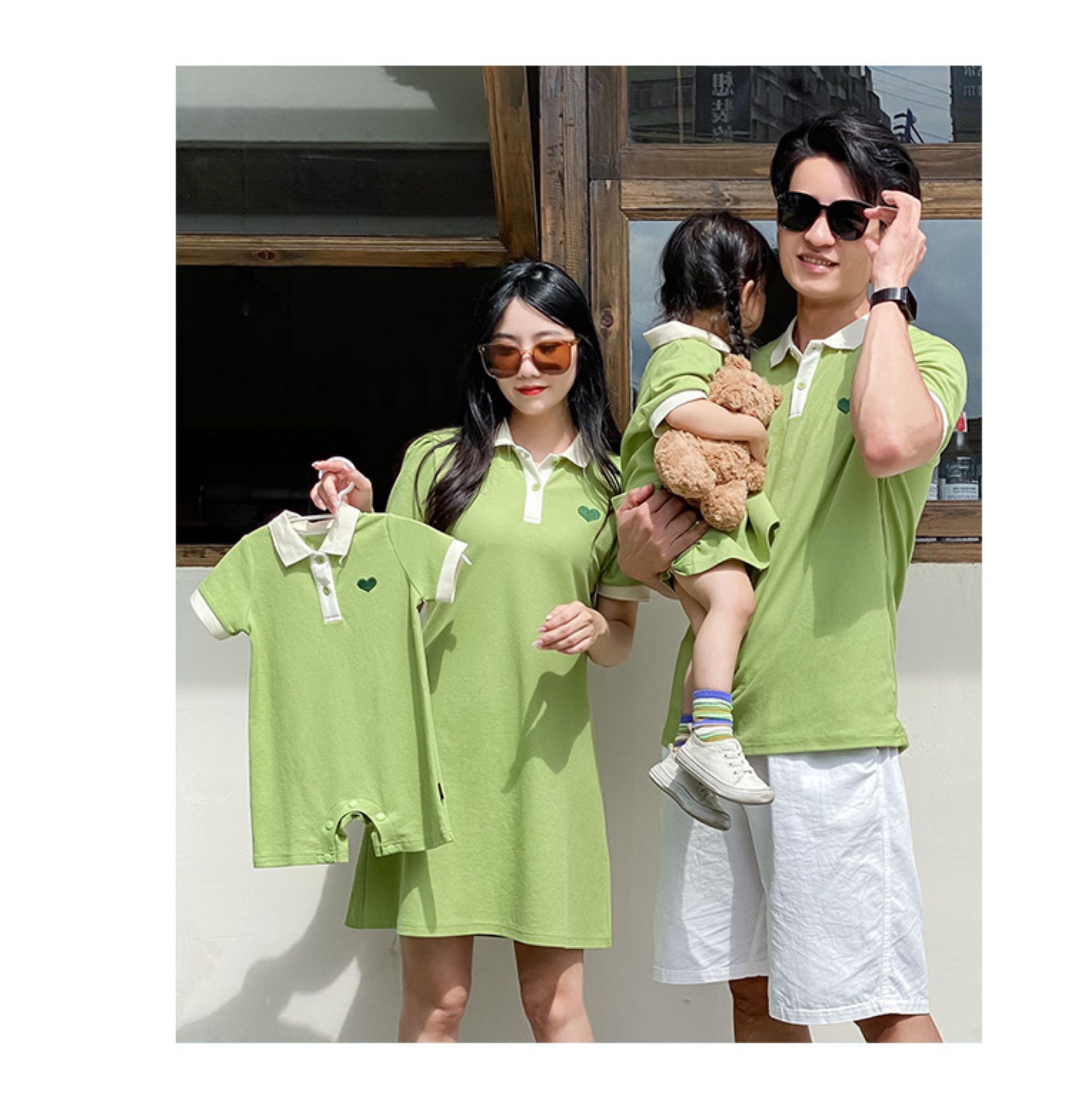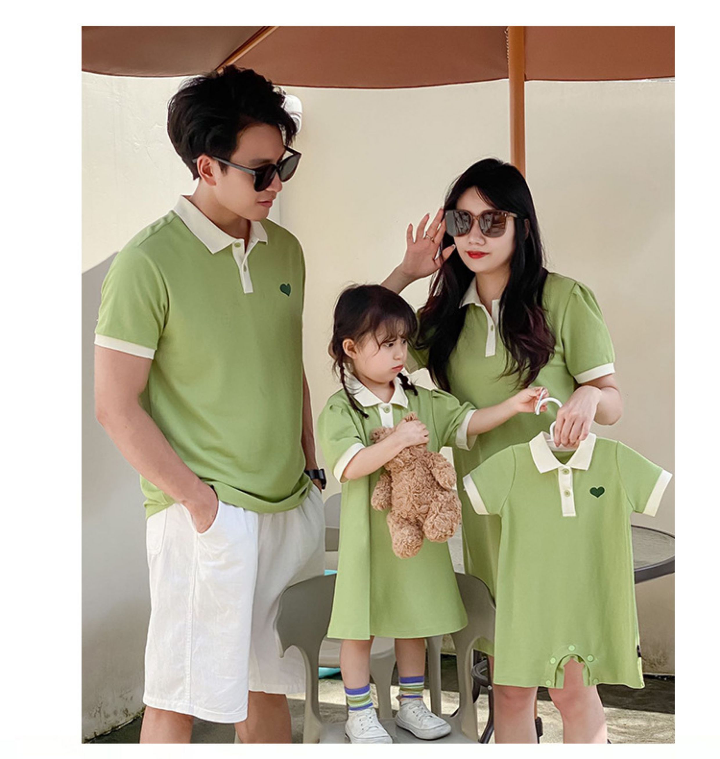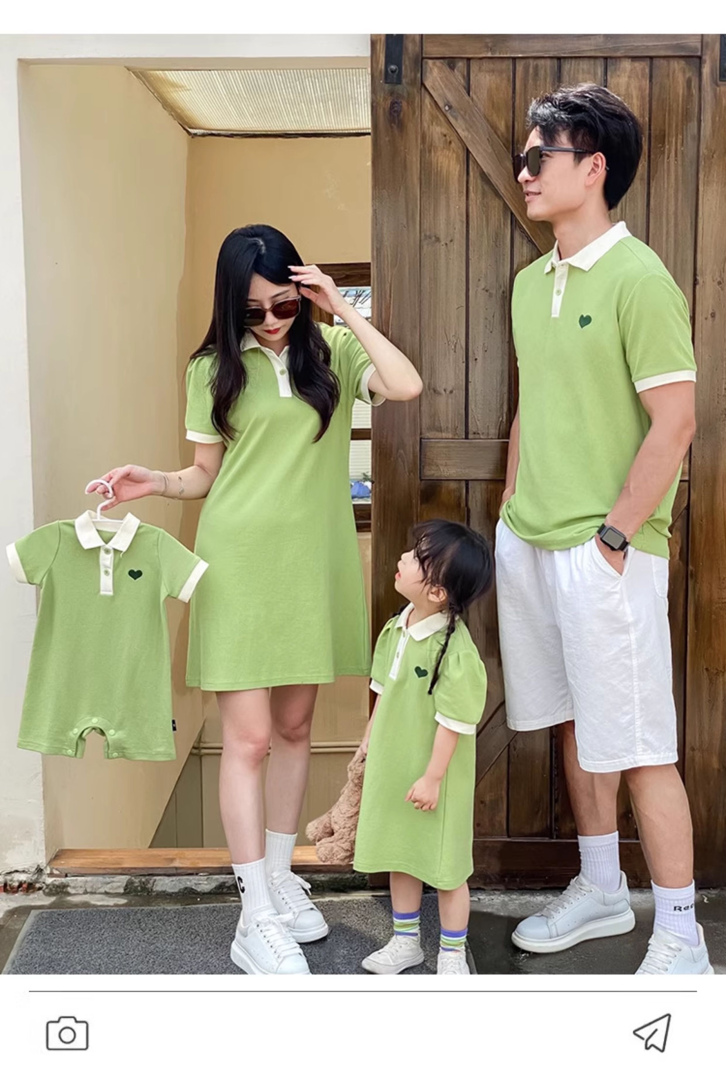 親子裝一家三口四口夏裝短袖t恤POLO衫母女連衣裙嬰兒高級全家裝