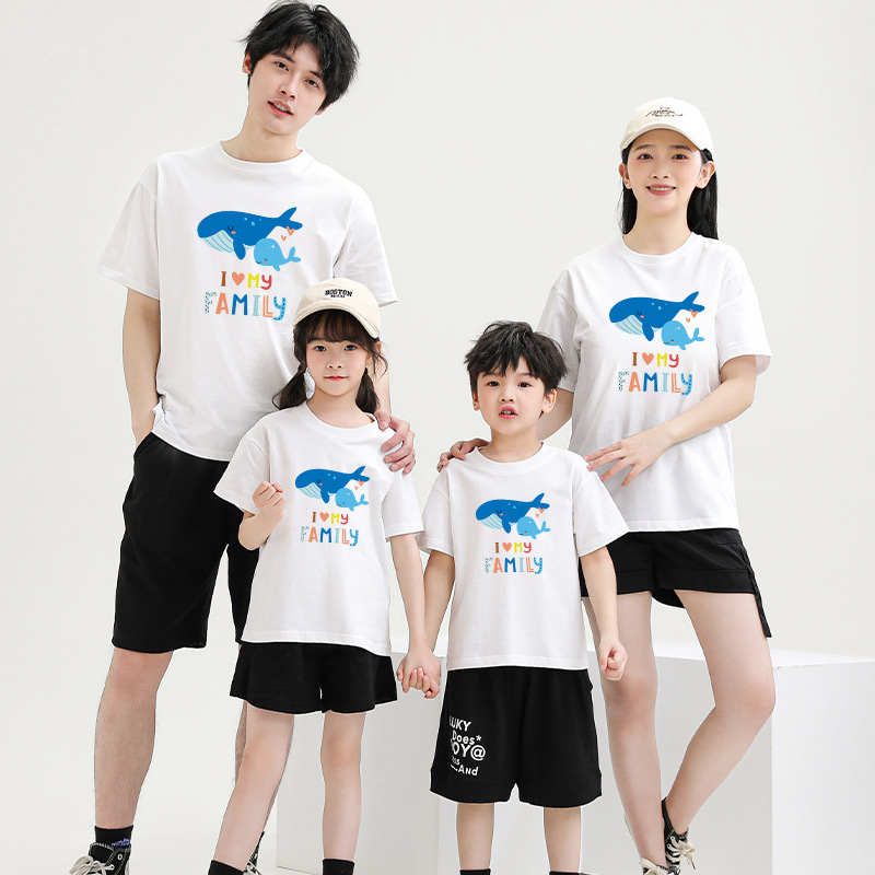 海洋主題親子裝鯨魚短袖兒童純棉t恤一家三口四口套裝學生活動服