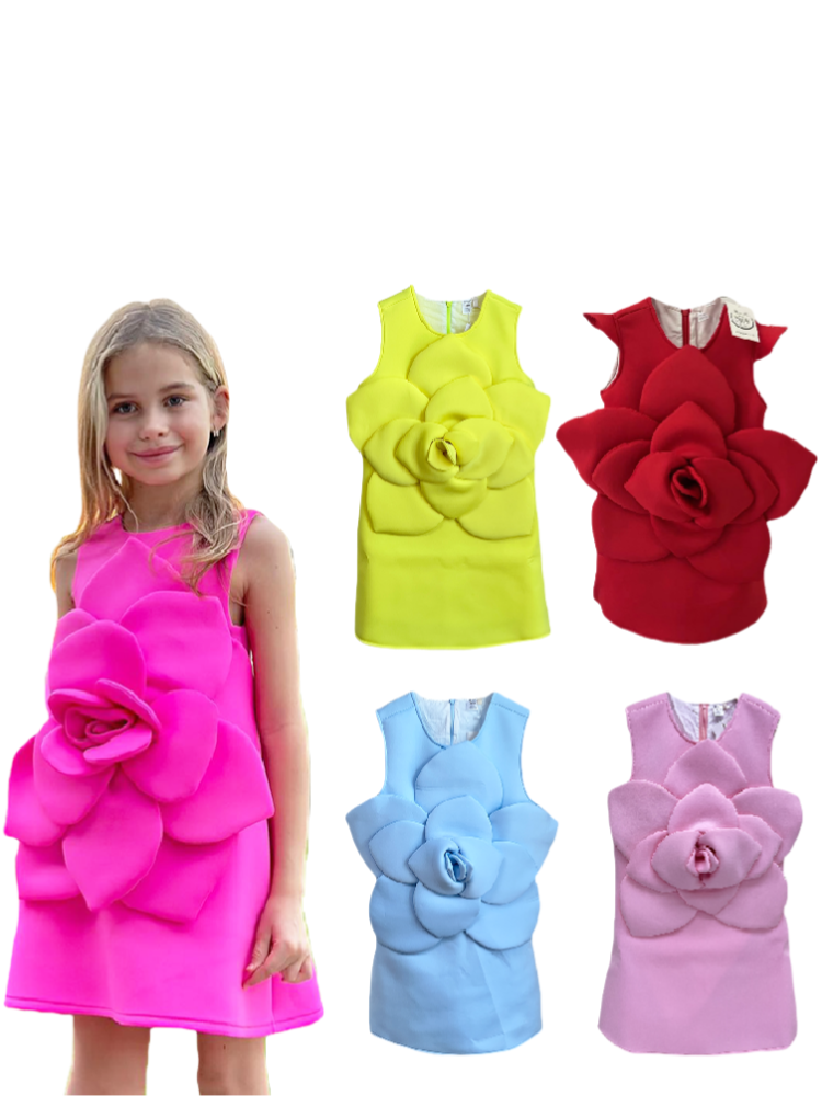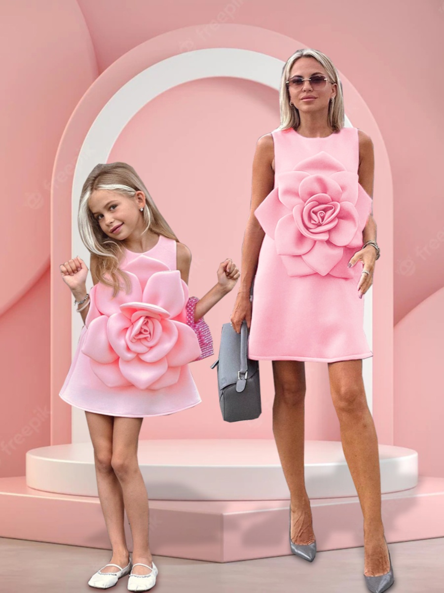 親子裝2024新款夏裝連衣裙母女高級感宴會禮服粉色立體花朵背心裙