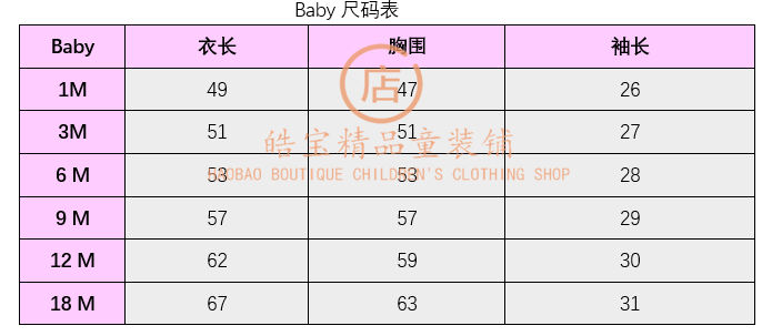 尺碼爲手工測量,會存在1-3cm的誤差,請理解;寶寶個體差異大,建議年齡僅供蔘考,胖寶寶要選大一碼哦,實際量一下寶寶目前穿的衣服尺寸,這樣更精確哦!