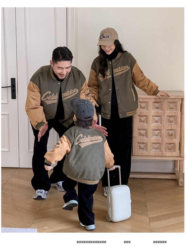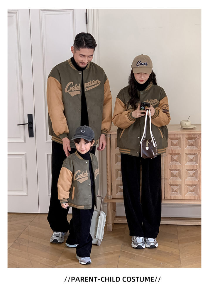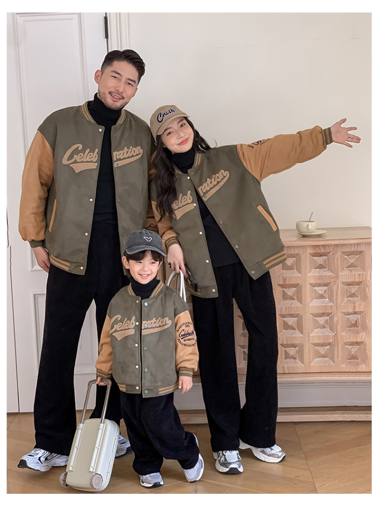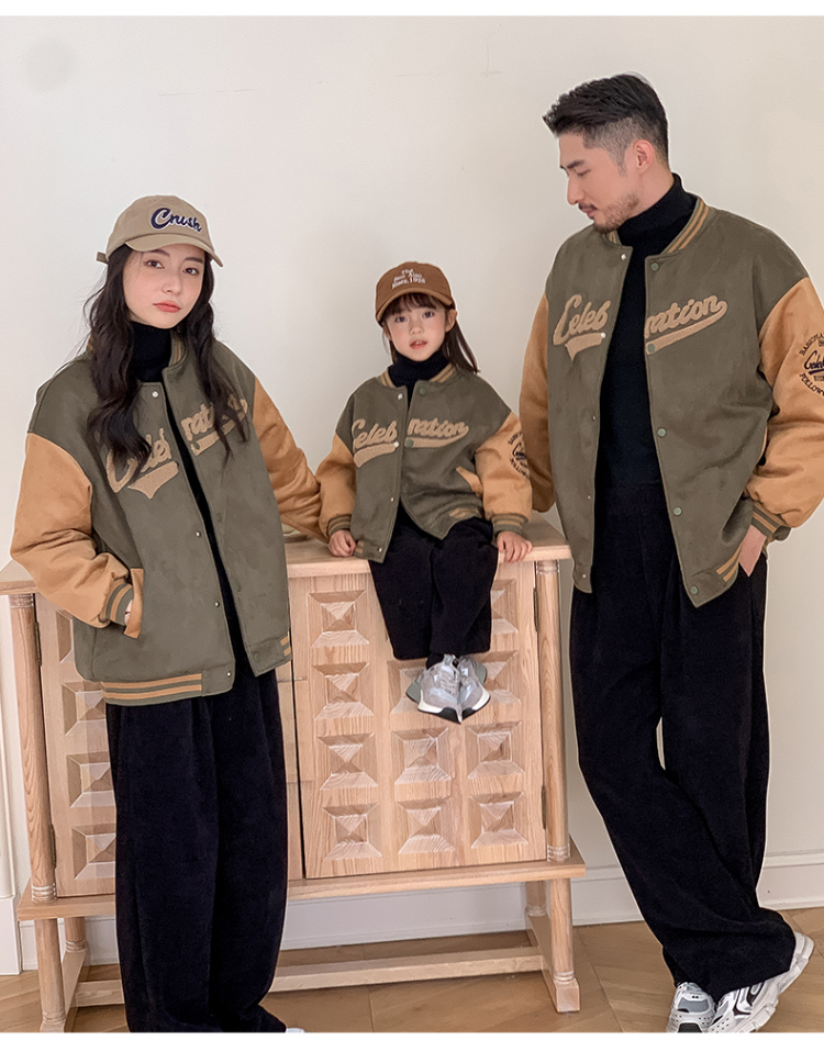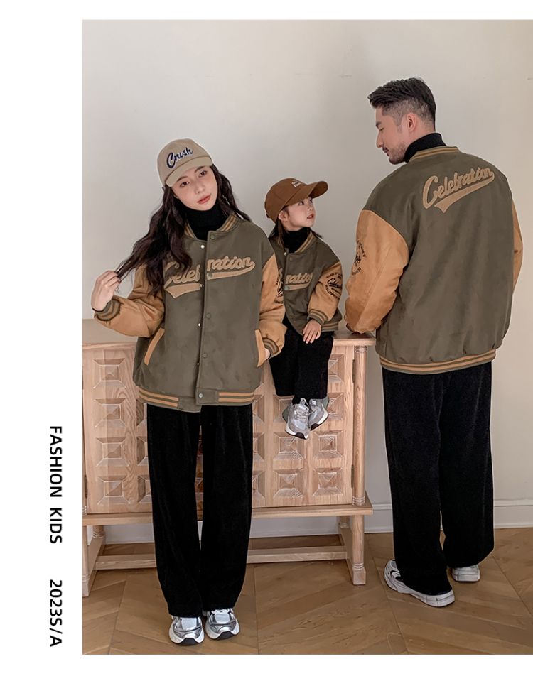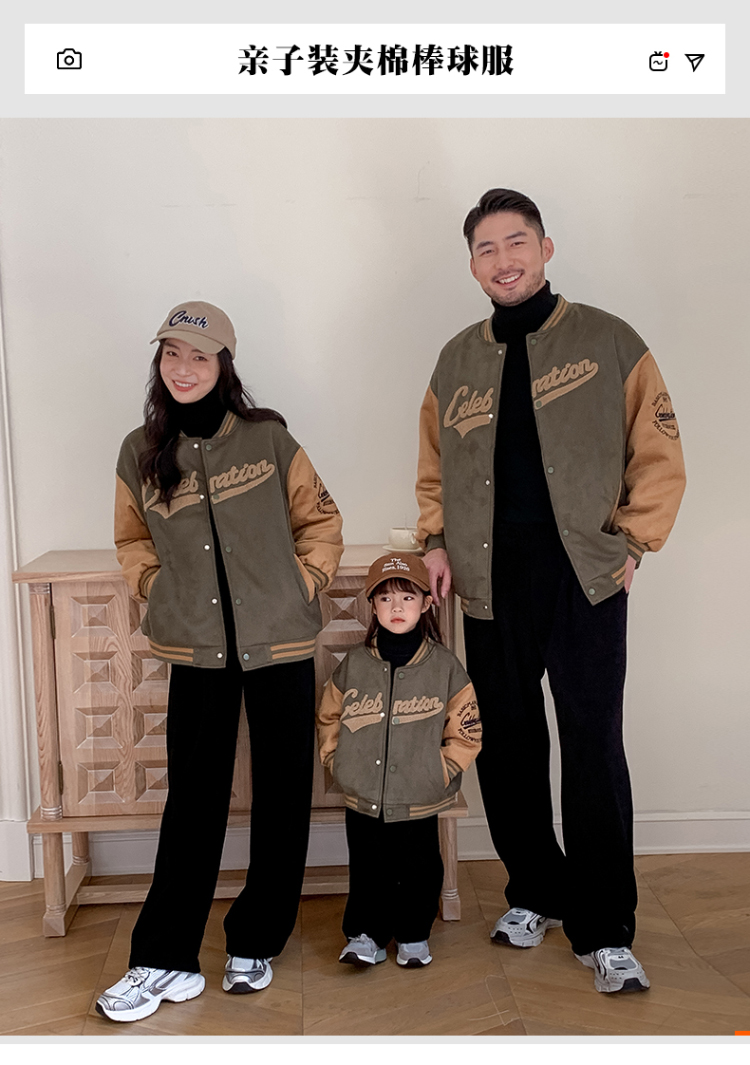 親子裝外套2025冬季韓版一家三四口夾棉棒球服棉服全家裝加厚上衣