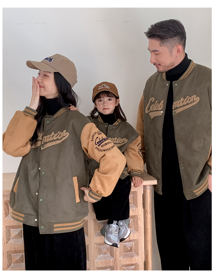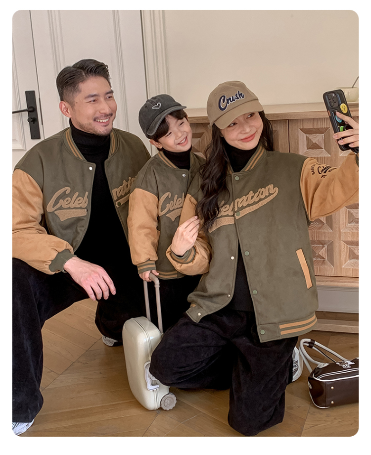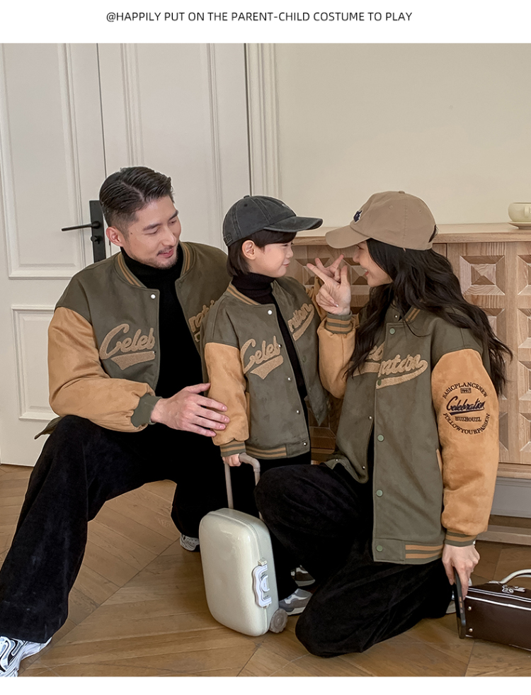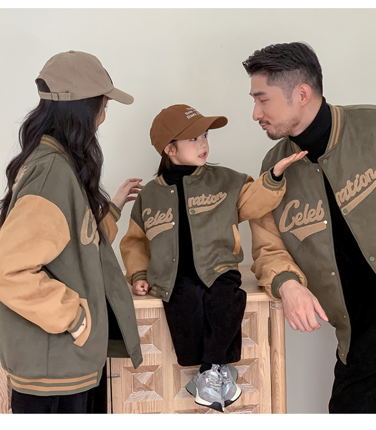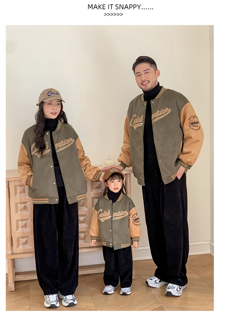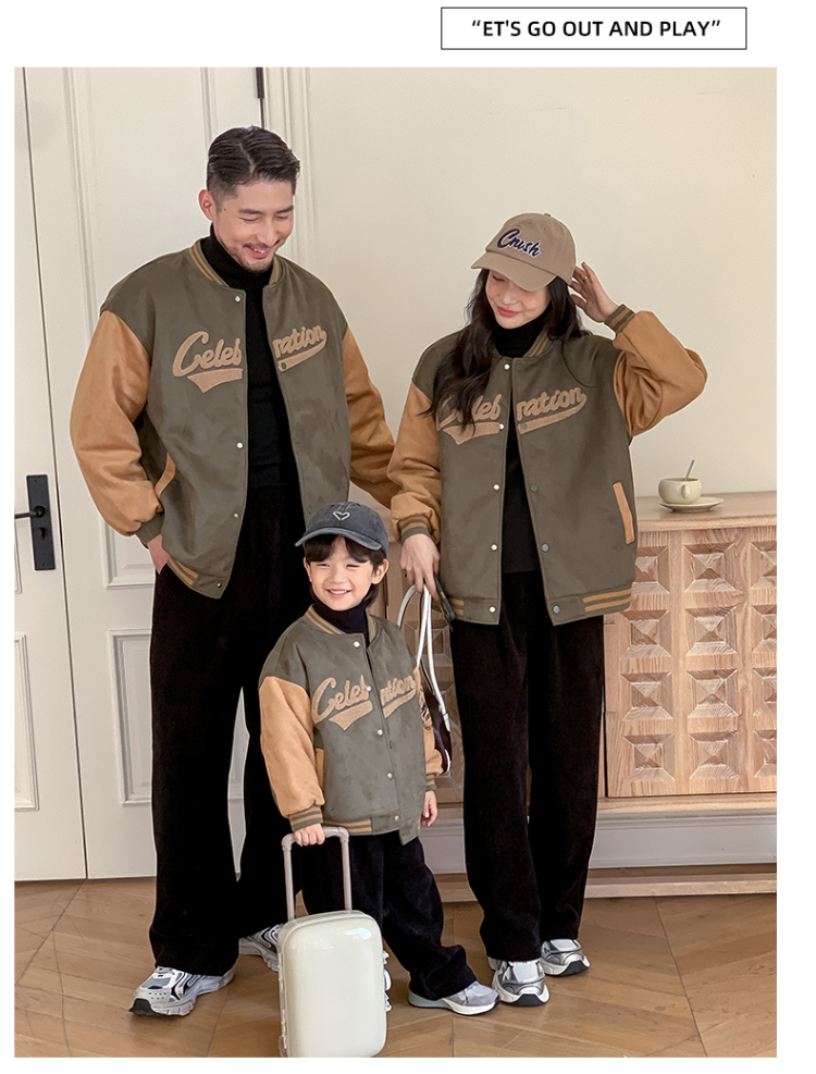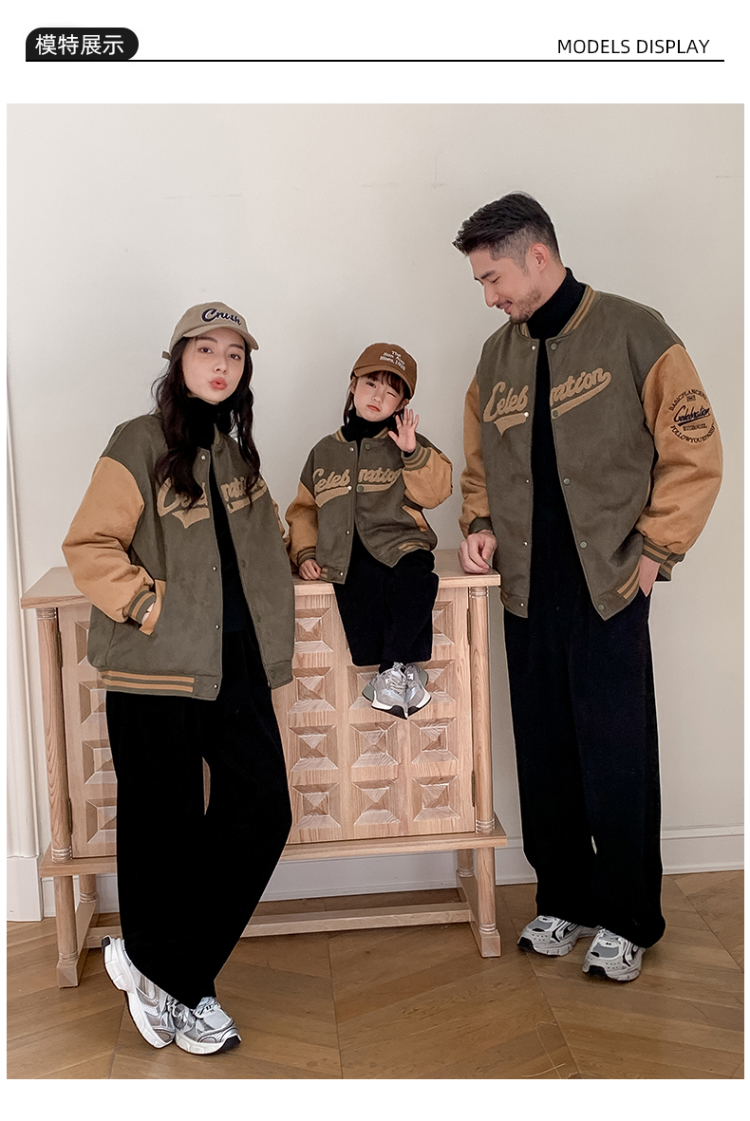 親子裝外套2025冬季韓版一家三四口夾棉棒球服棉服全家裝加厚上衣