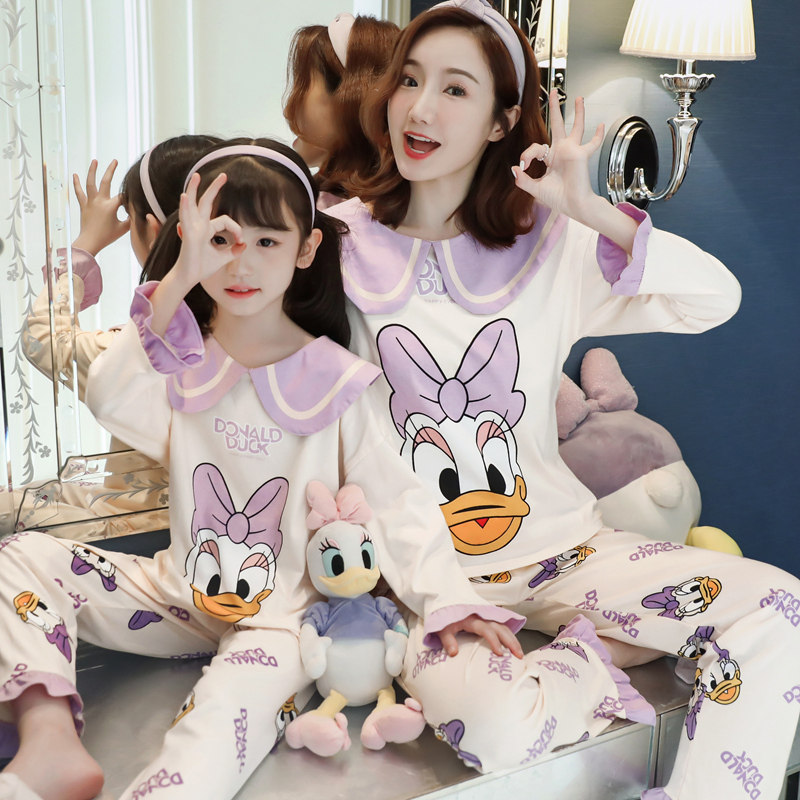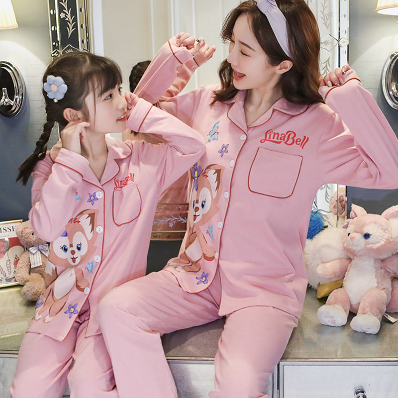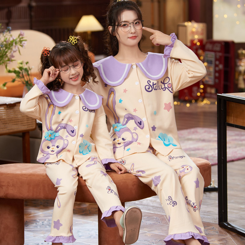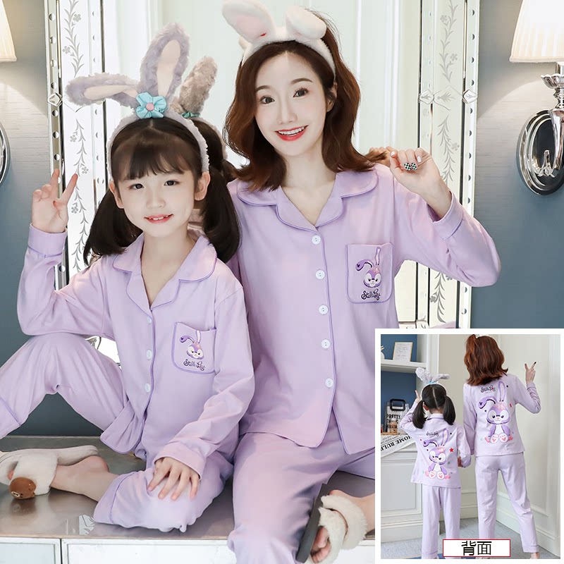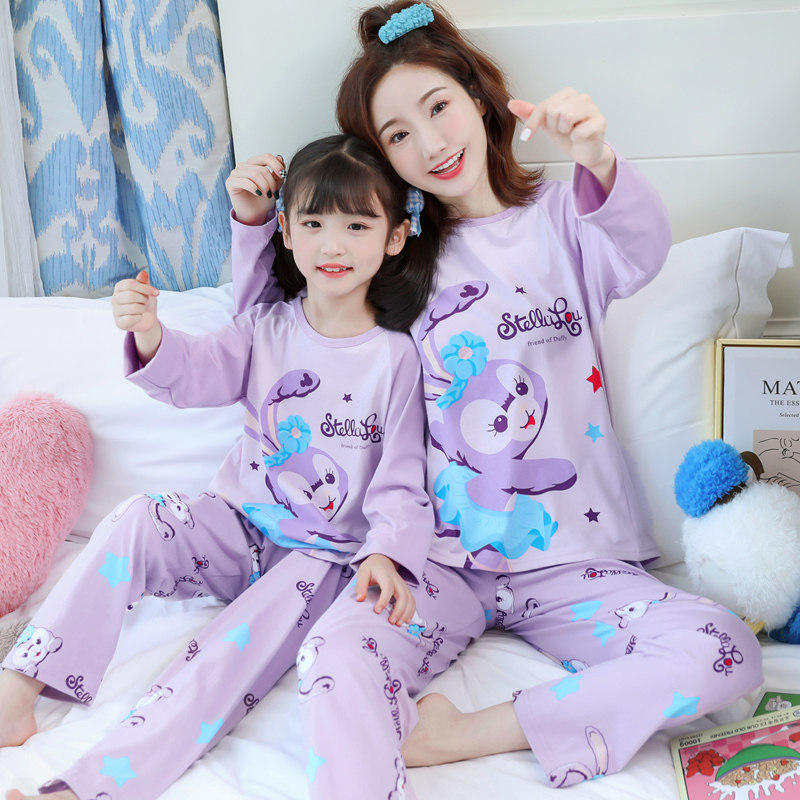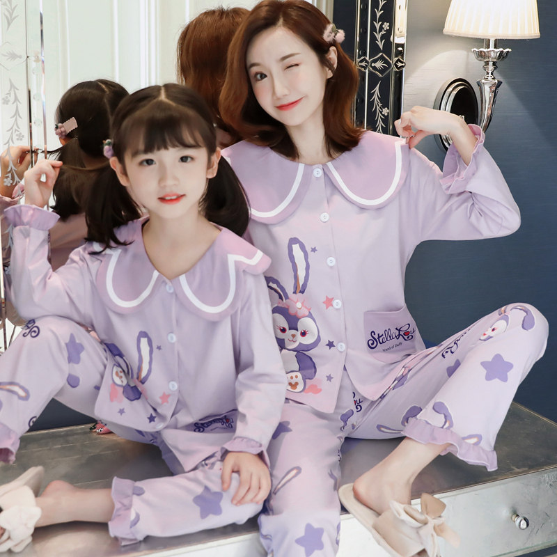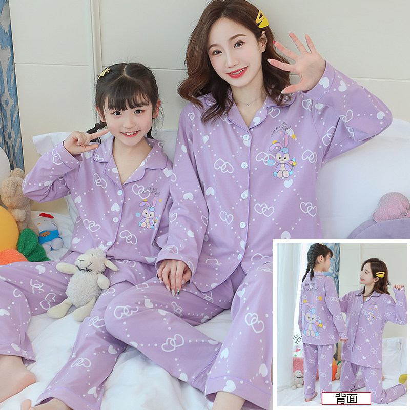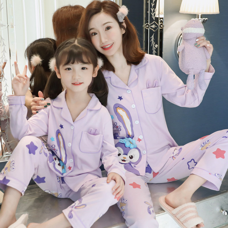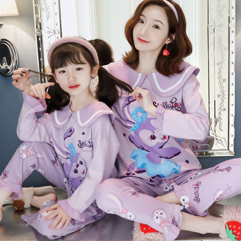 洋氣母女睡衣純棉長袖親子裝春秋季可愛女孩中大童卡通兒童家居服