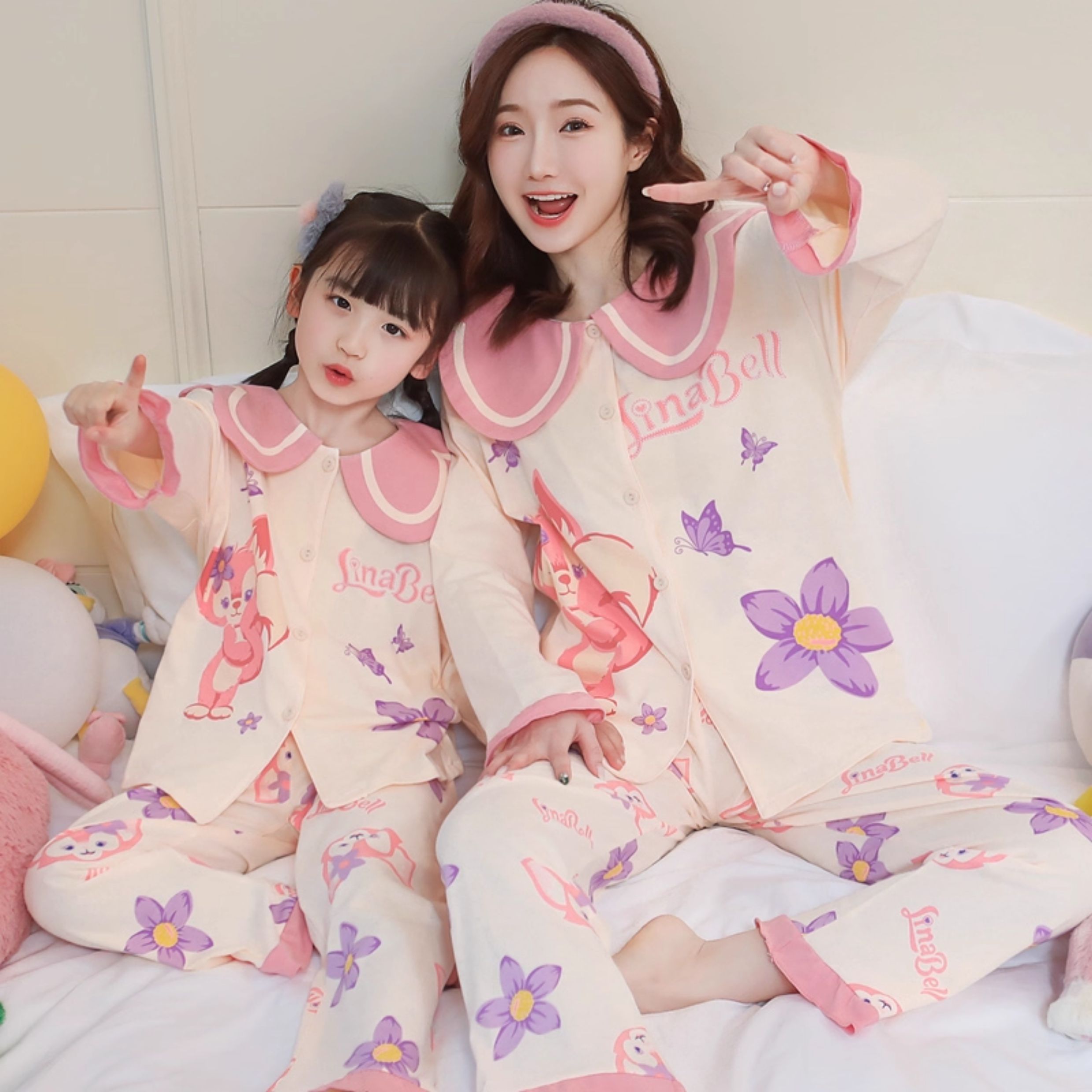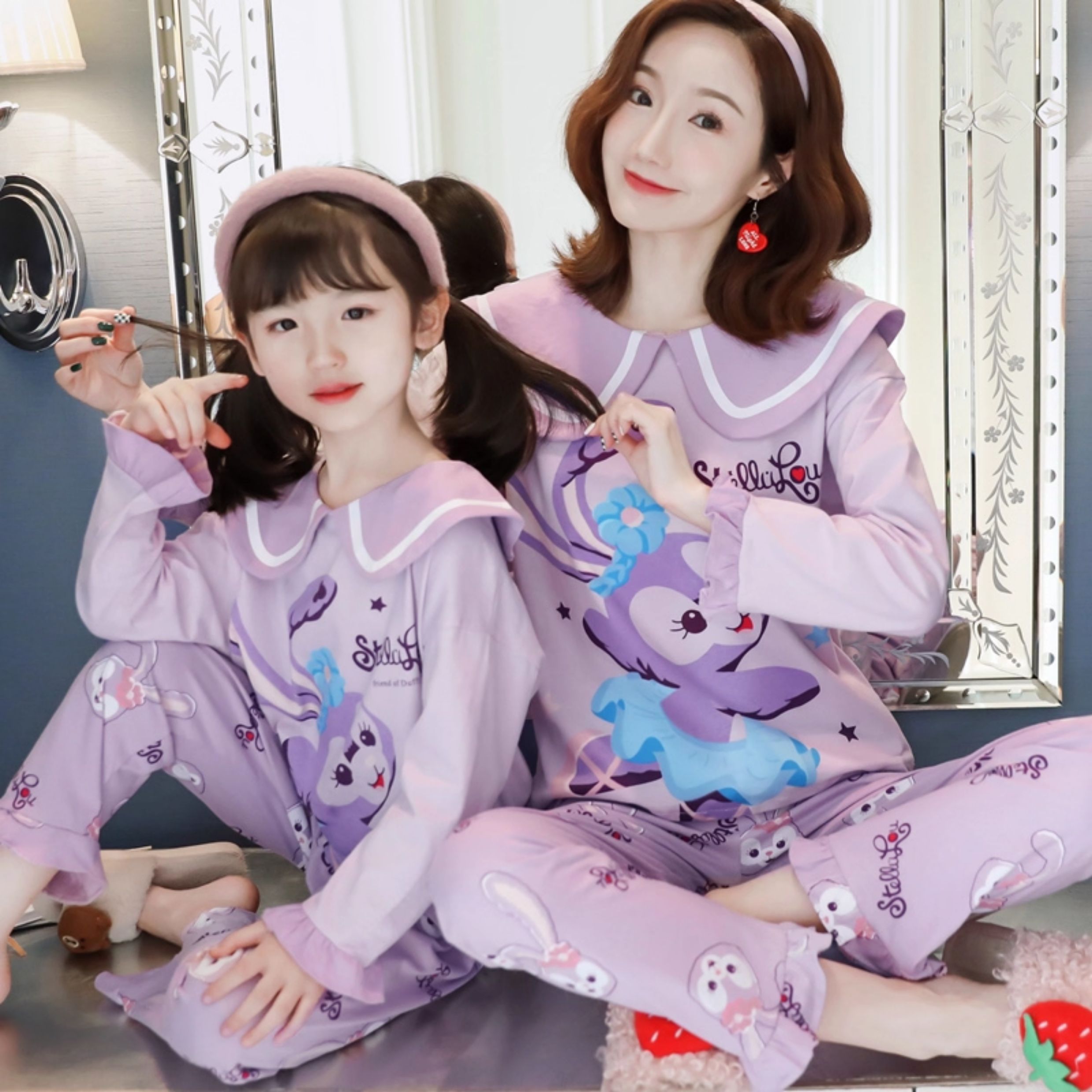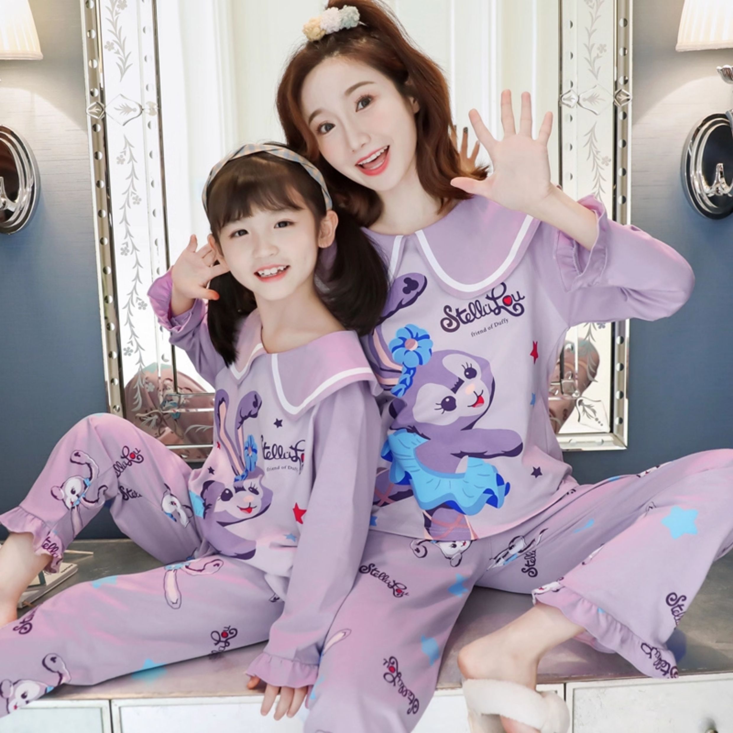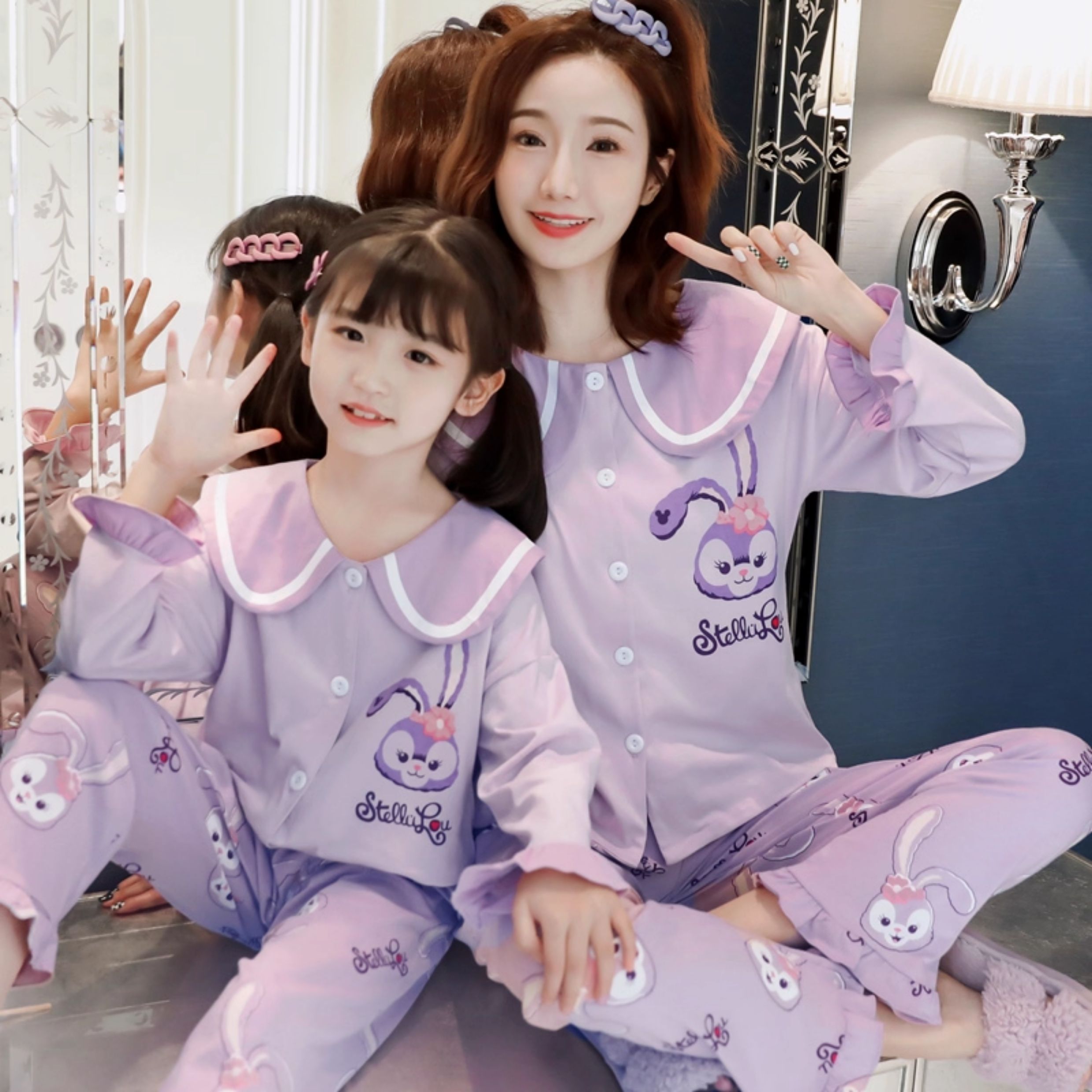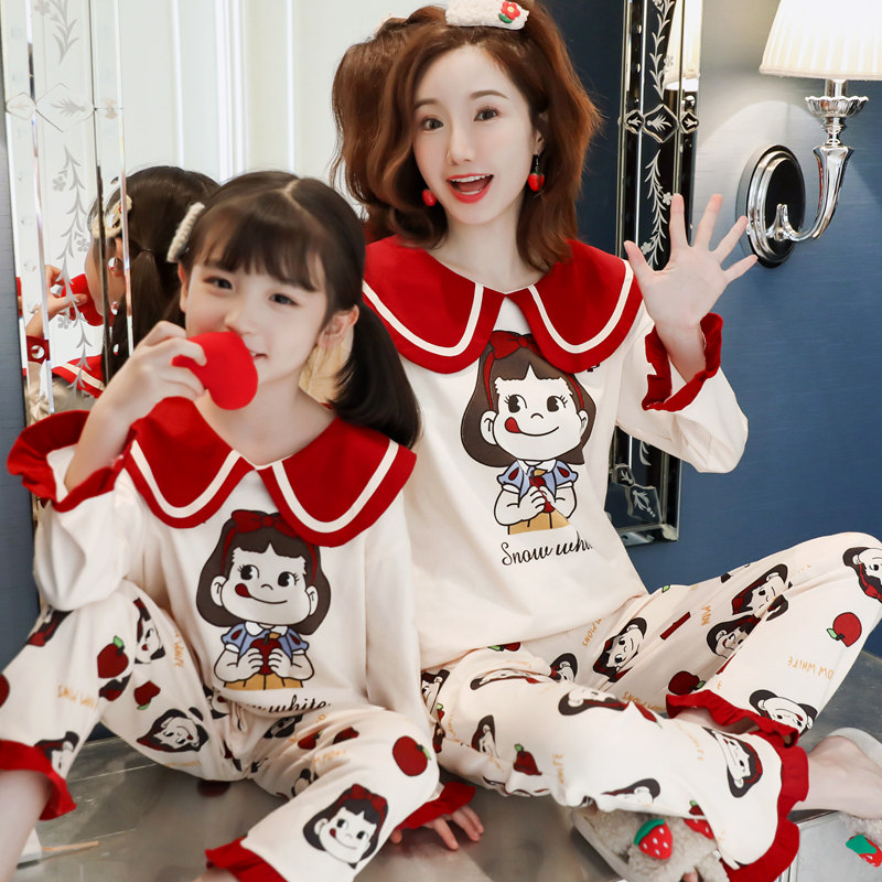 洋氣母女睡衣純棉長袖親子裝春秋季可愛女孩中大童卡通兒童家居服