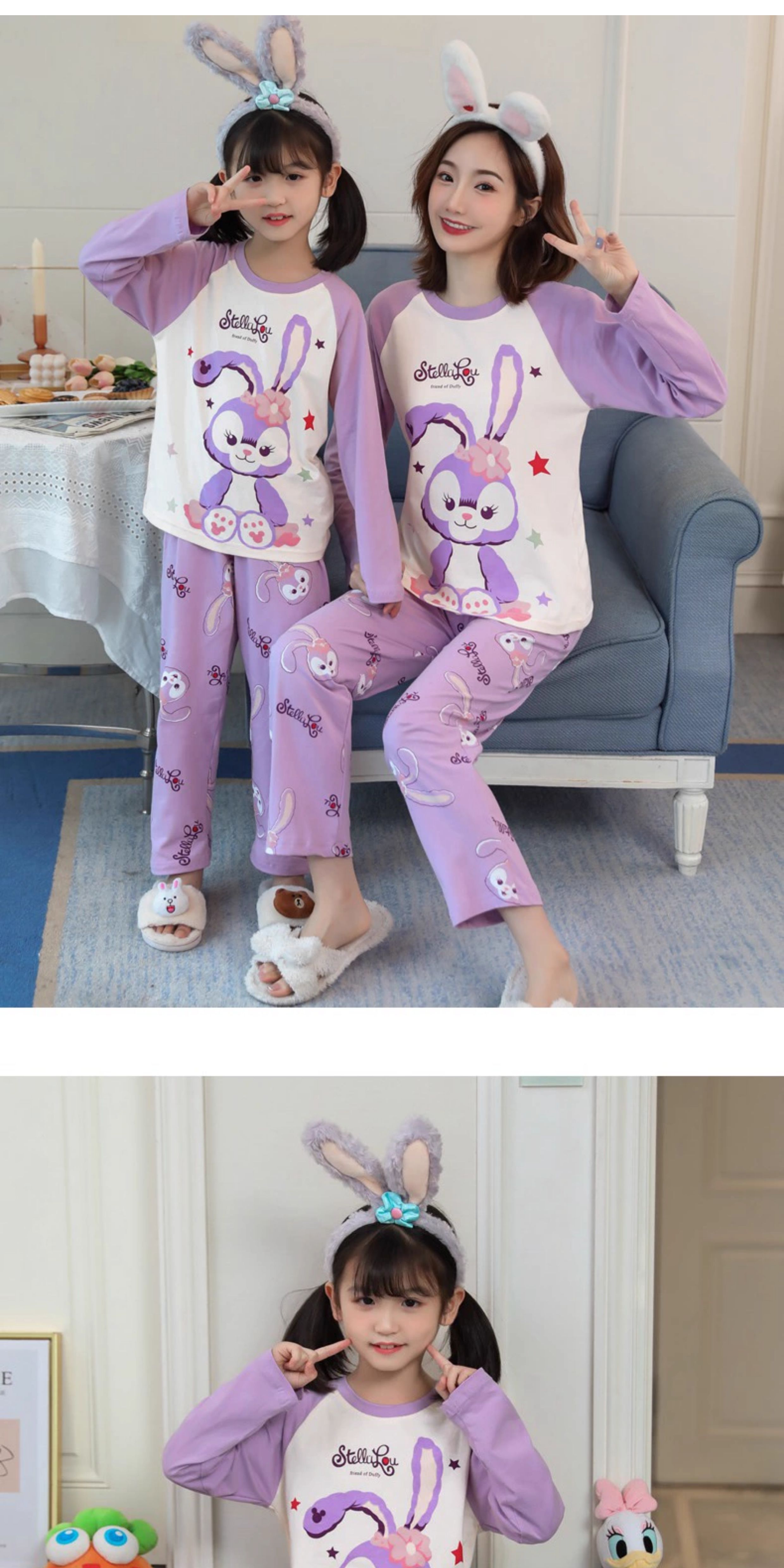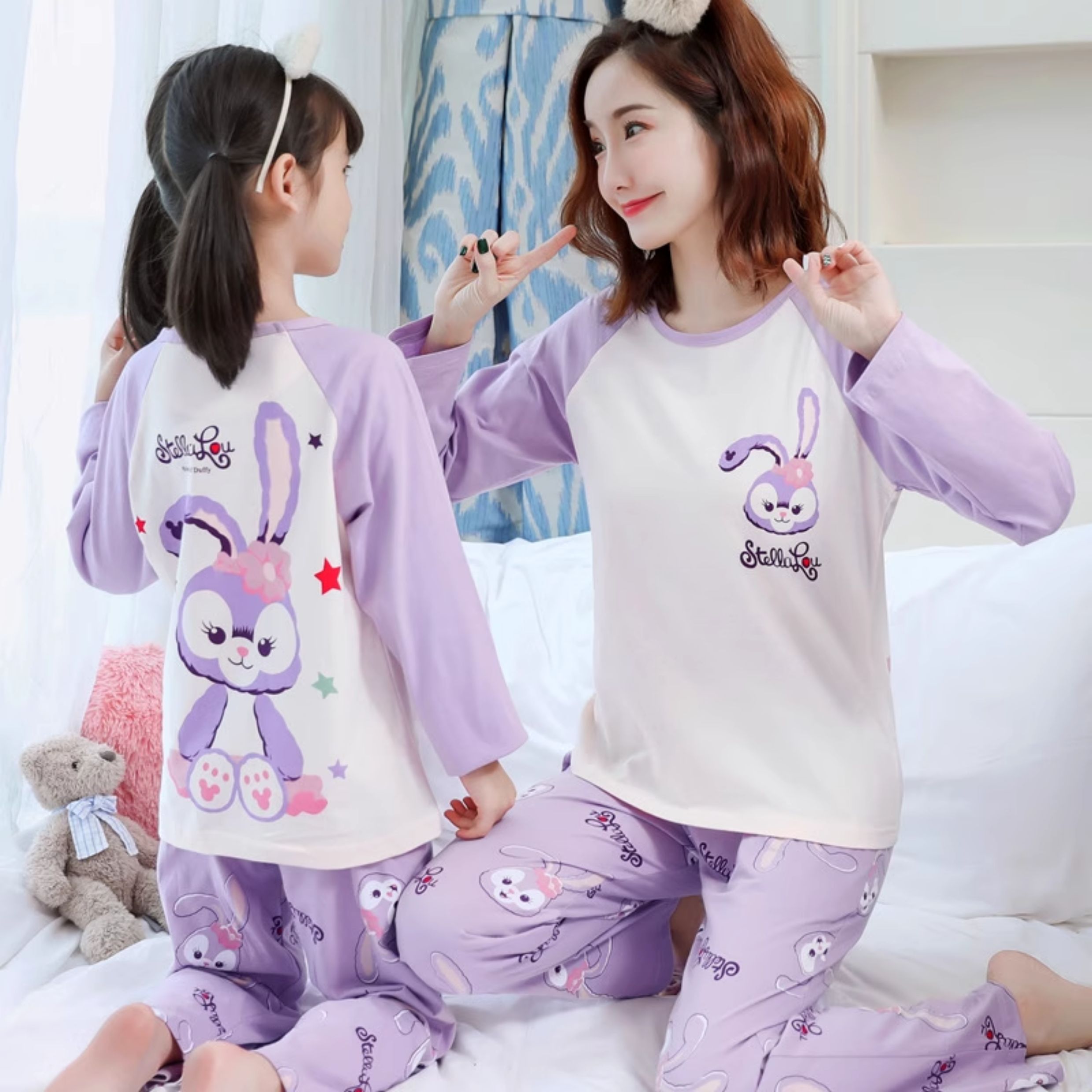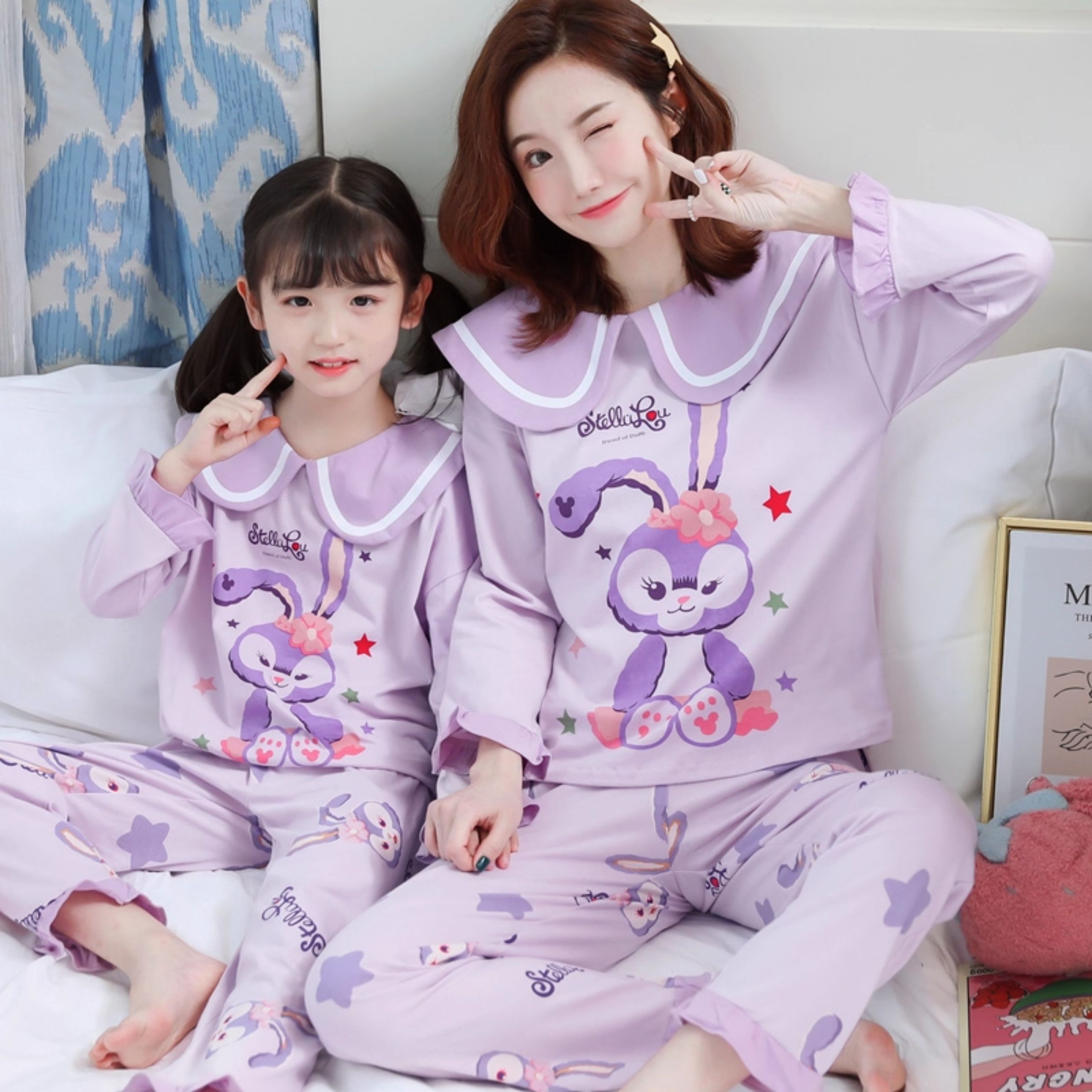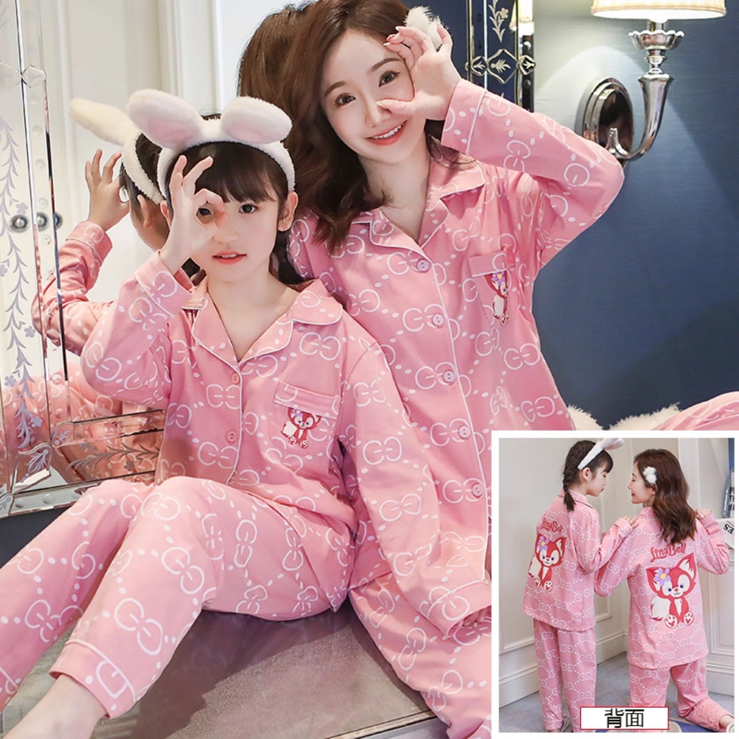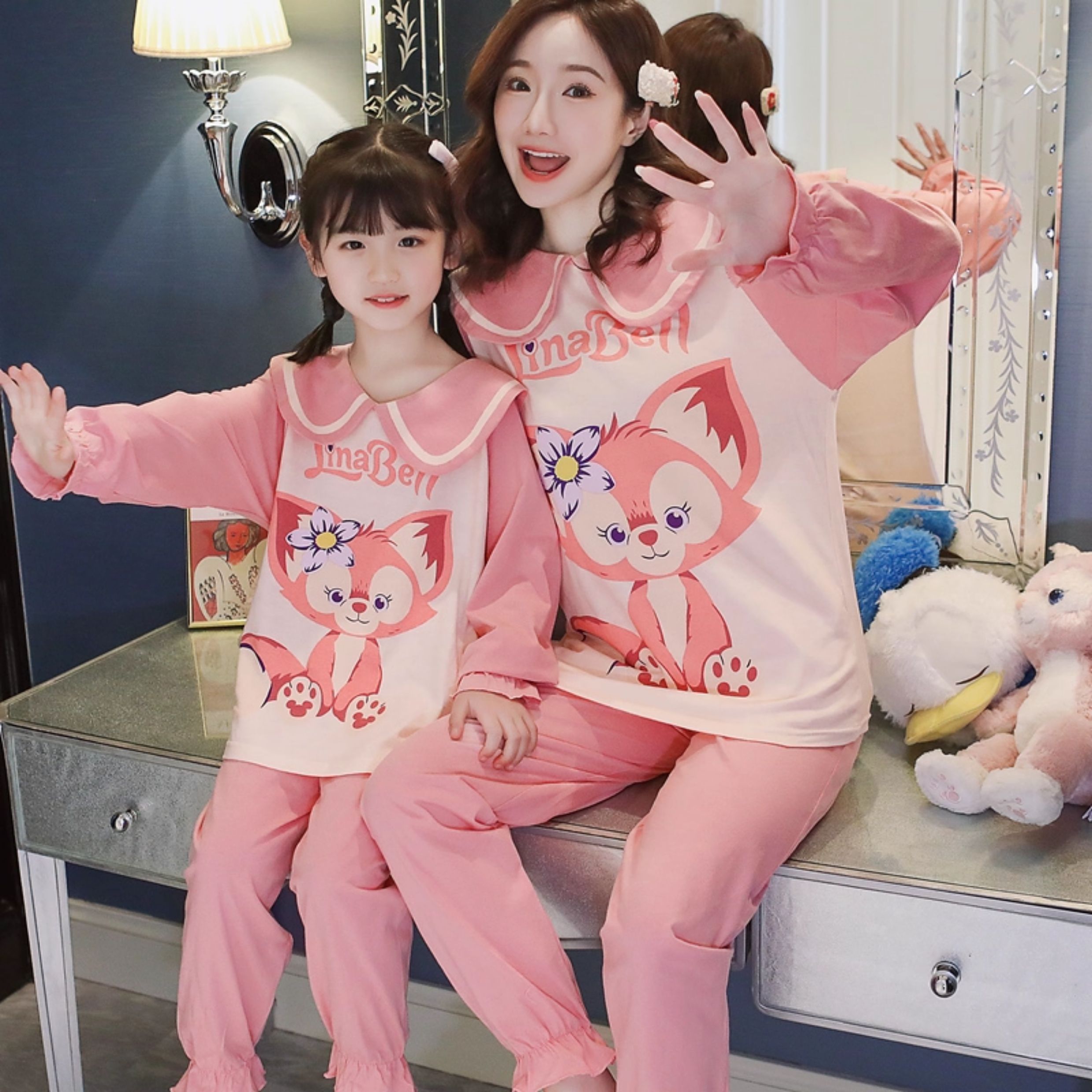 洋氣母女睡衣純棉長袖親子裝春秋季可愛女孩中大童卡通兒童家居服