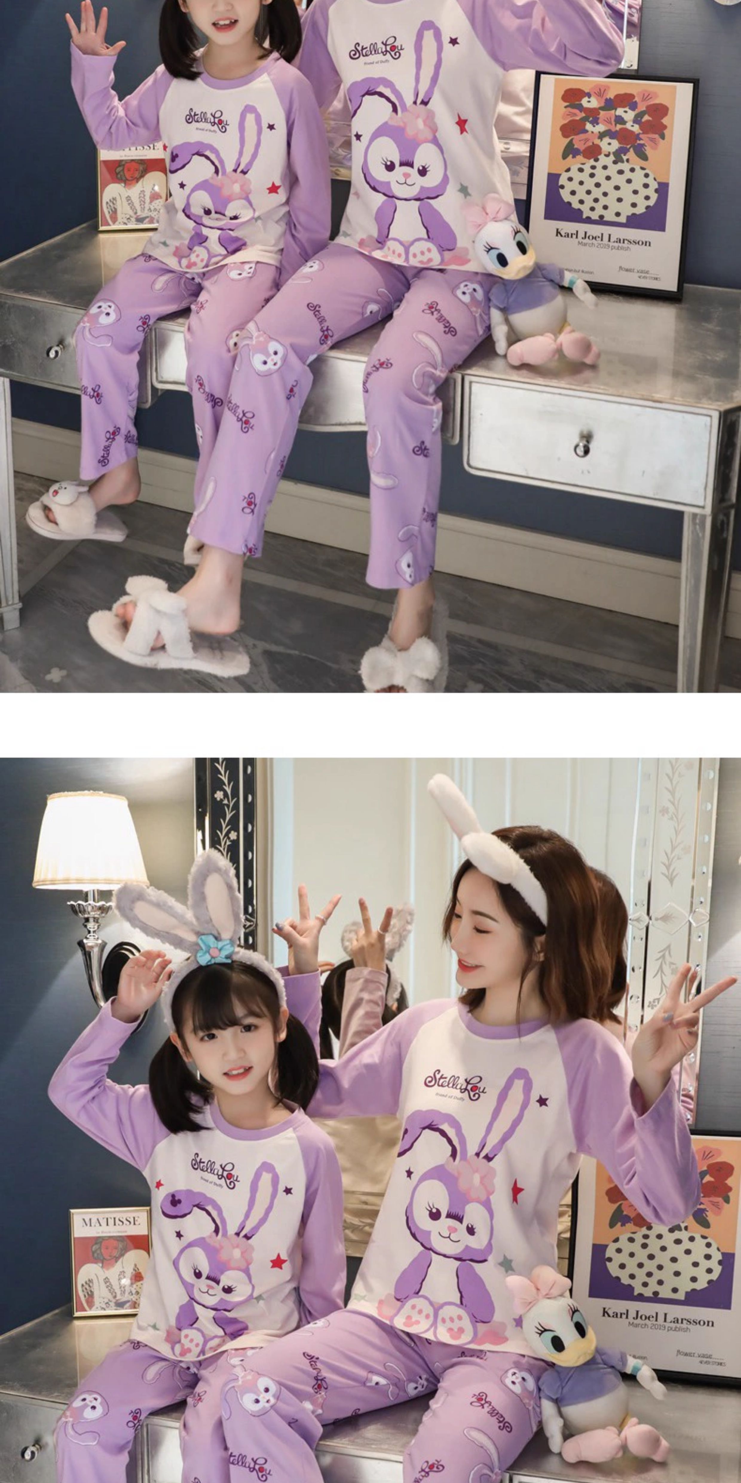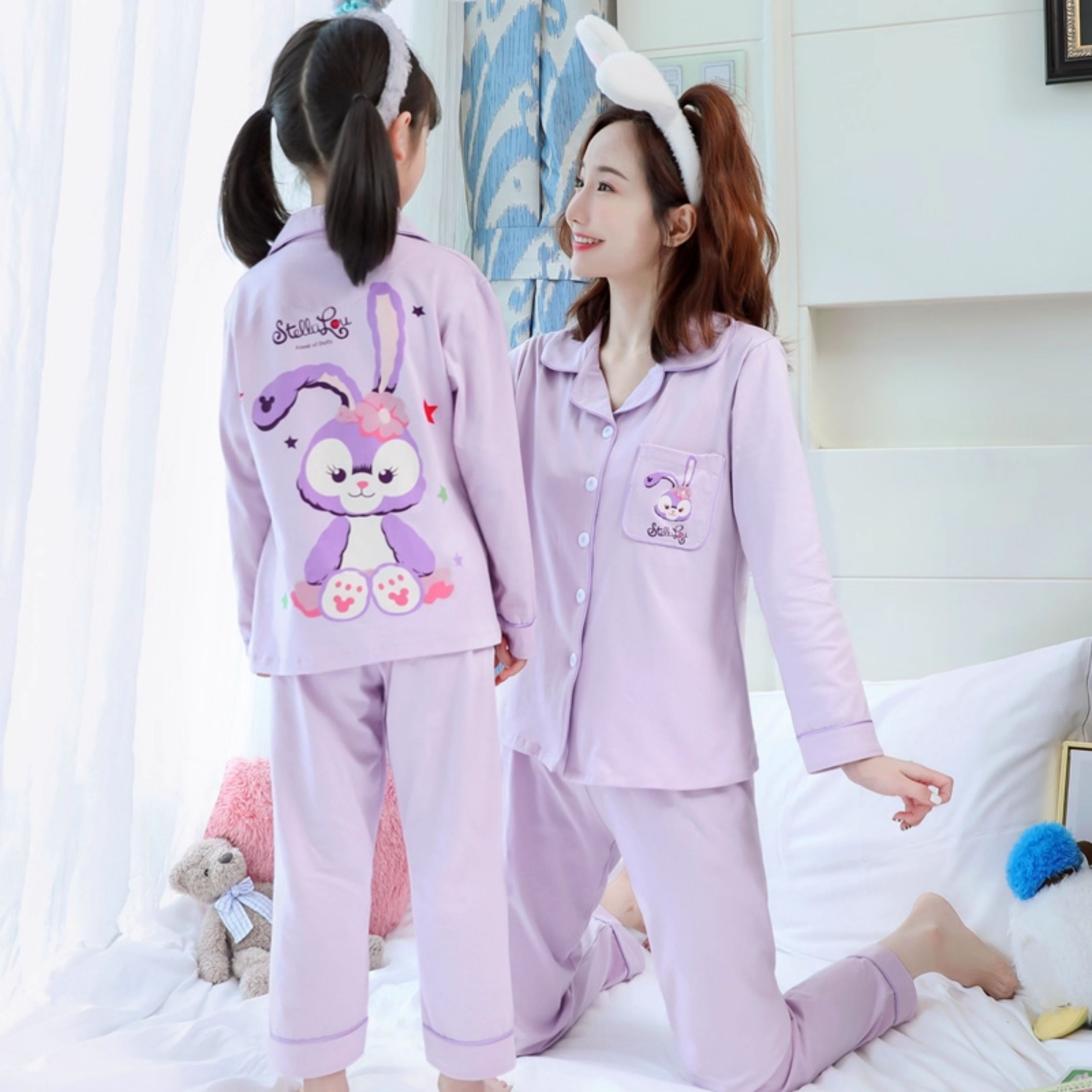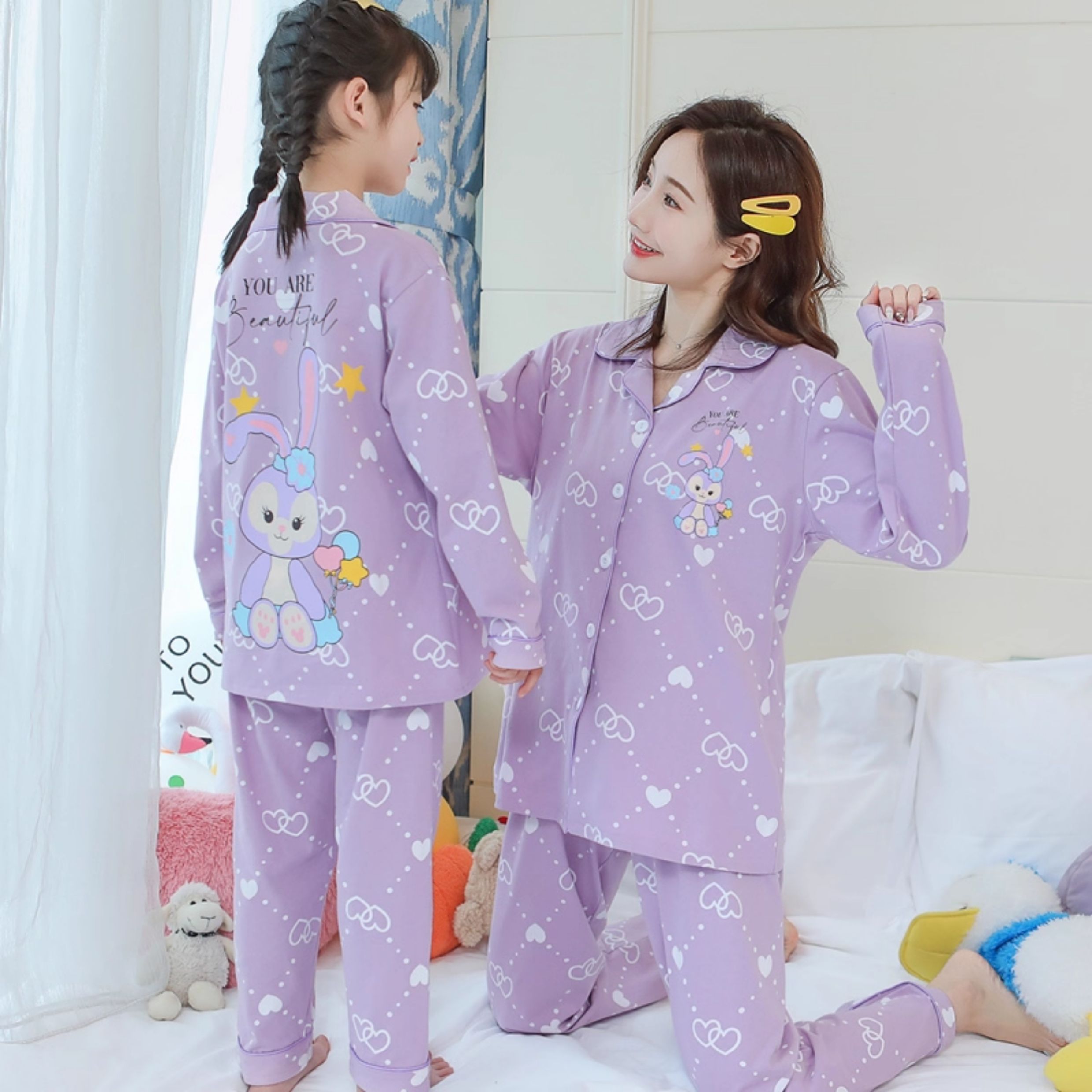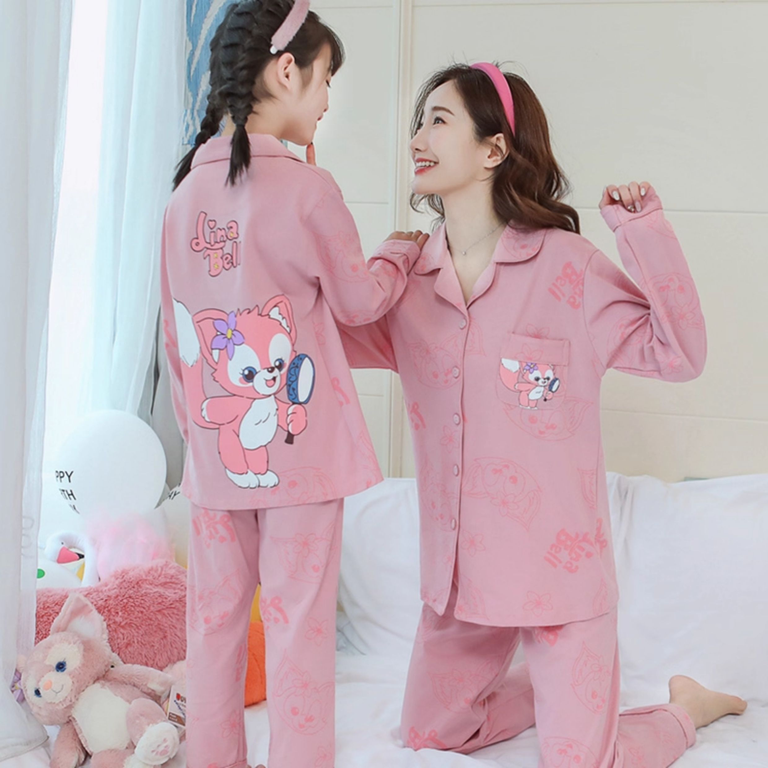 洋氣母女睡衣純棉長袖親子裝春秋季可愛女孩中大童卡通兒童家居服