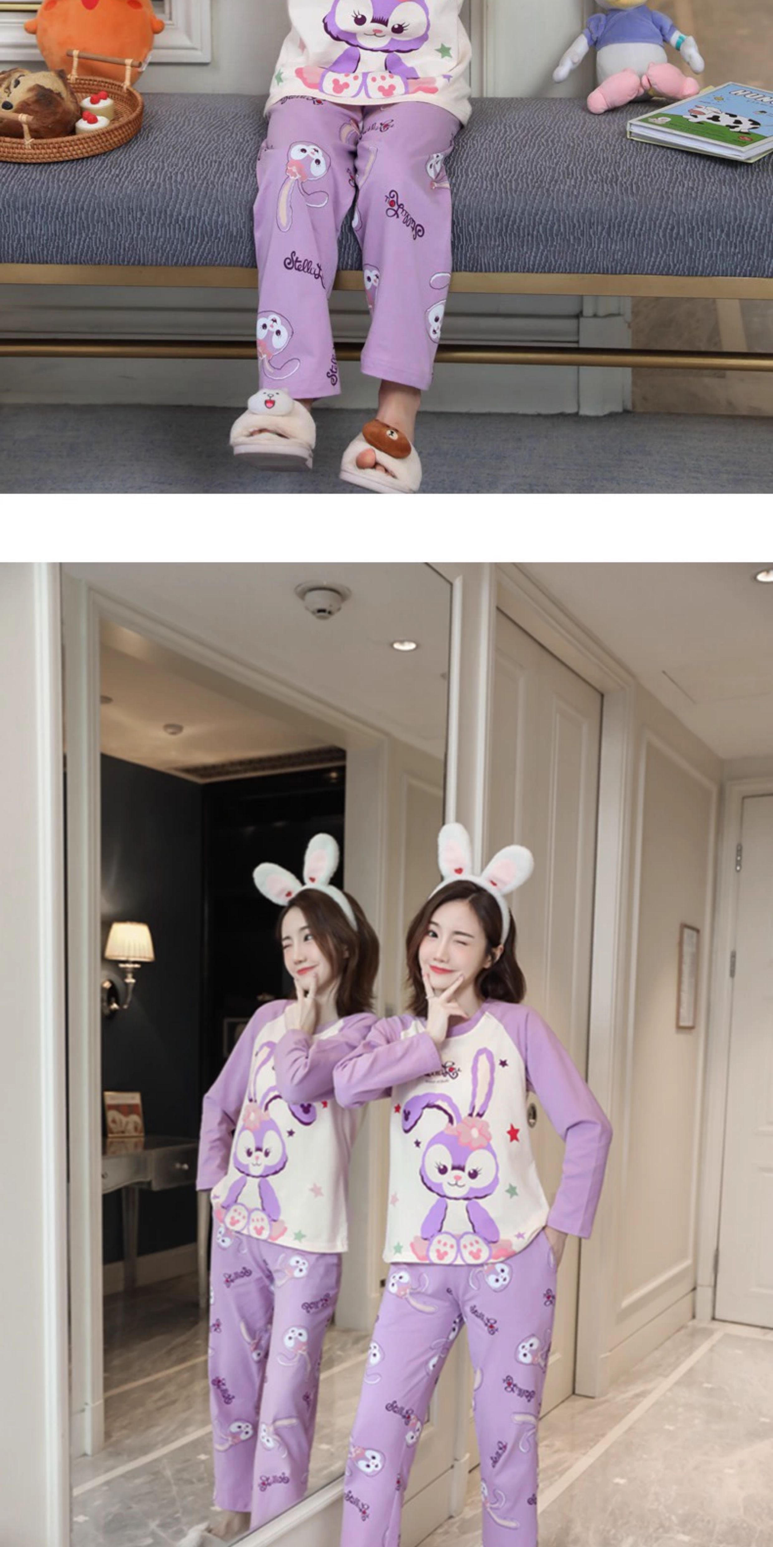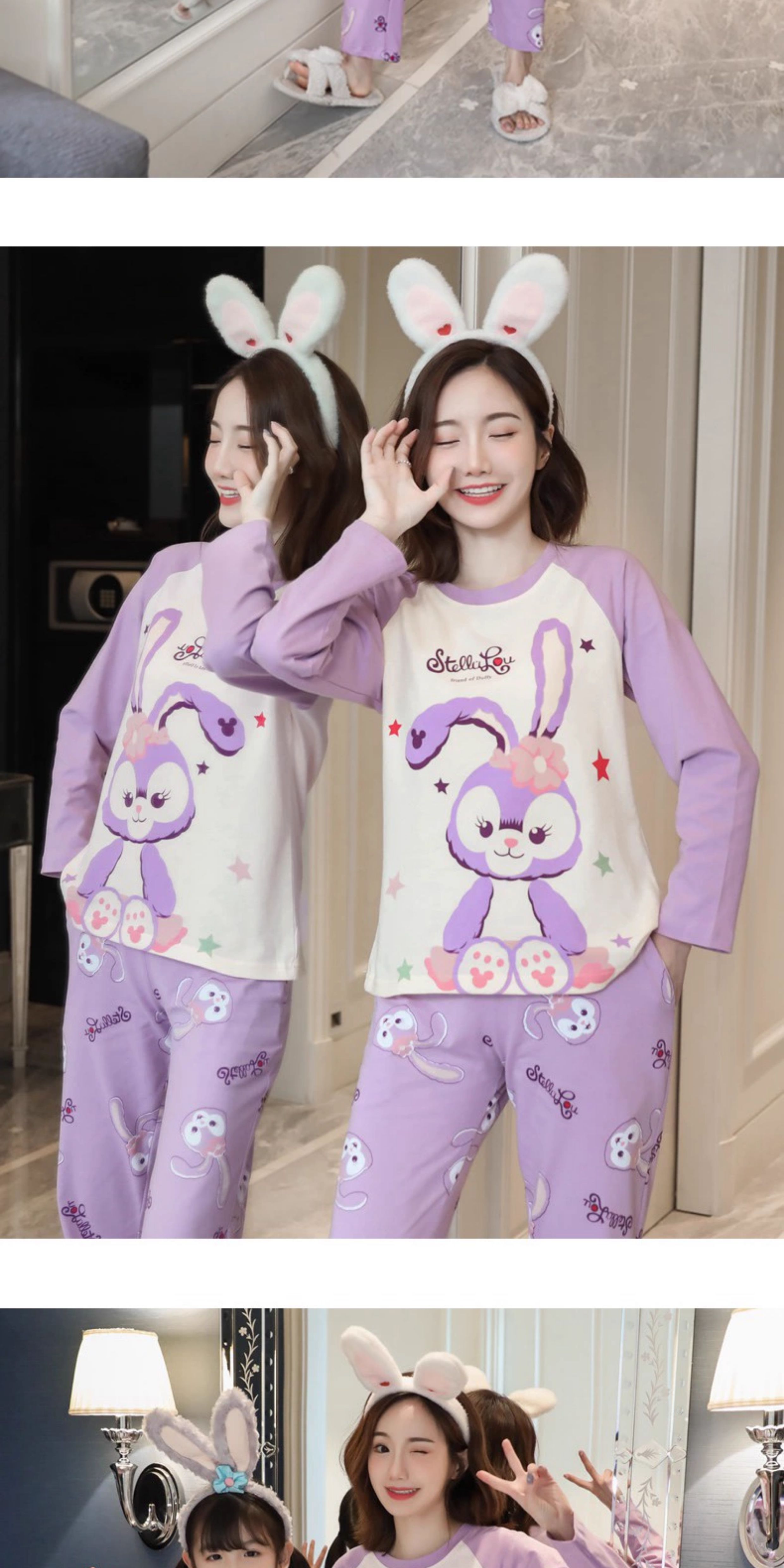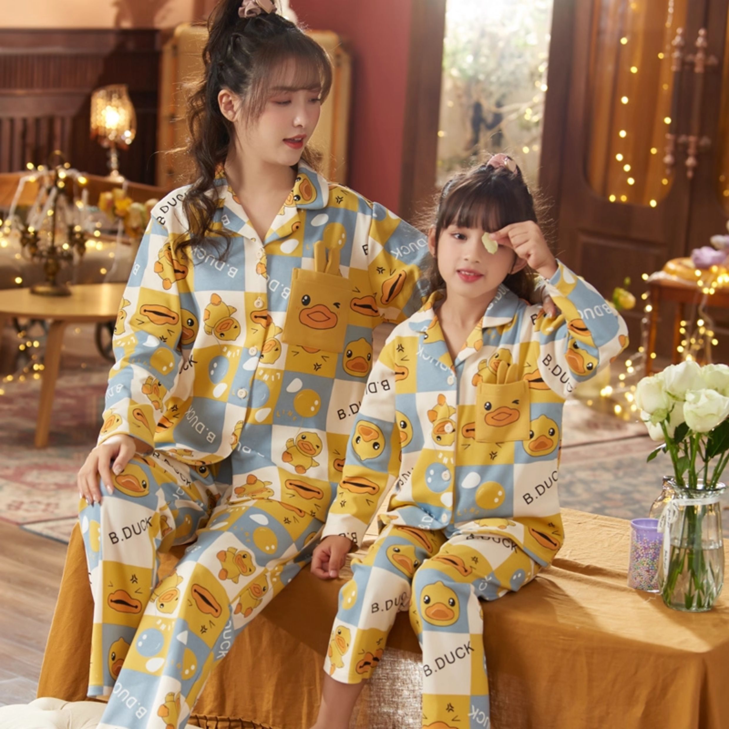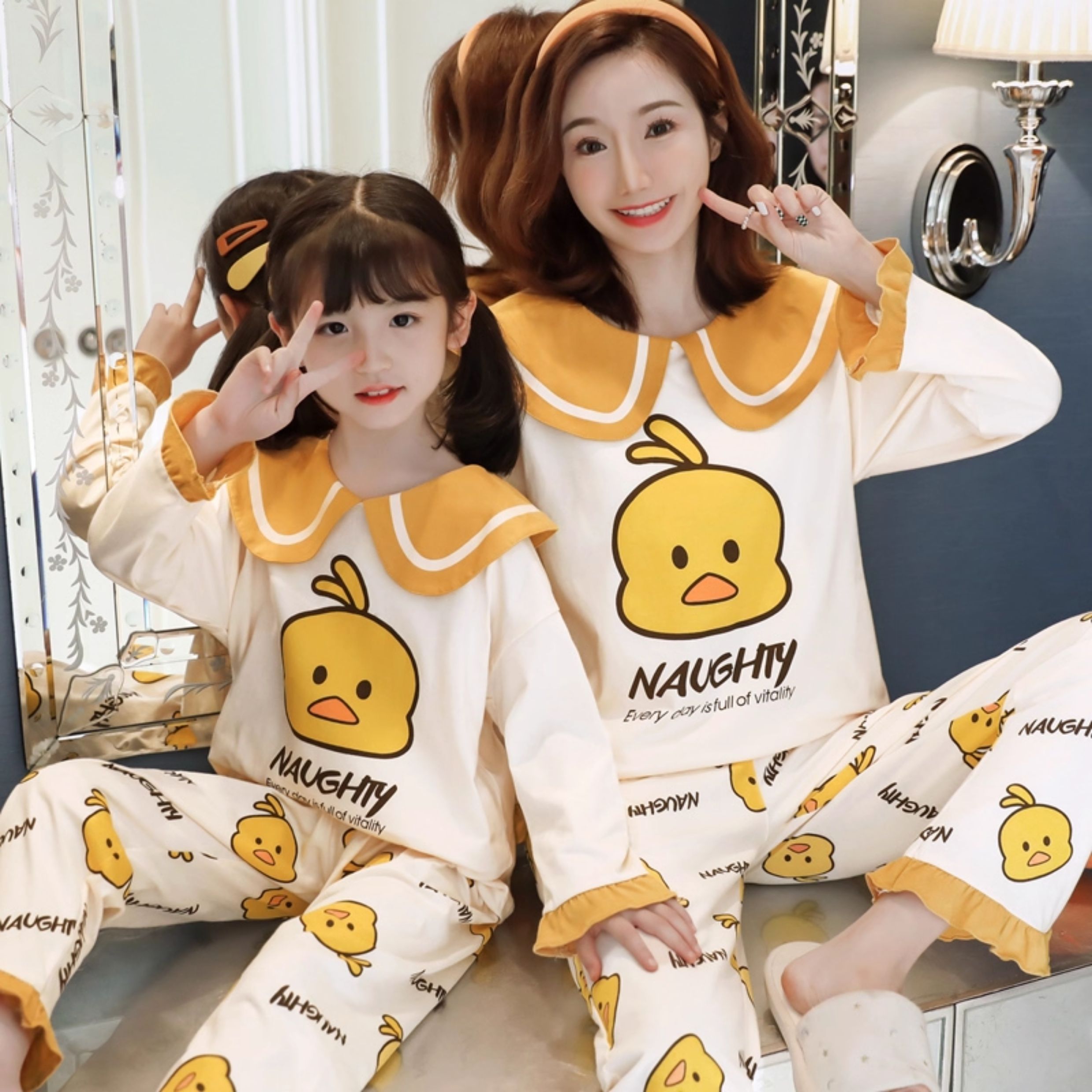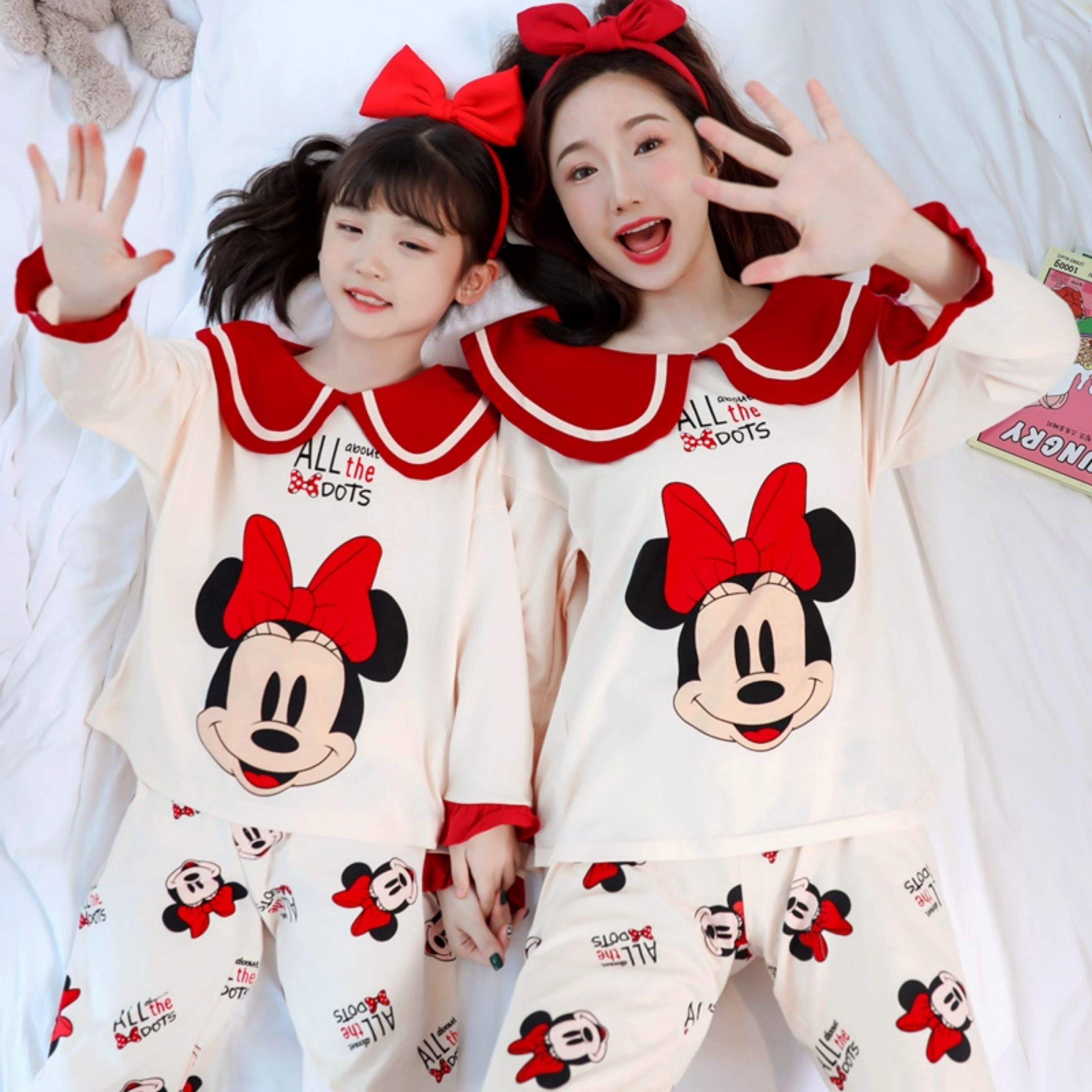洋氣母女睡衣純棉長袖親子裝春秋季可愛女孩中大童卡通兒童家居服