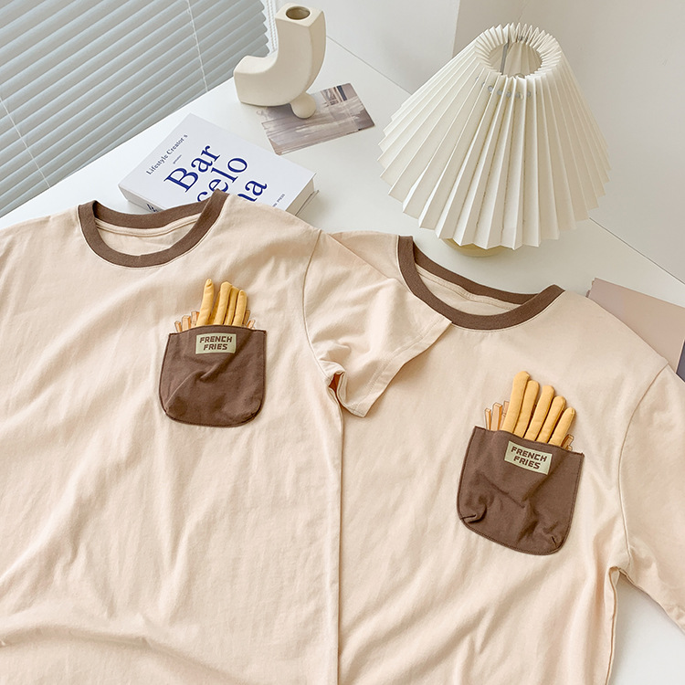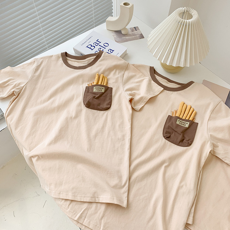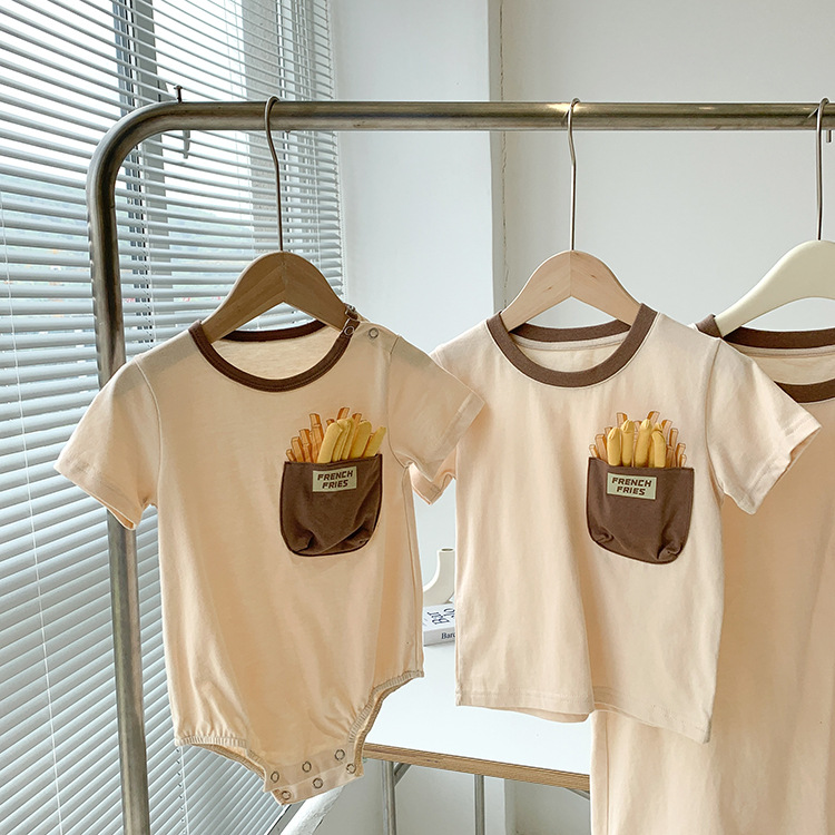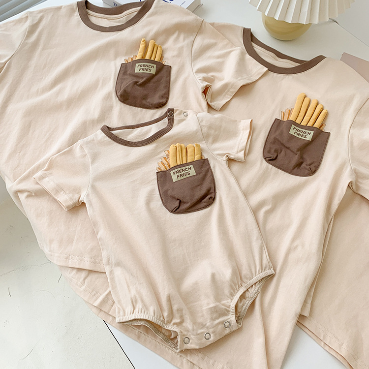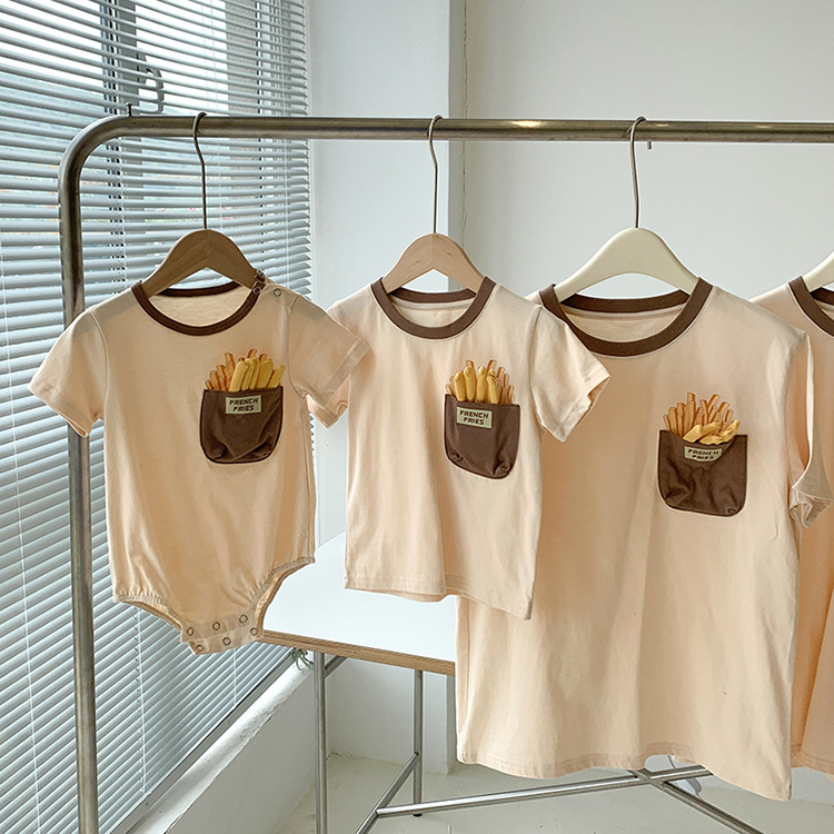 薯條親子裝嬰兒一家三口四口2025新款親子夏母女母子網紅短袖t恤