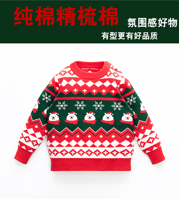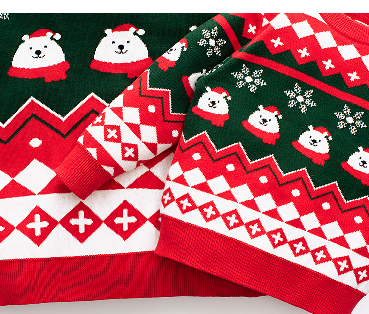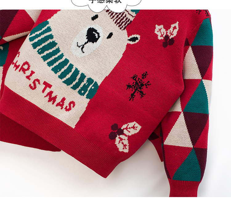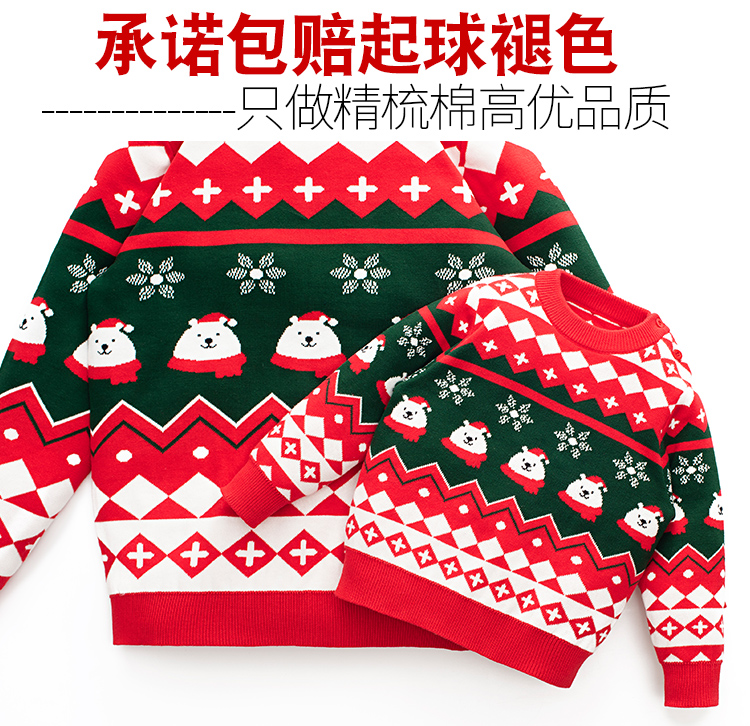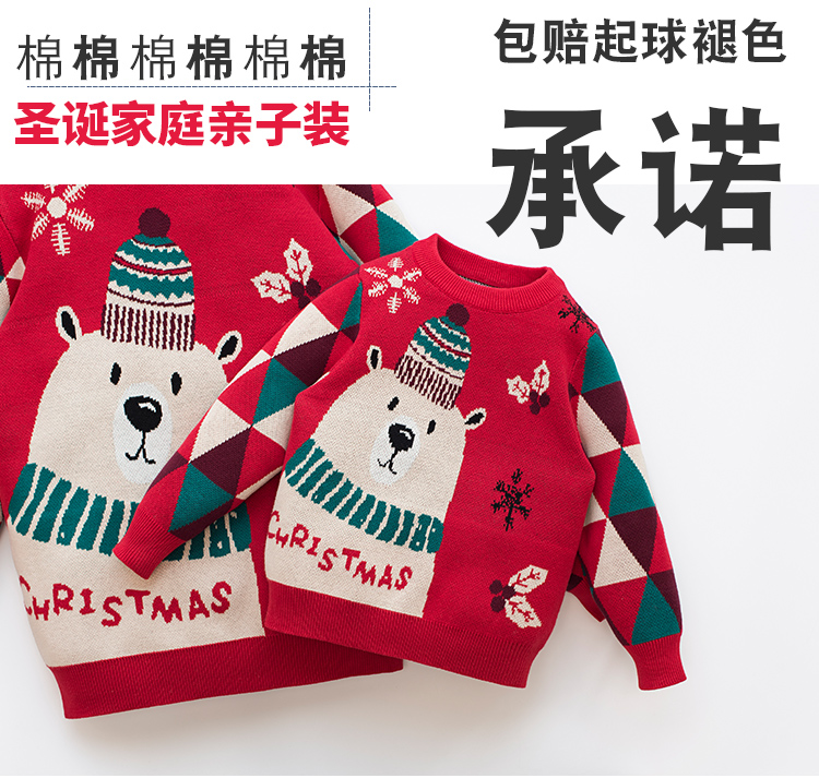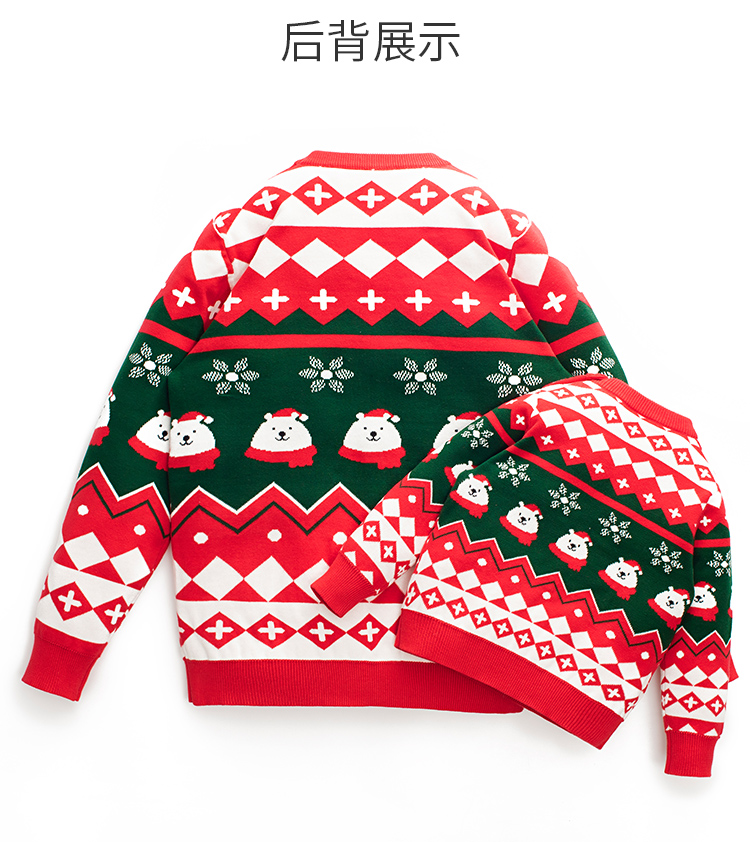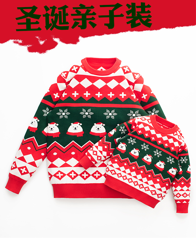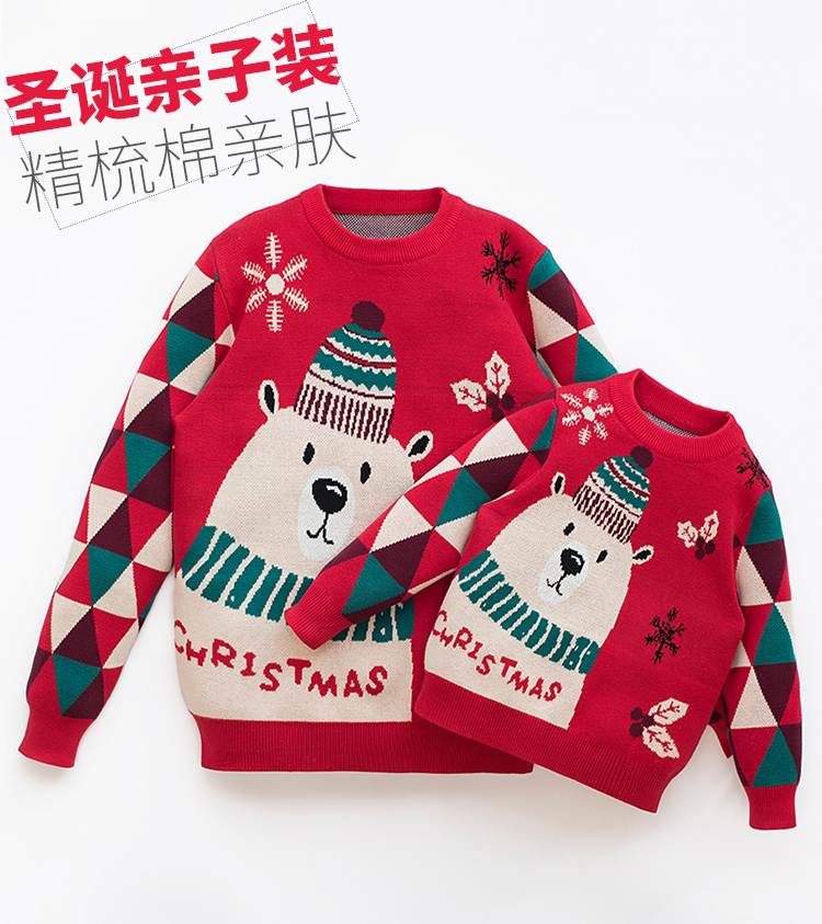 親子裝一家三口冬季聖誕節過年紅色毛衣母女新年洋氣炸街母子外套