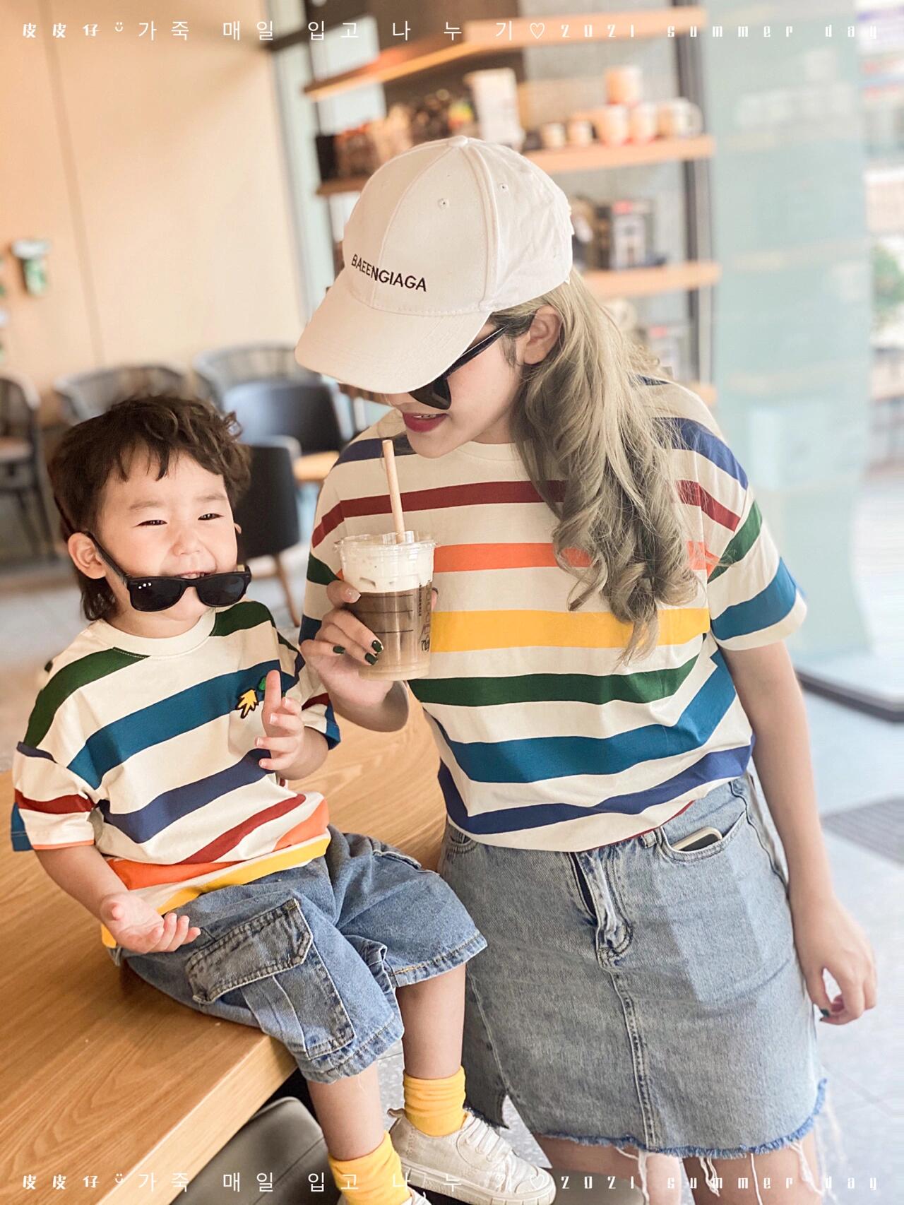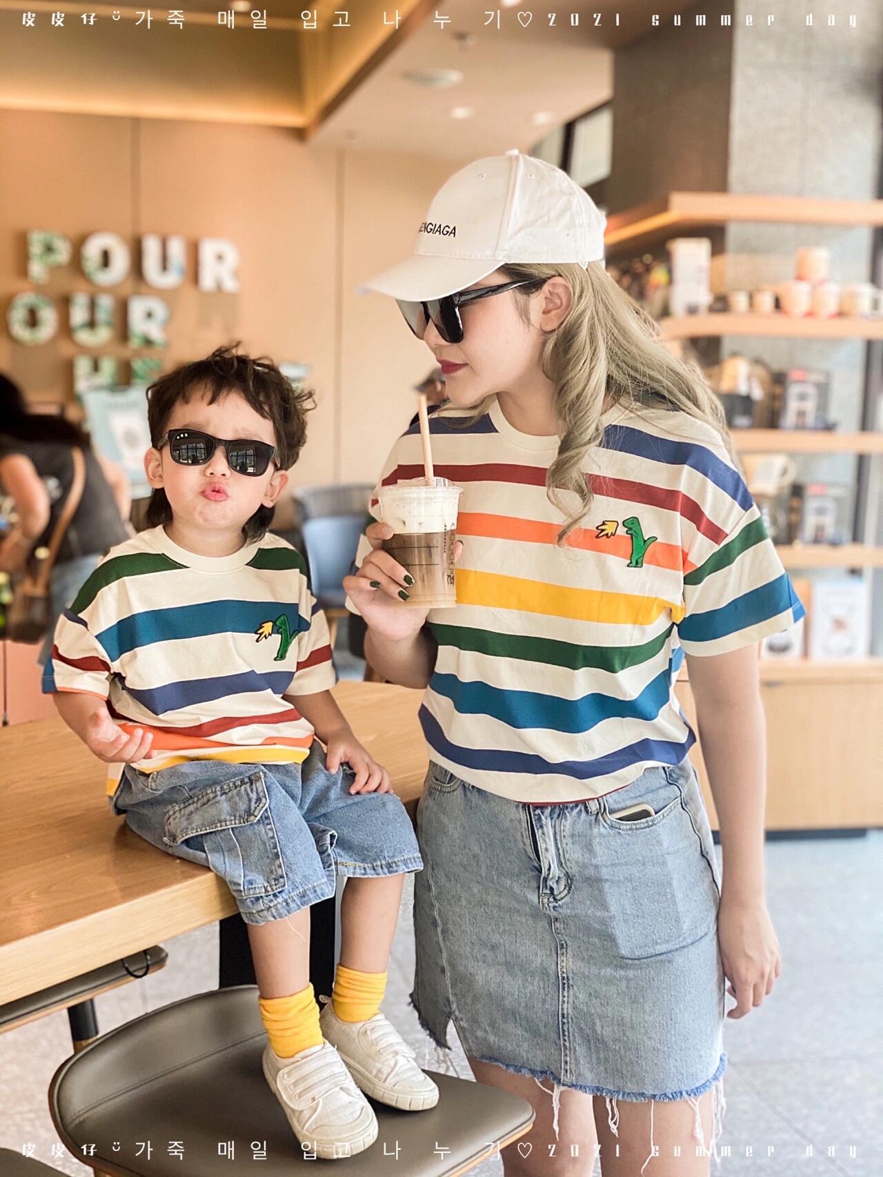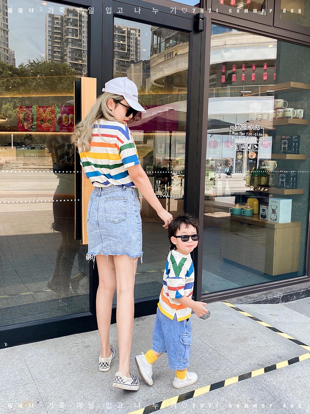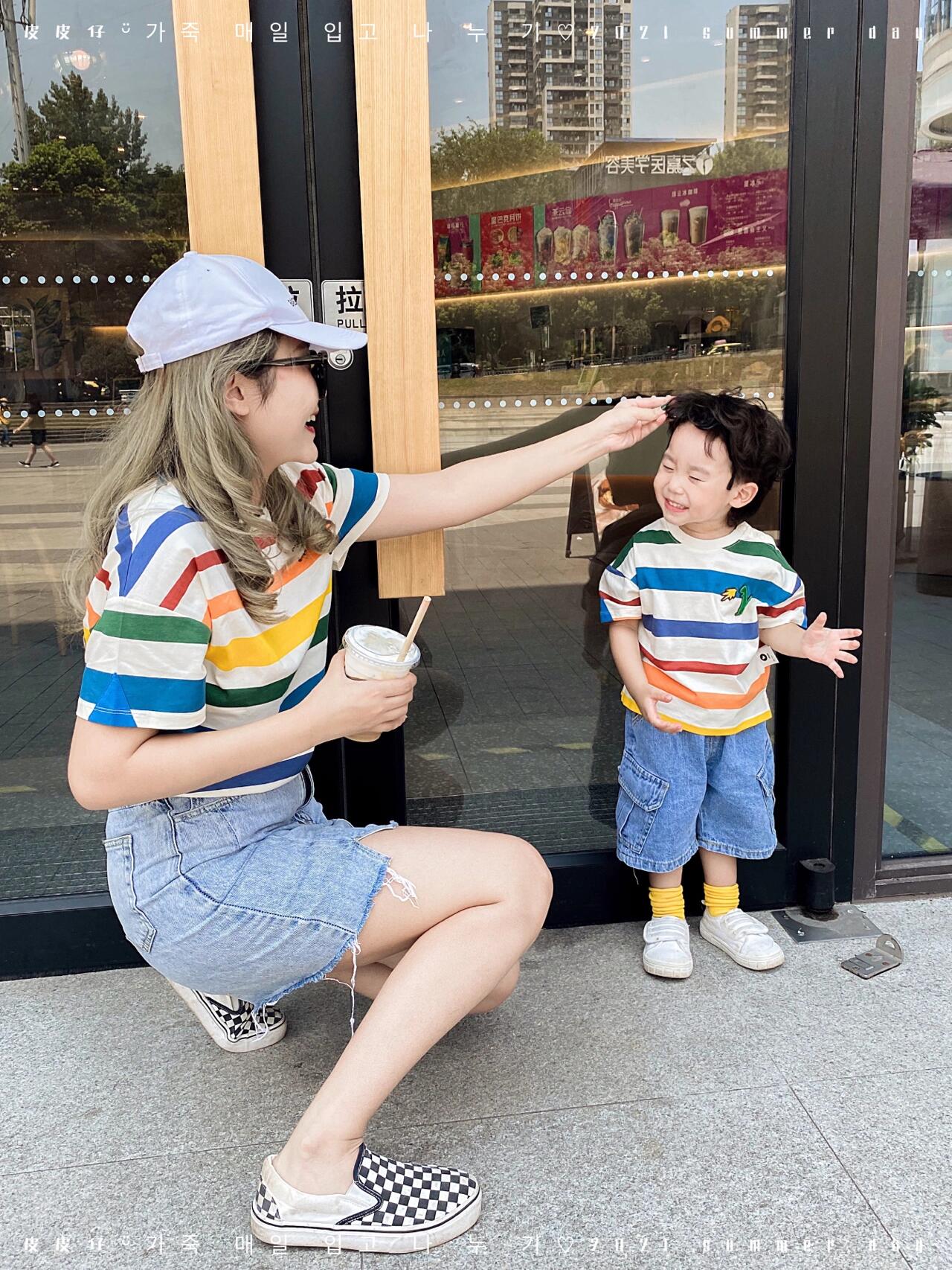 今年流行的親子裝多巴胺潮流韓範大碼寬松T恤親子裝母子母女時尚