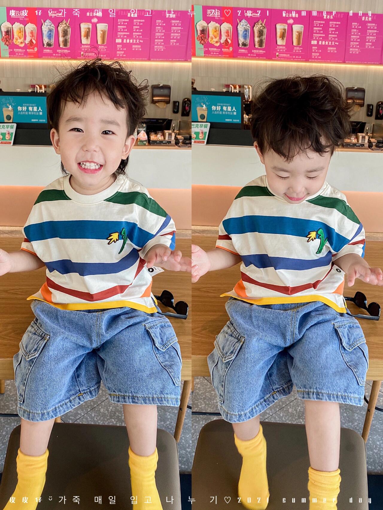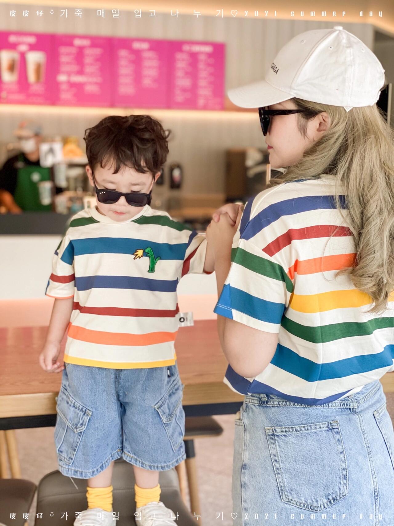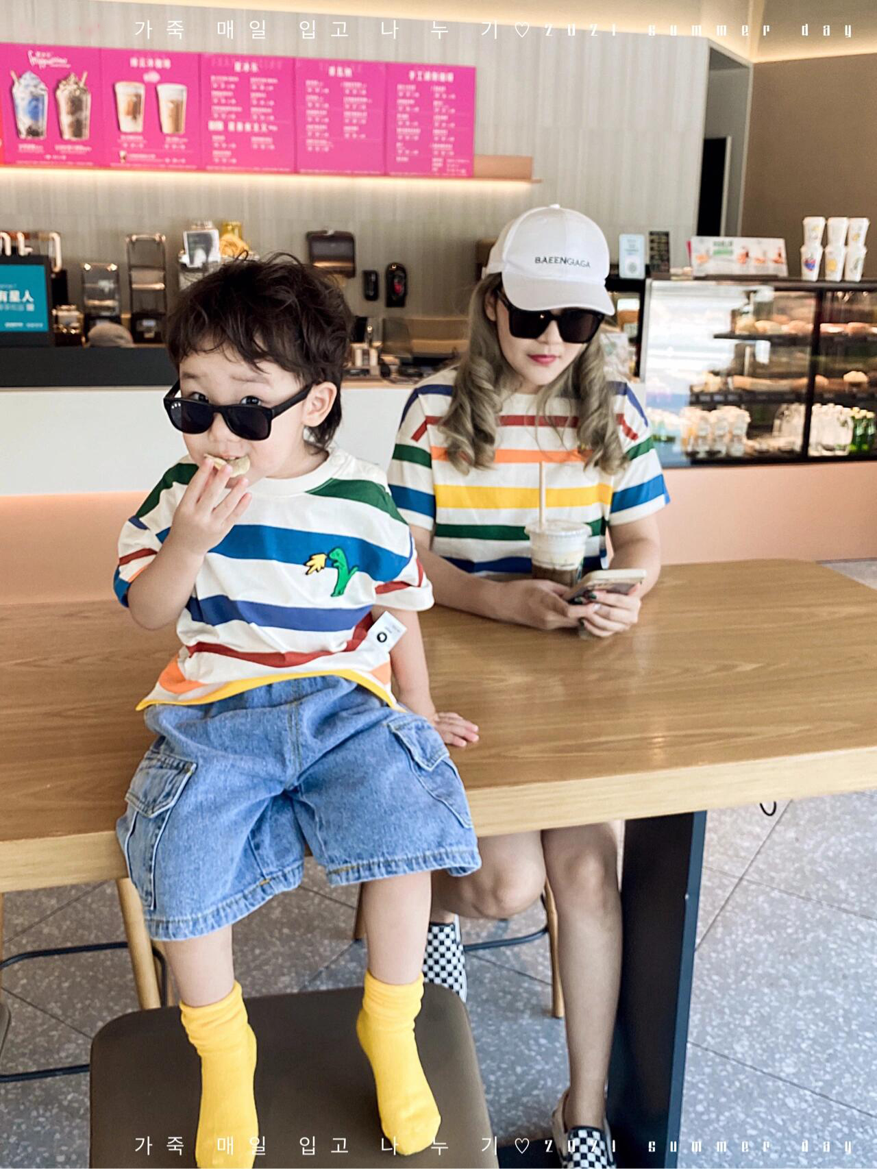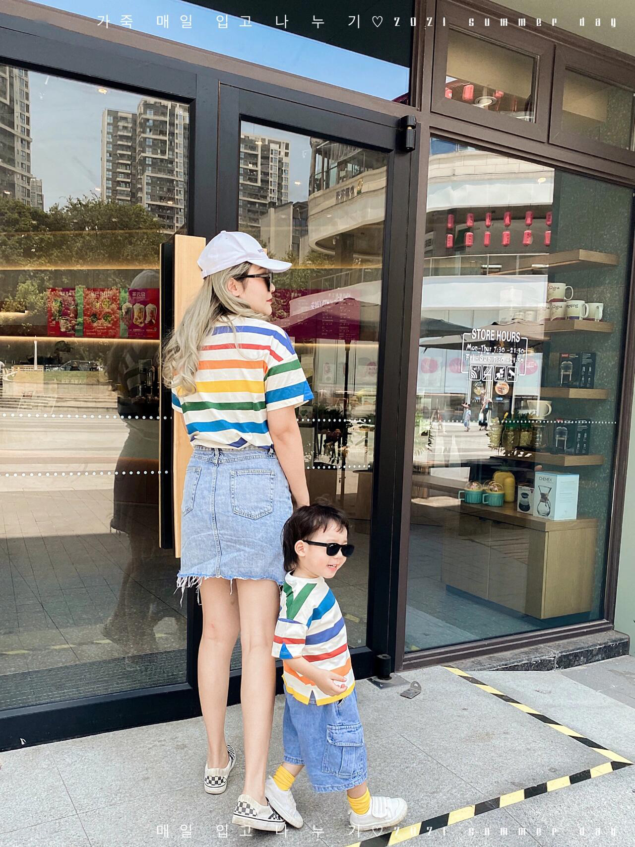 今年流行的親子裝多巴胺潮流韓範大碼寬松T恤親子裝母子母女時尚