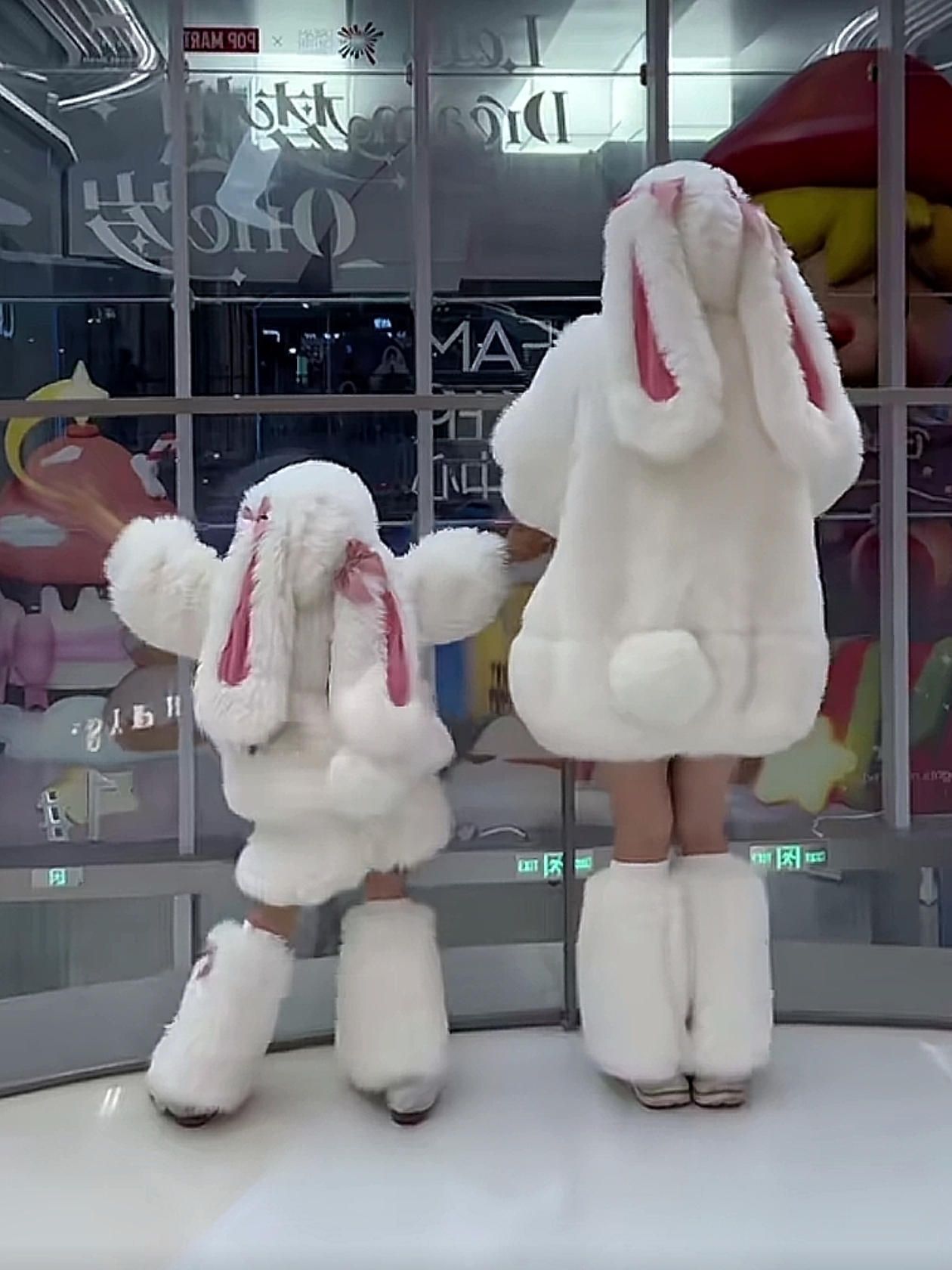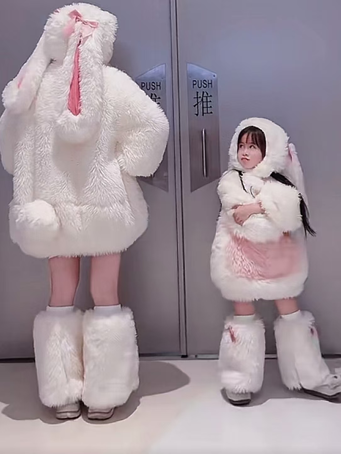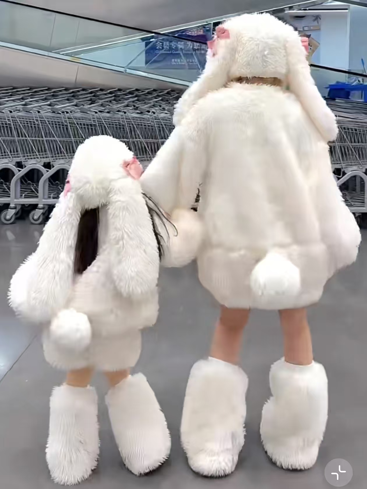 可愛毛絨小兔嘰加絨加厚兔子套裝可愛外衣親子裝毛毛母女裝兒童