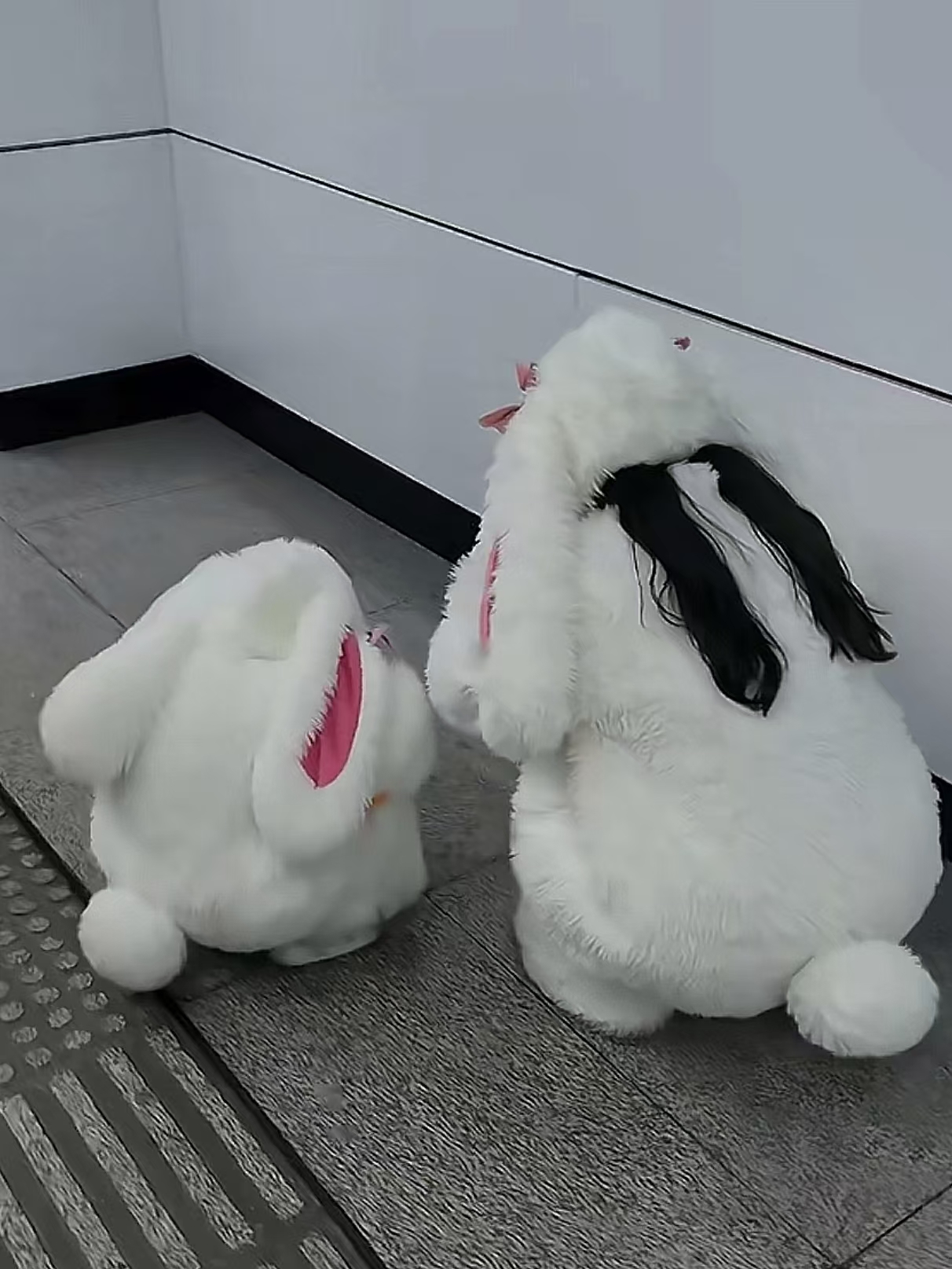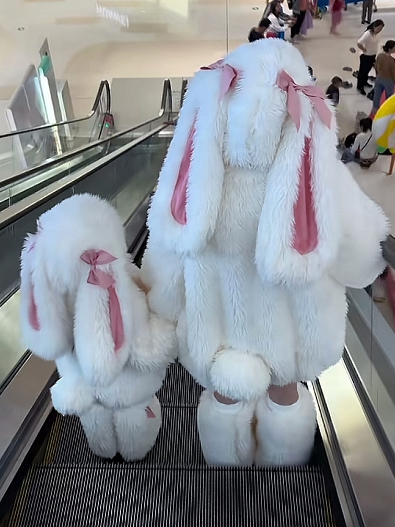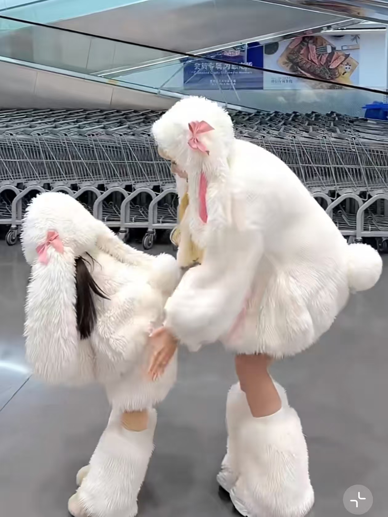 可愛毛絨小兔嘰加絨加厚兔子套裝可愛外衣親子裝毛毛母女裝兒童