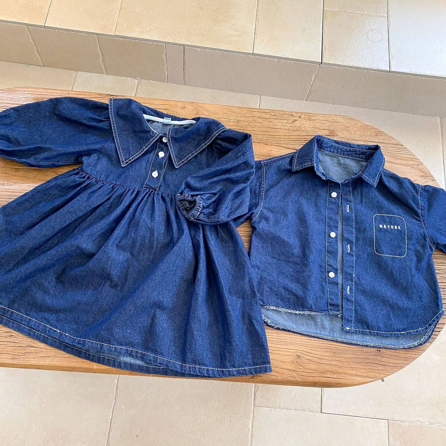 兒童兄妹裝牛仔外套2025新款親子裝春裝姐弟裝洋氣襯衫春秋套裝