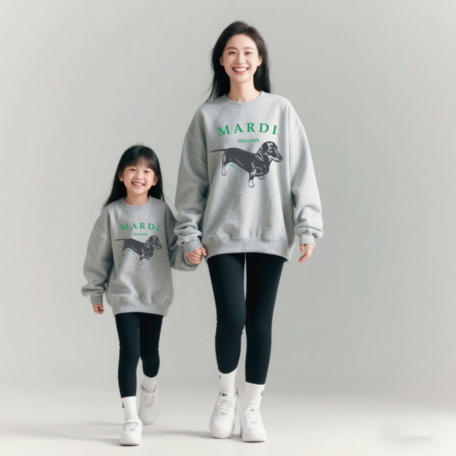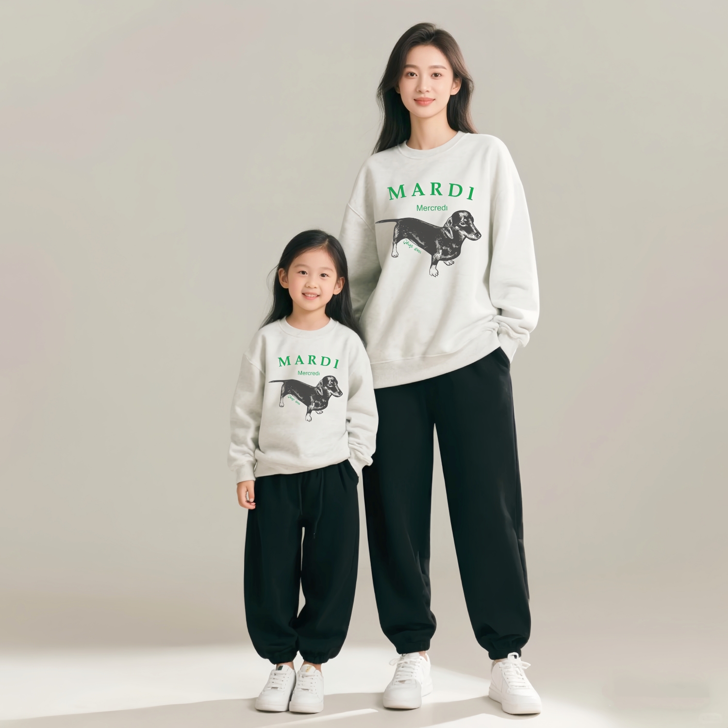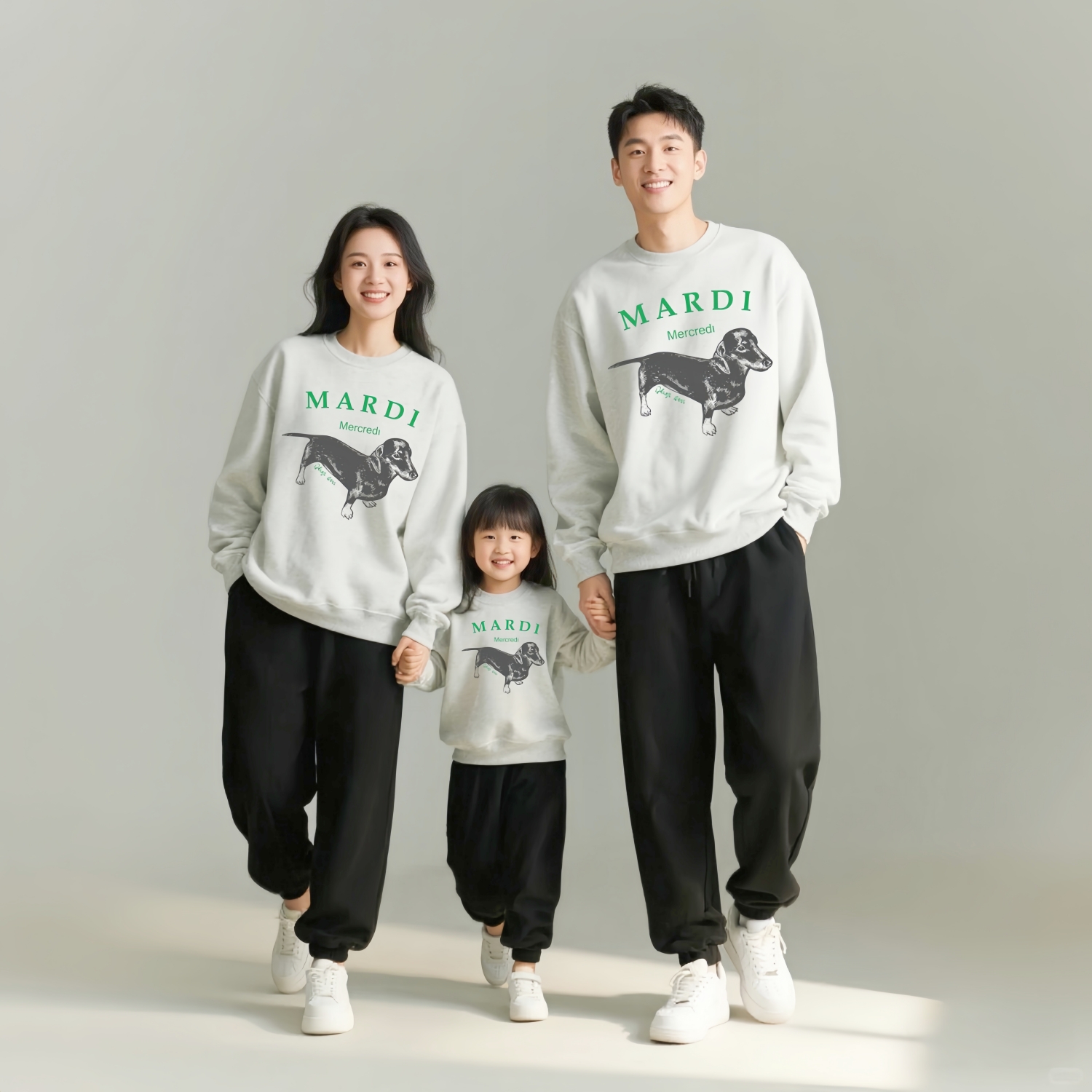 MARDI ERSHEO韓國經典臘腸狗親子裝衛衣一家三四口秋冬母子母女裝