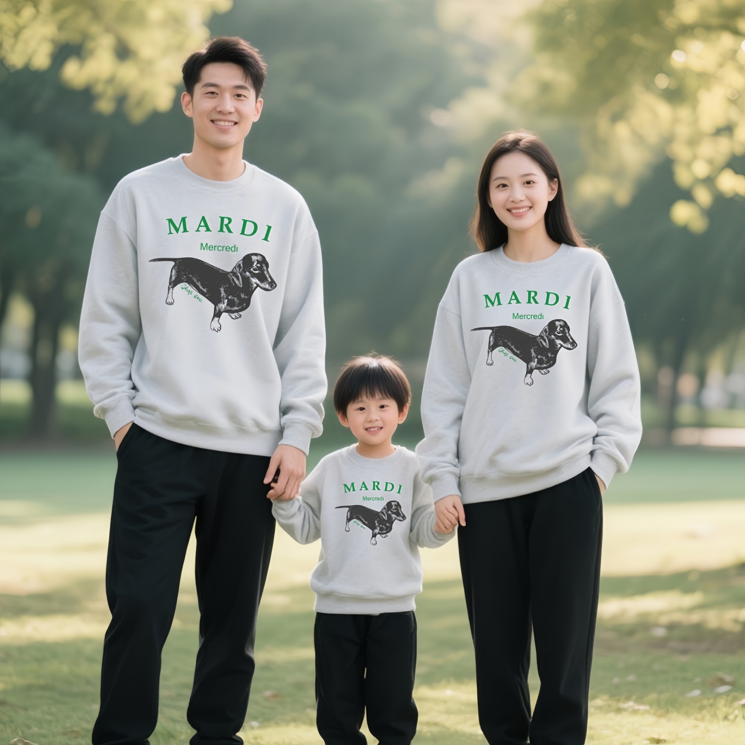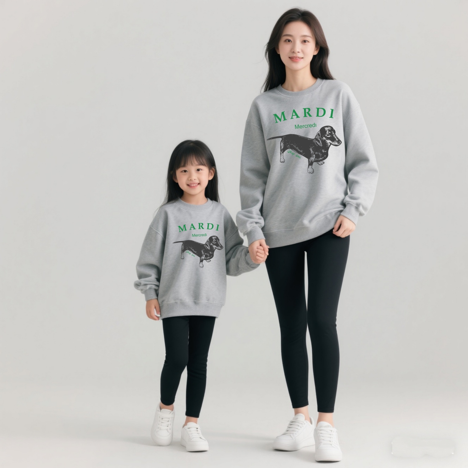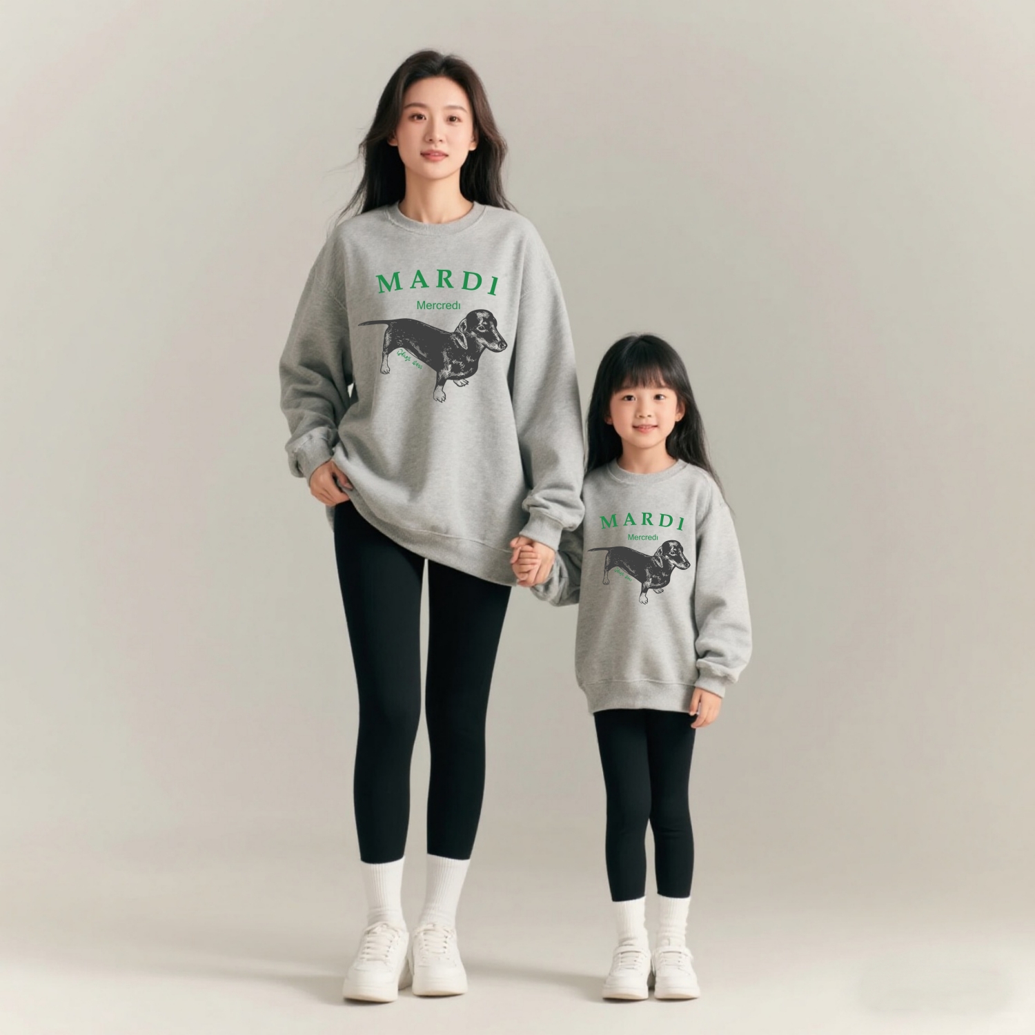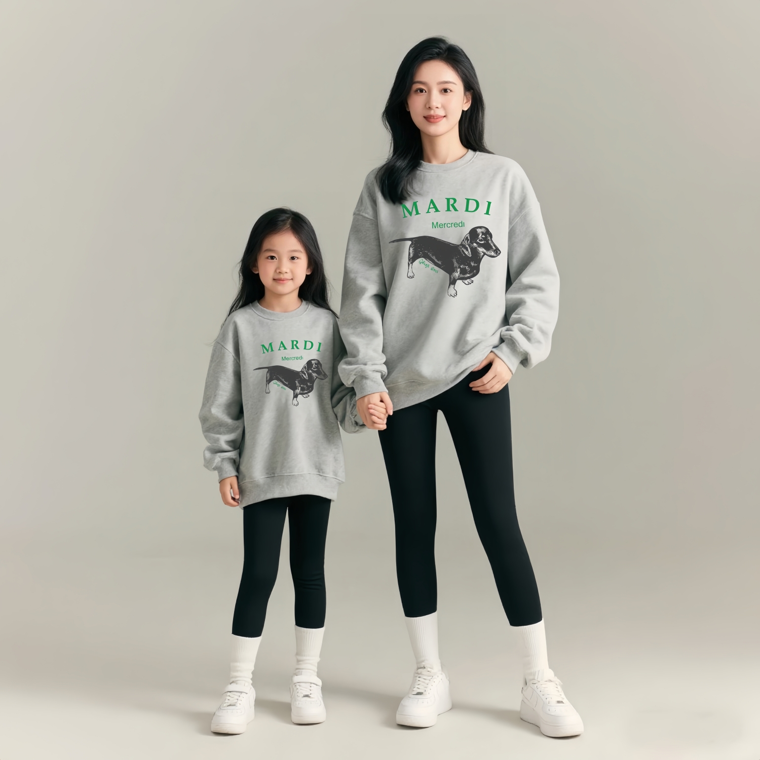 MARDI ERSHEO韓國經典臘腸狗親子裝衛衣一家三四口秋冬母子母女裝