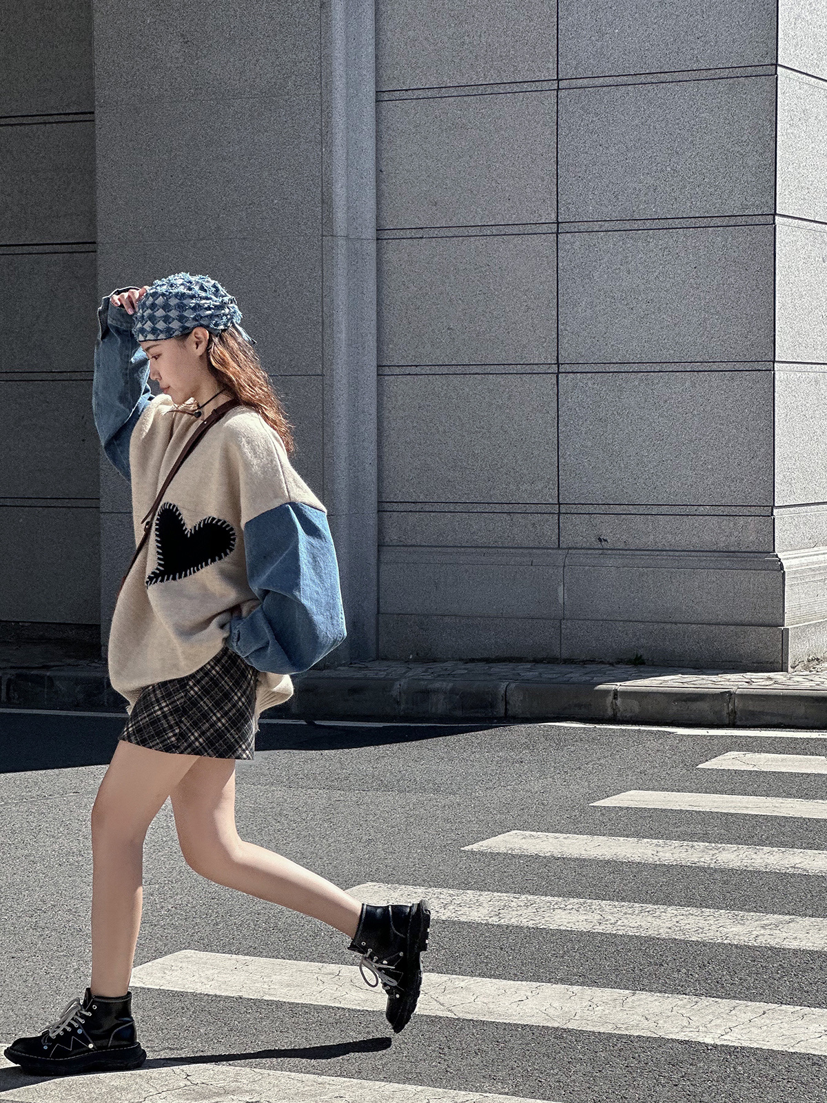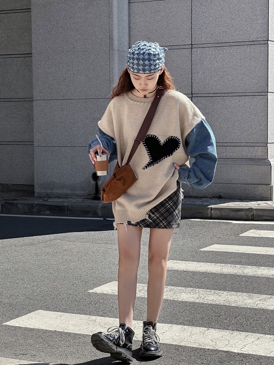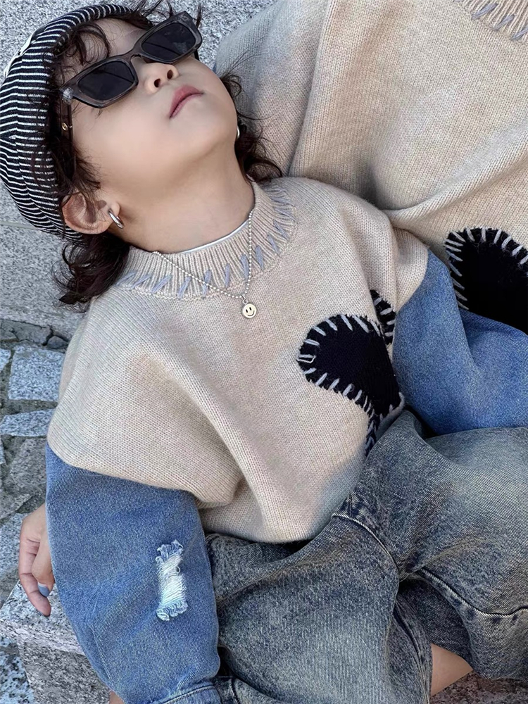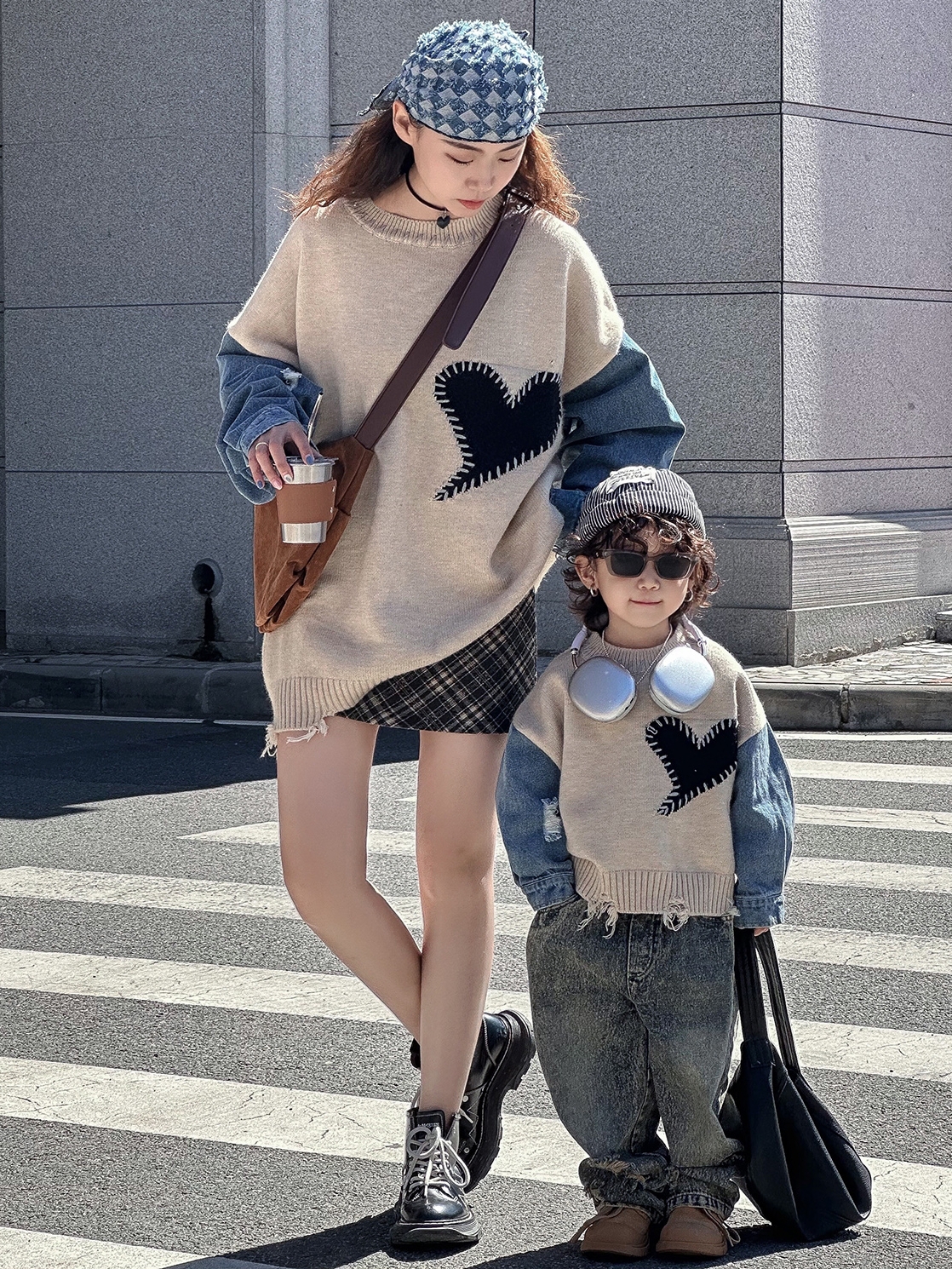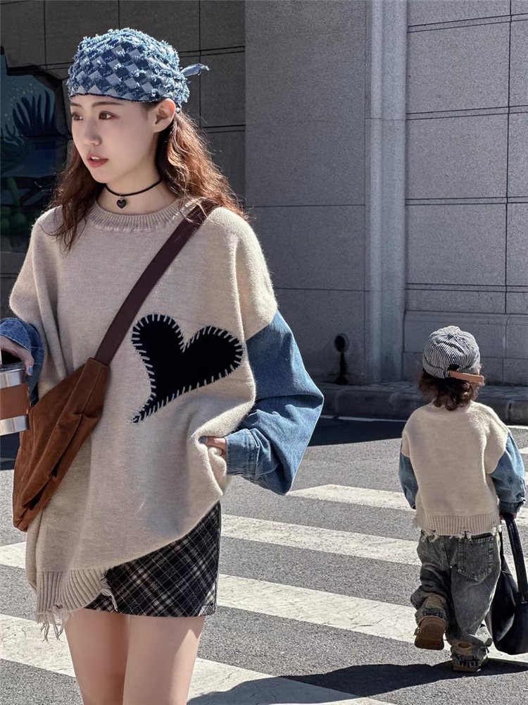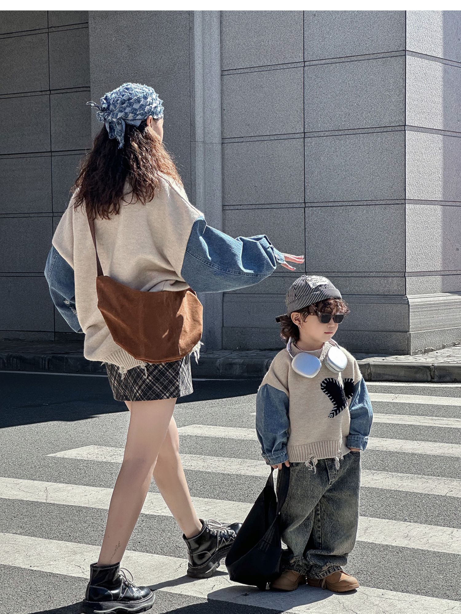 不一樣的親子裝一家三口高級感全家母子秋季時尚洋氣拼接毛衣衛衣