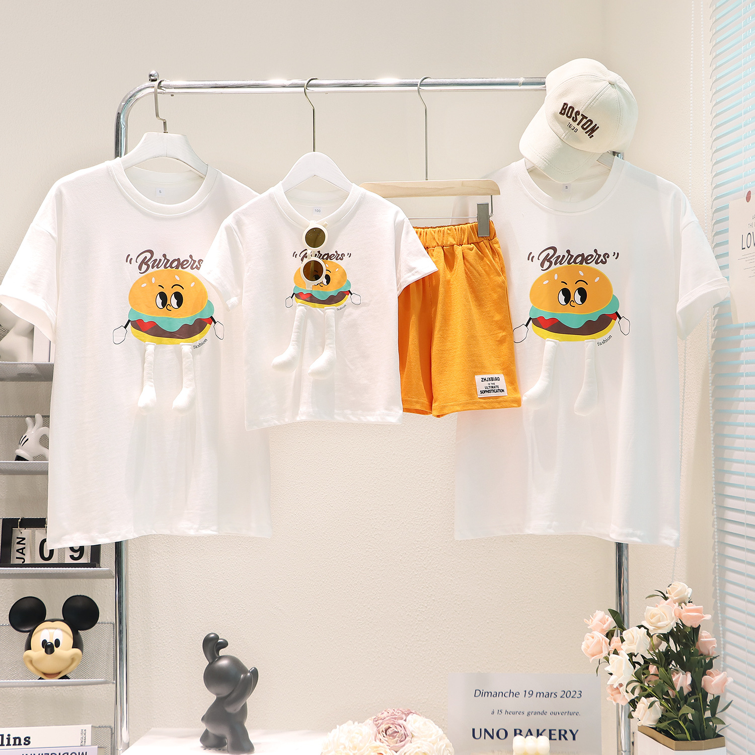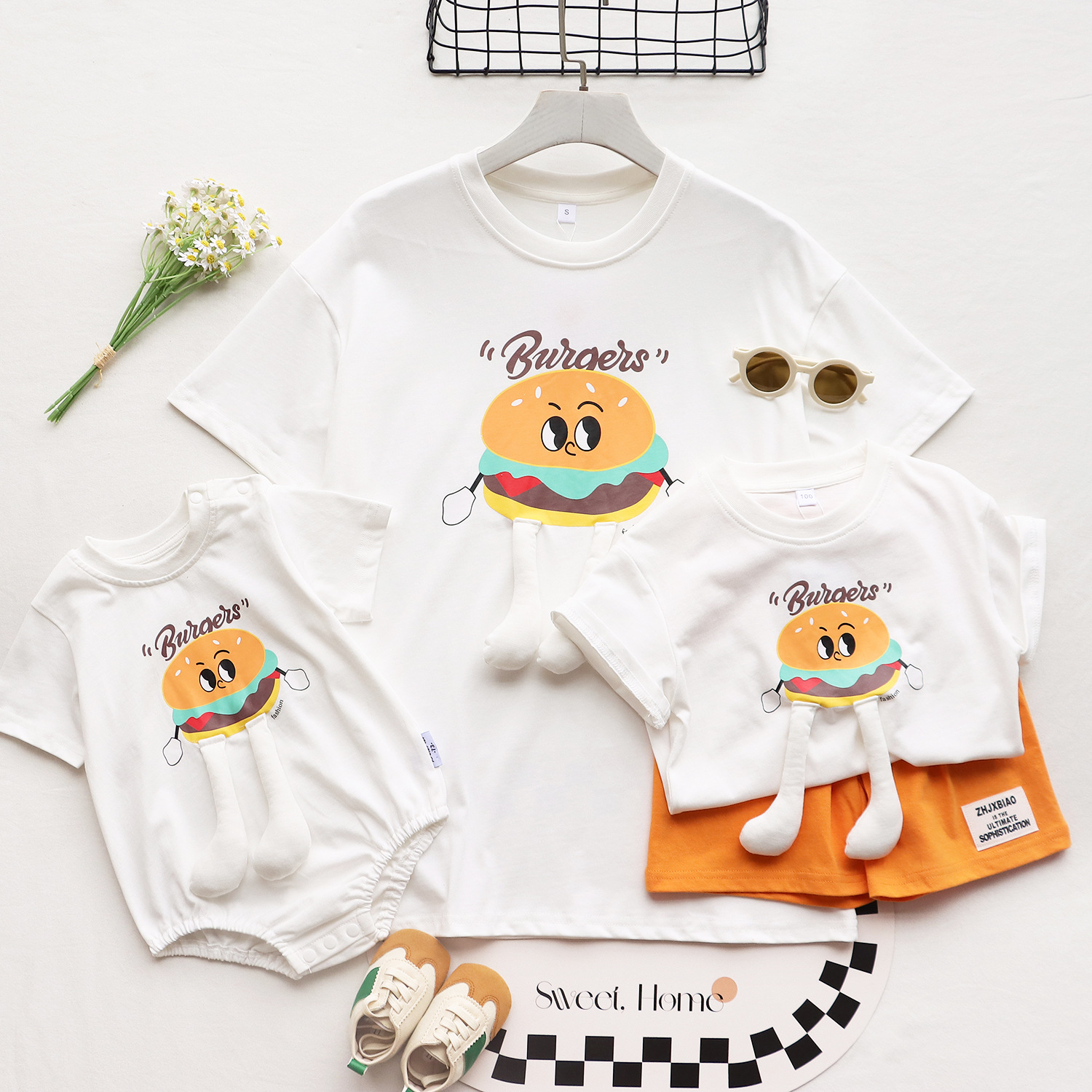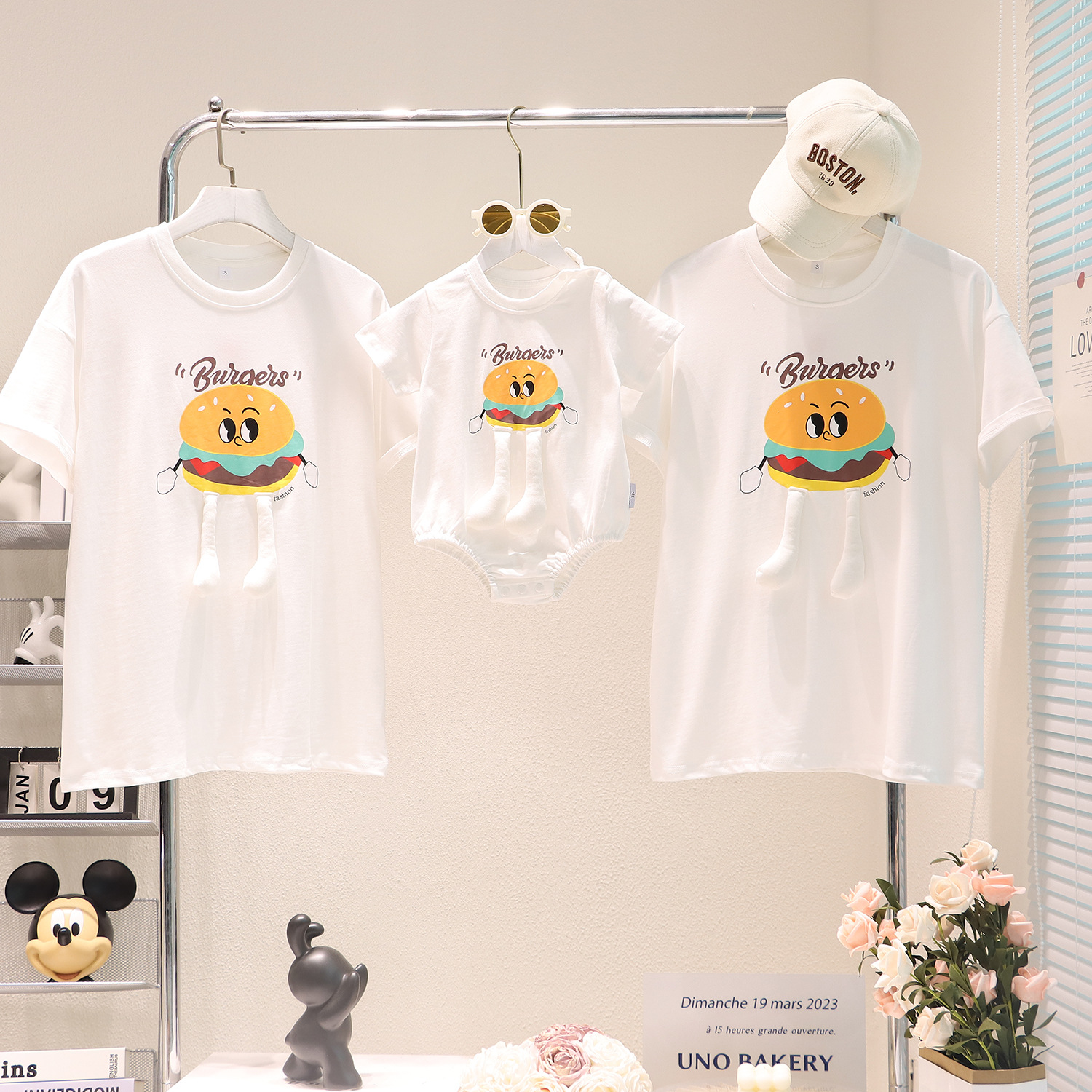 小月齡親子裝一家三口夏季漢堡短袖t恤炸街高級嬰兒母子母女款潮