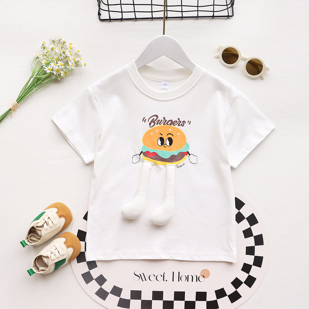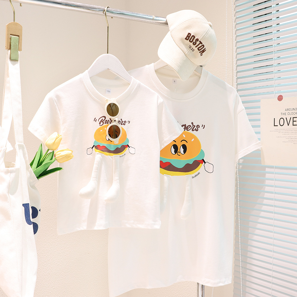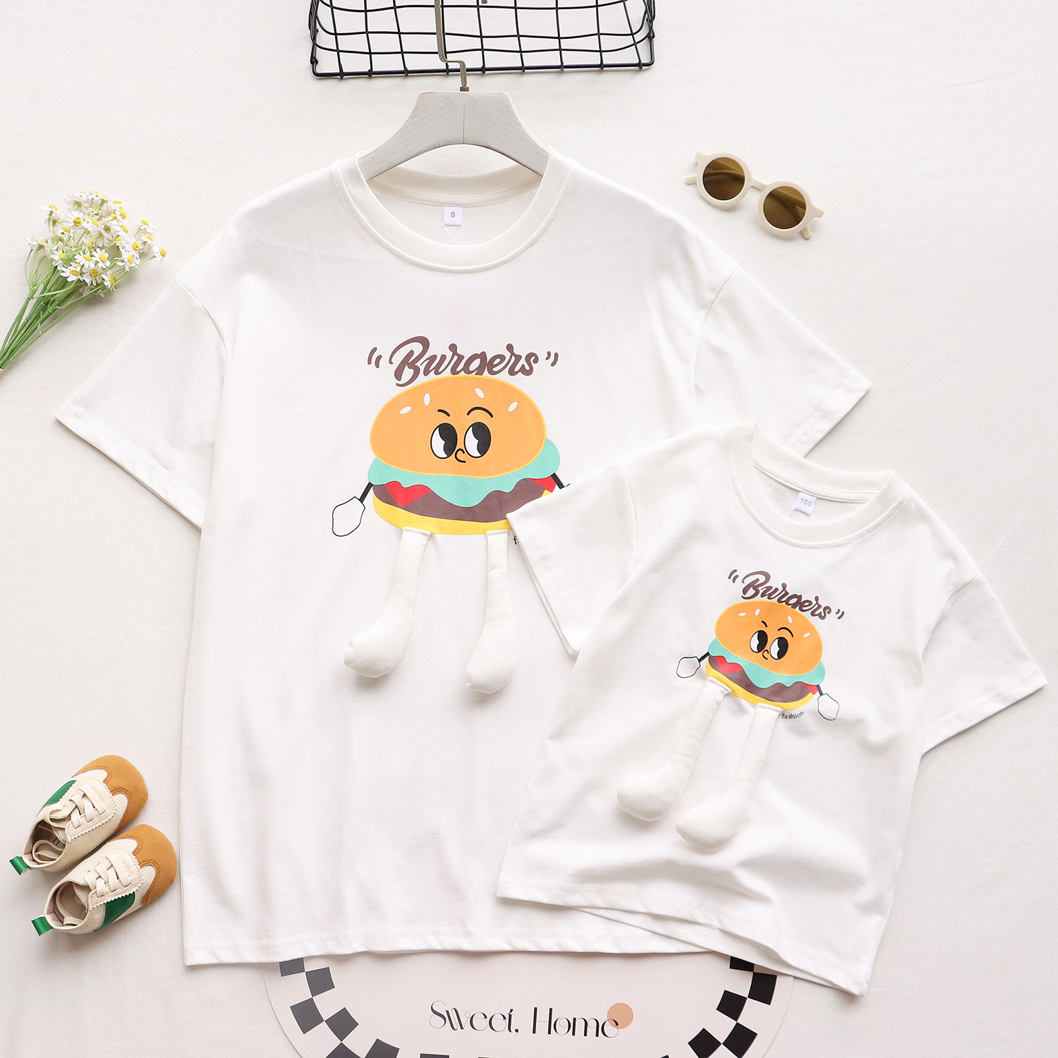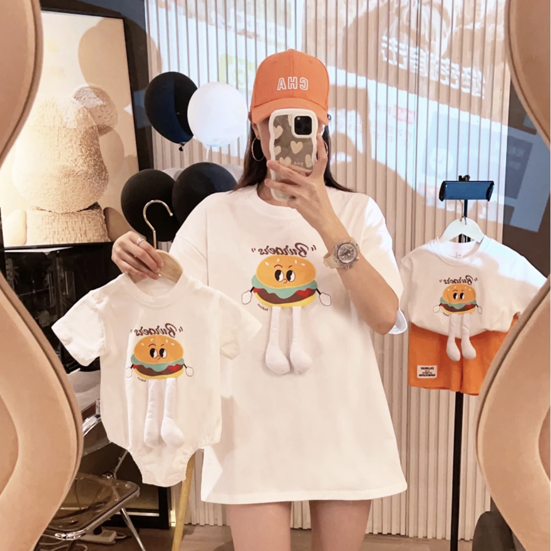 小月齡親子裝一家三口夏季漢堡短袖t恤炸街高級嬰兒母子母女款潮