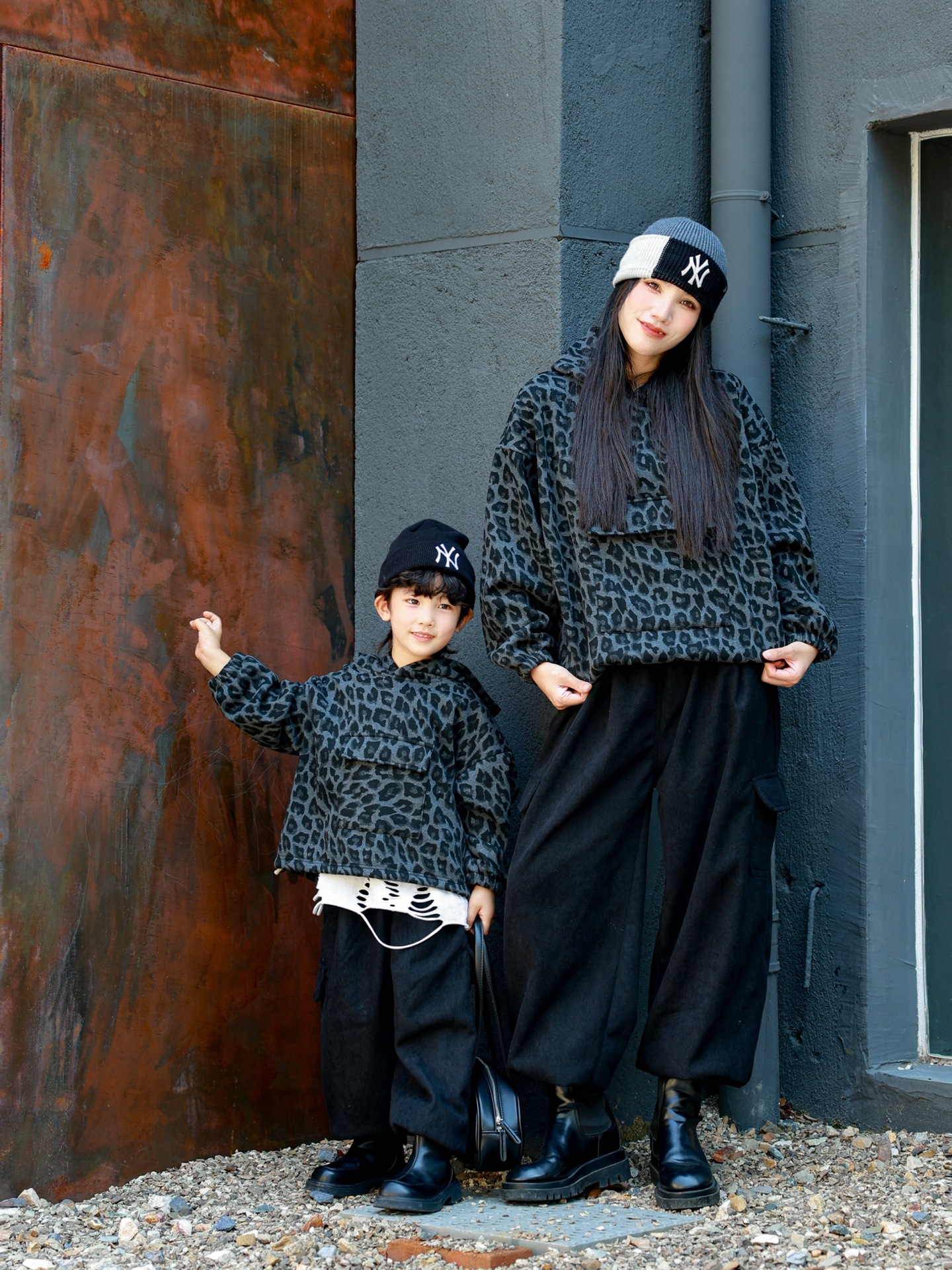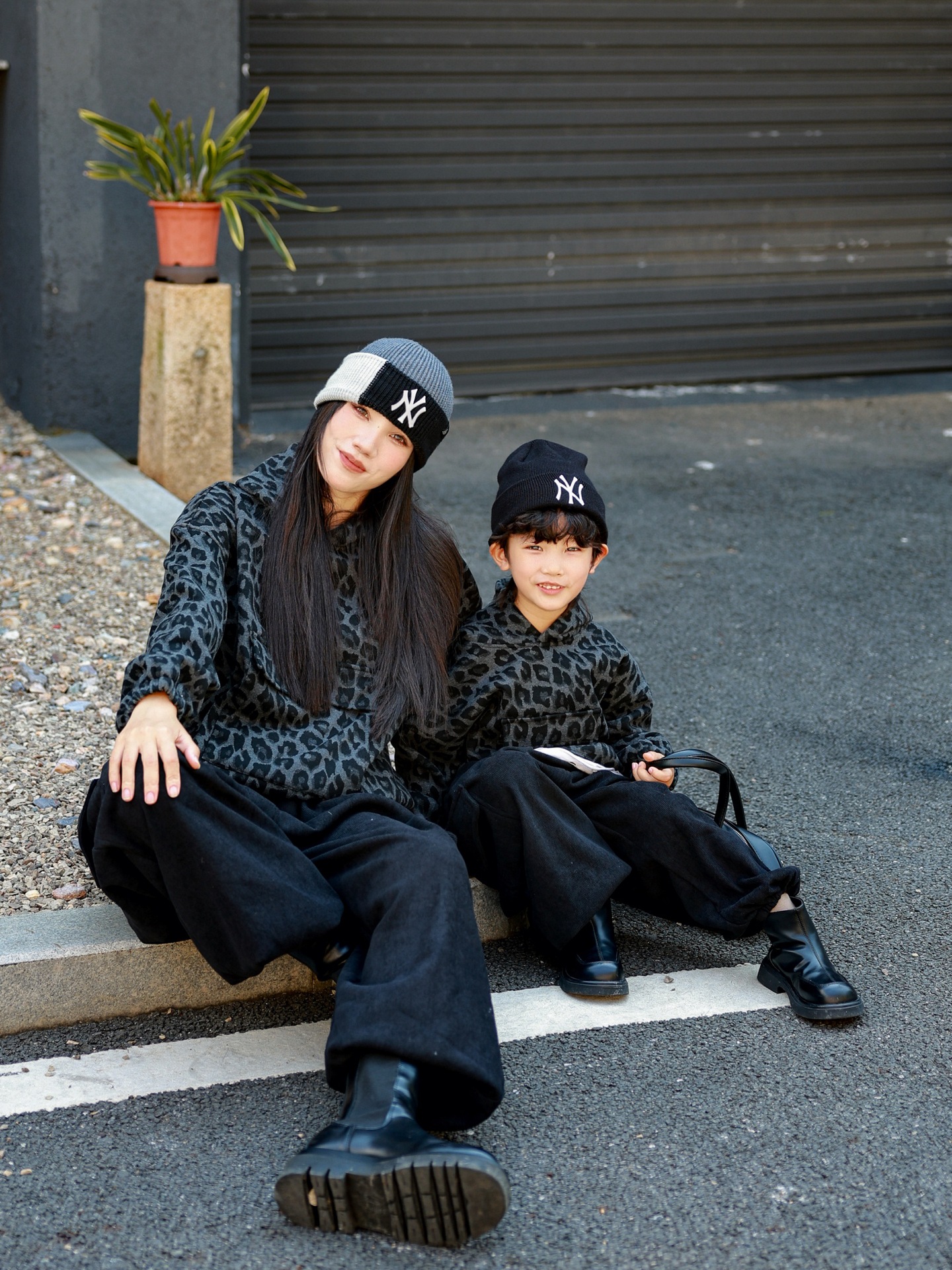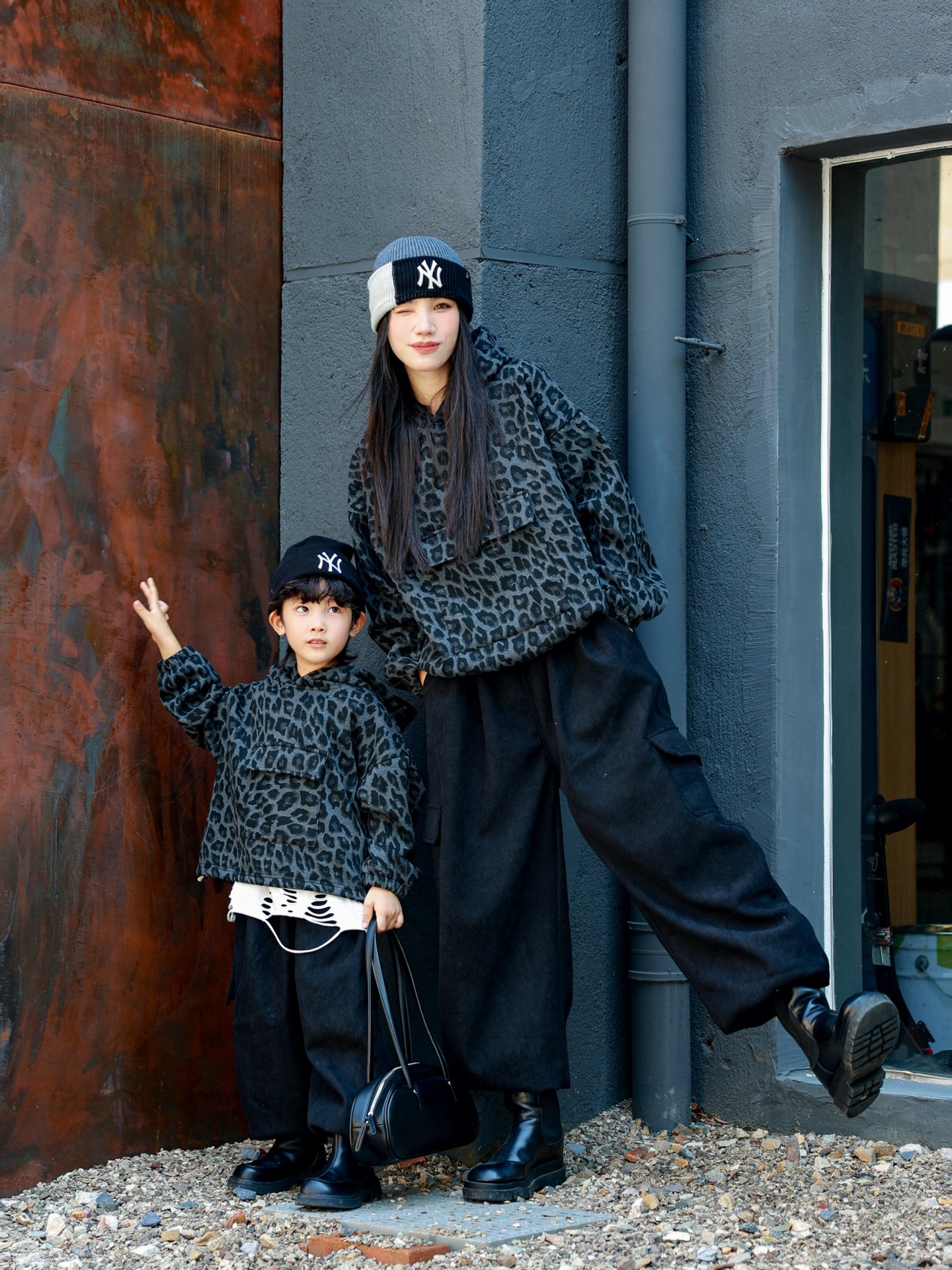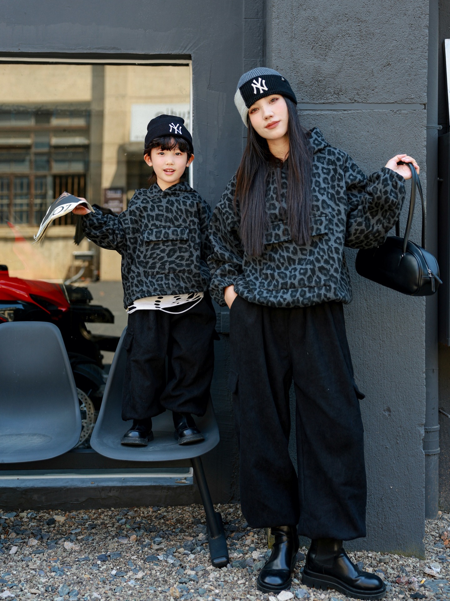 又酷又颯親子裝母子港風復古豹紋衛衣冬季兒童洋氣時髦連帽外套潮