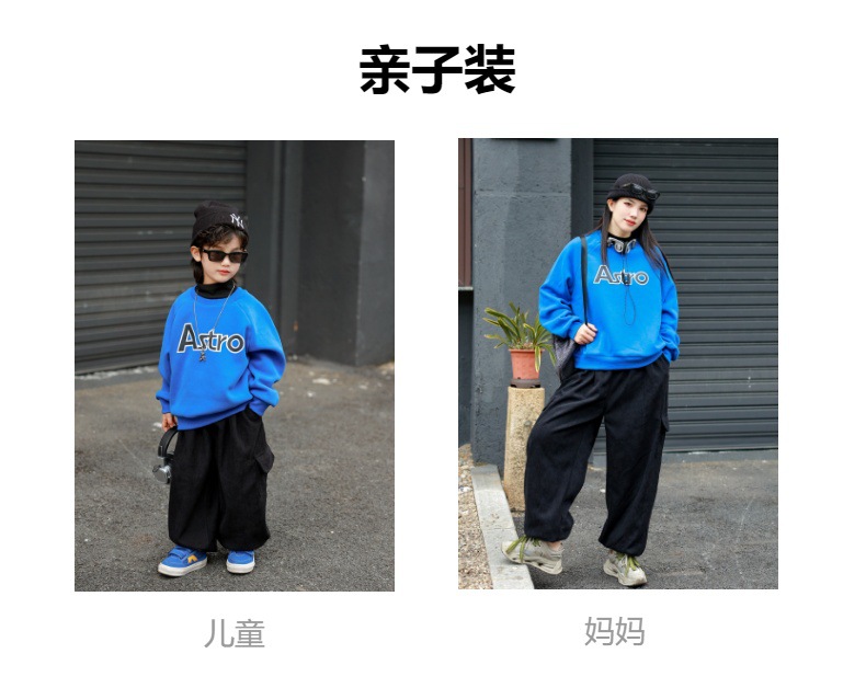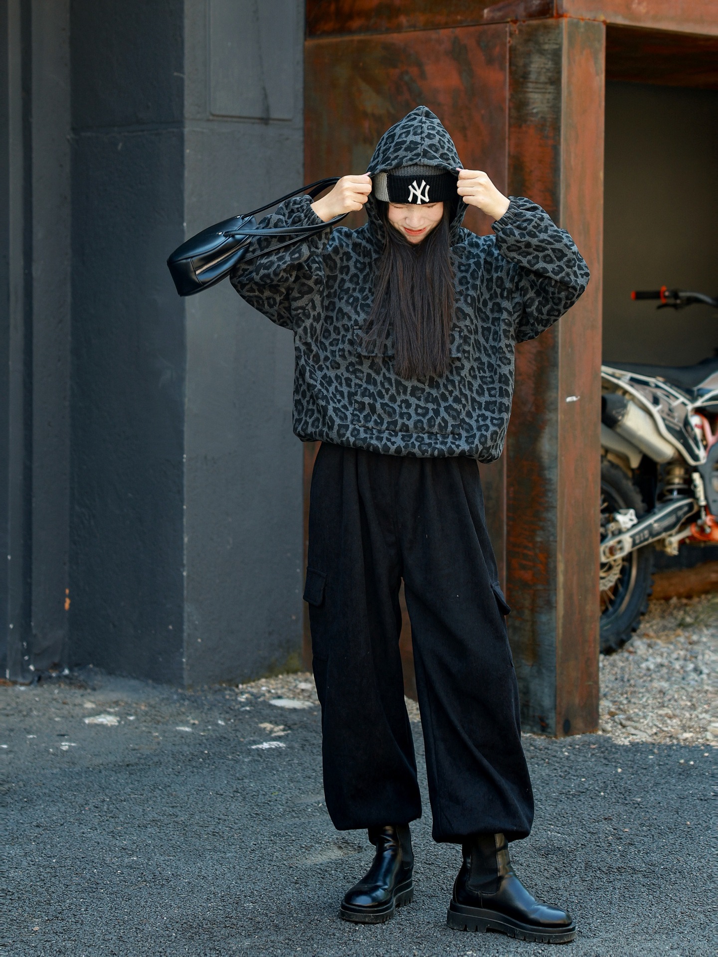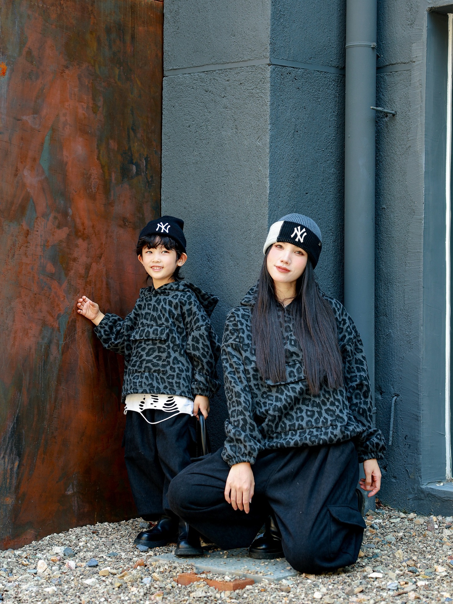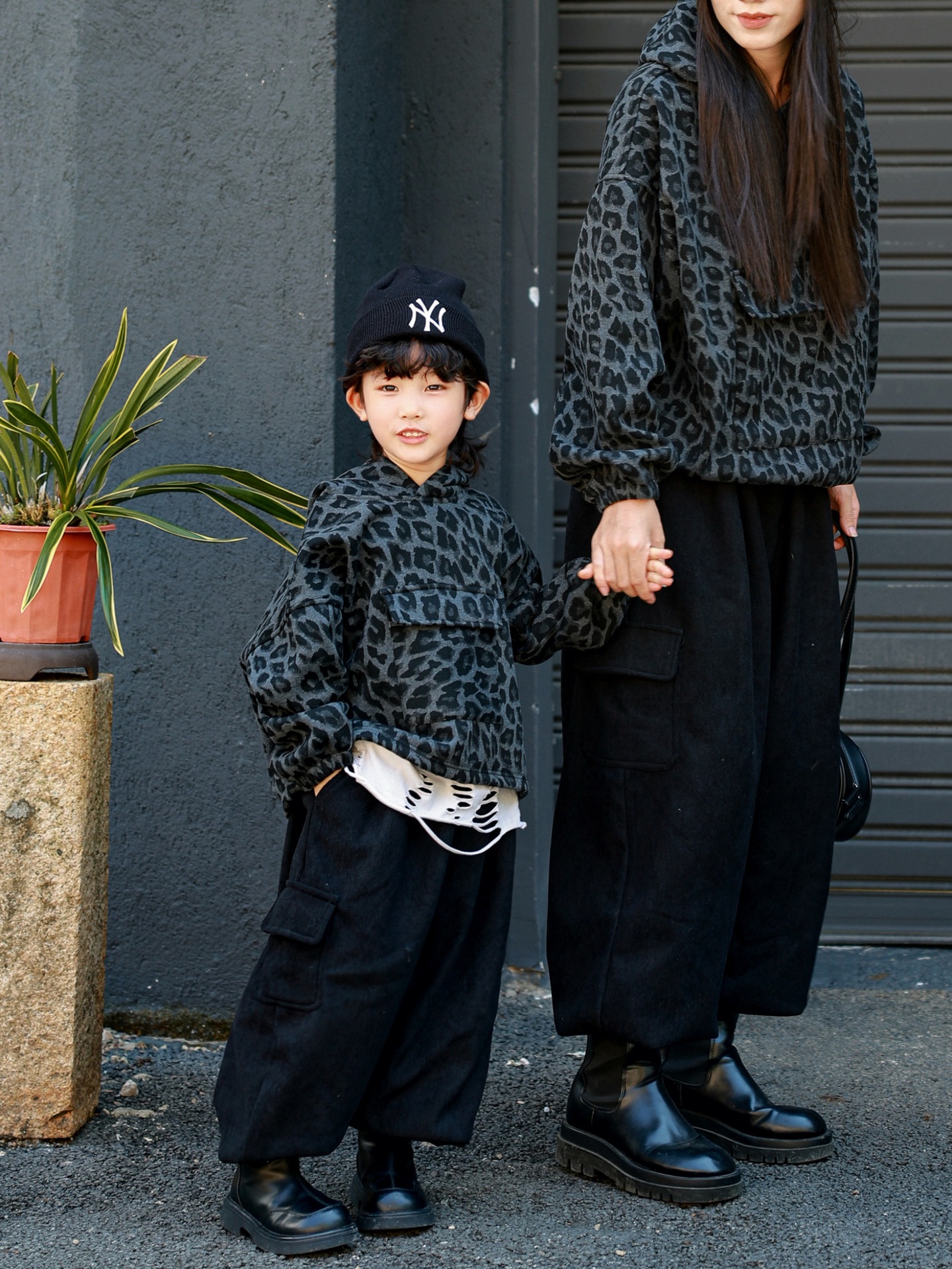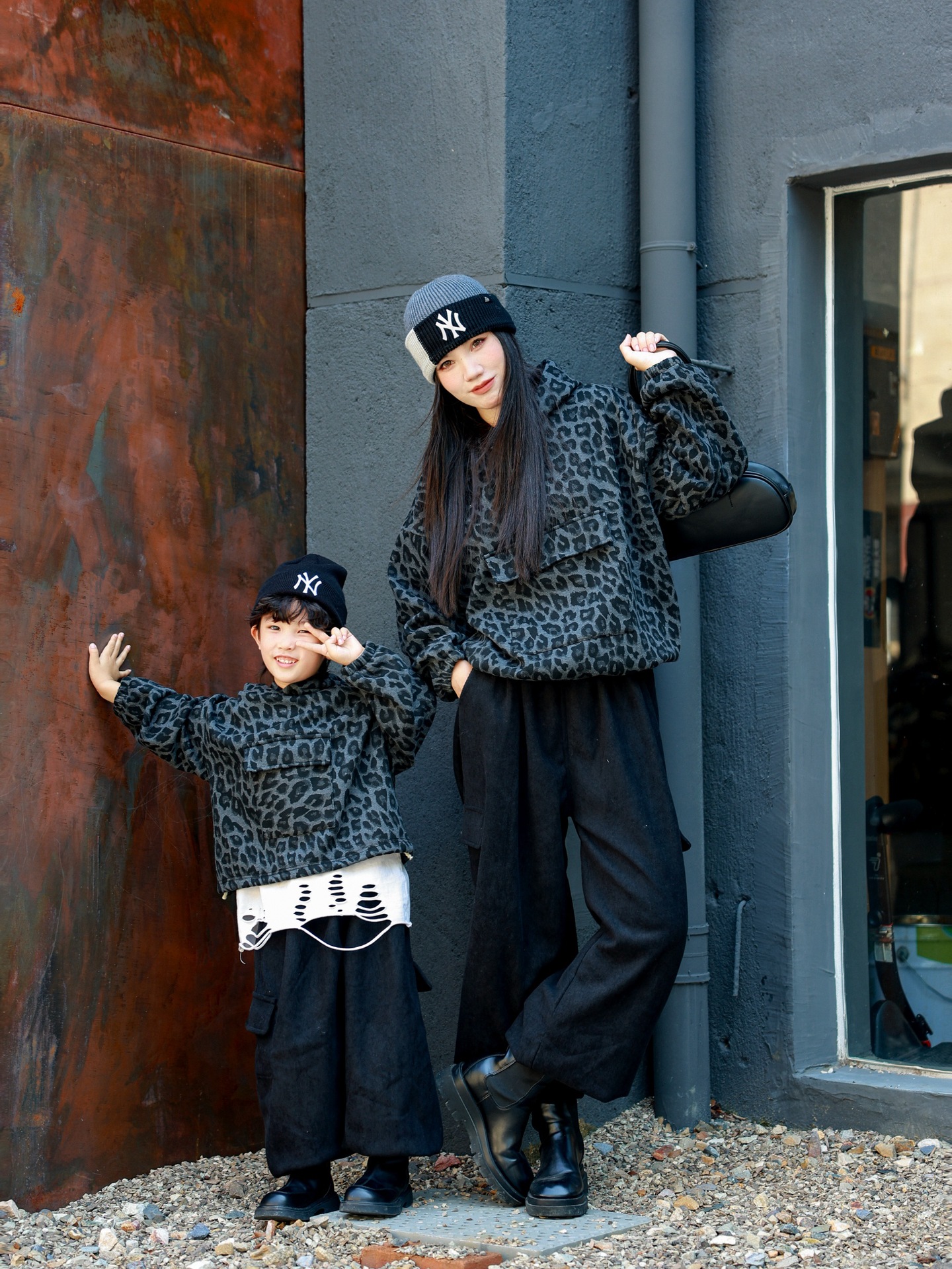 又酷又颯親子裝母子港風復古豹紋衛衣冬季兒童洋氣時髦連帽外套潮