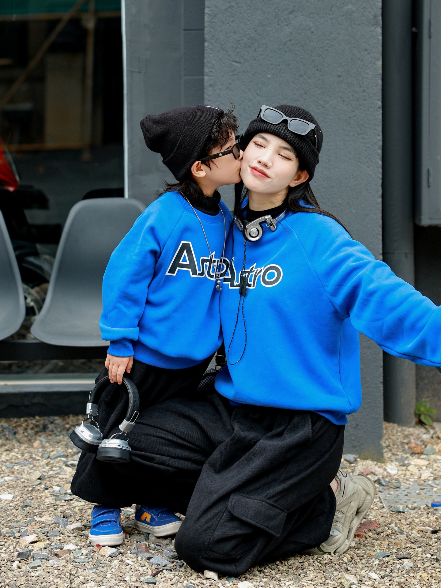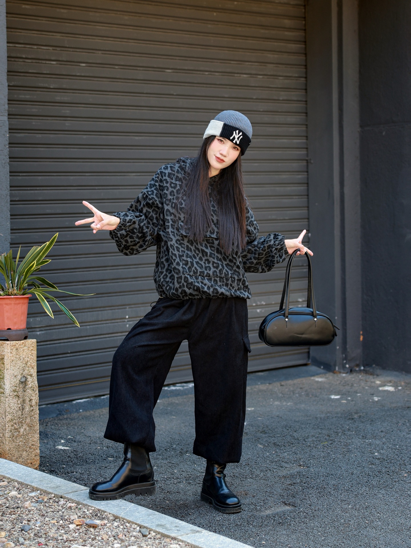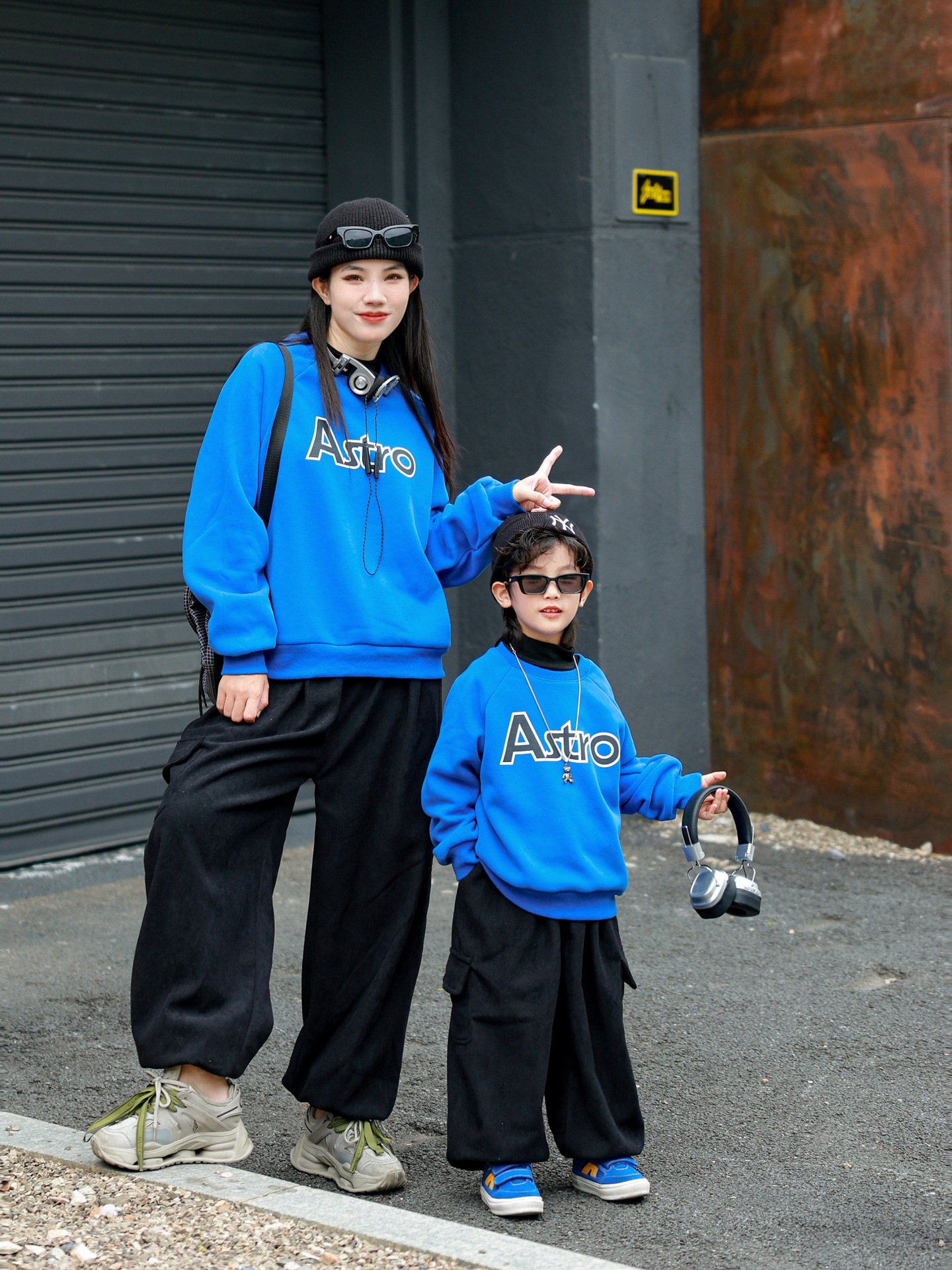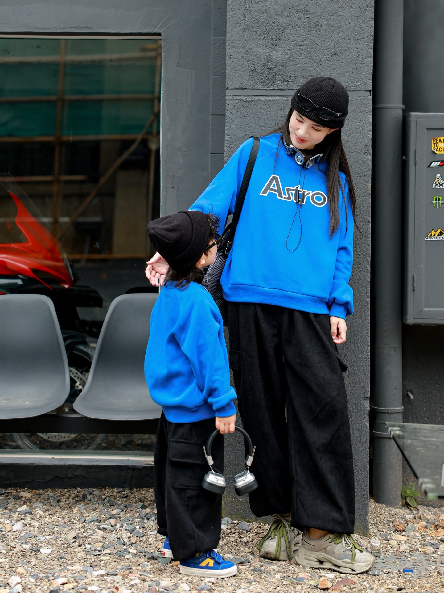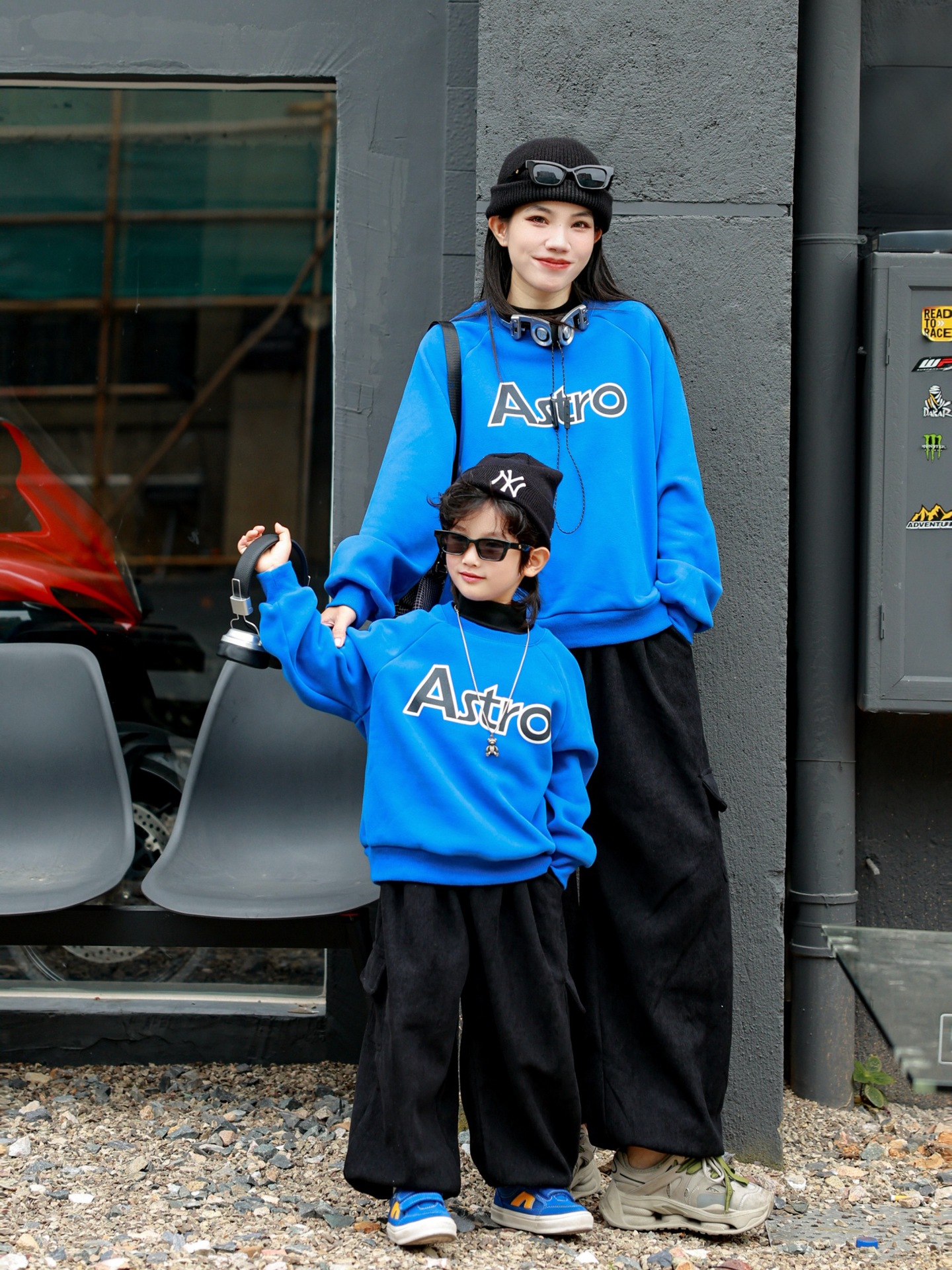 又酷又颯親子裝母子港風復古豹紋衛衣冬季兒童洋氣時髦連帽外套潮