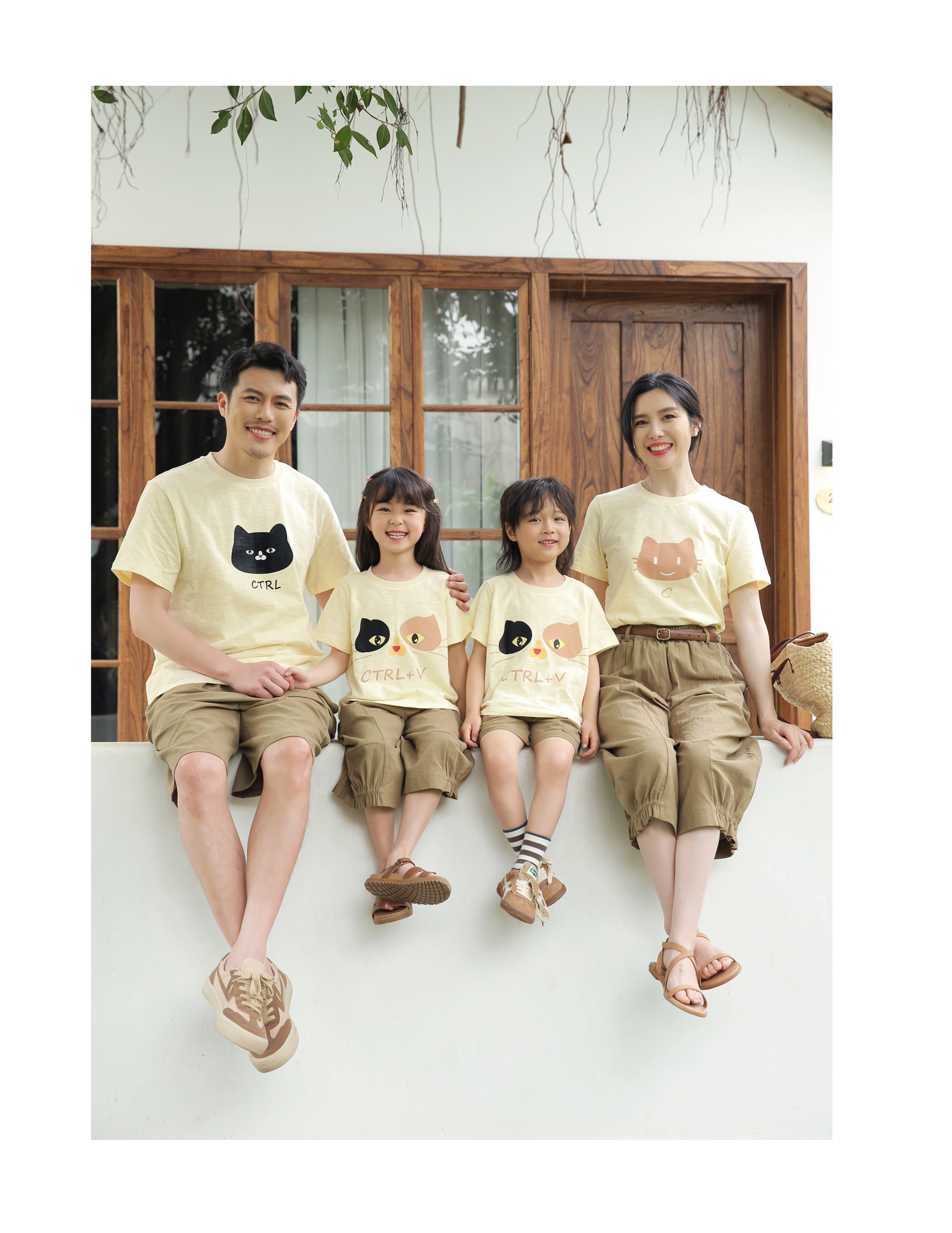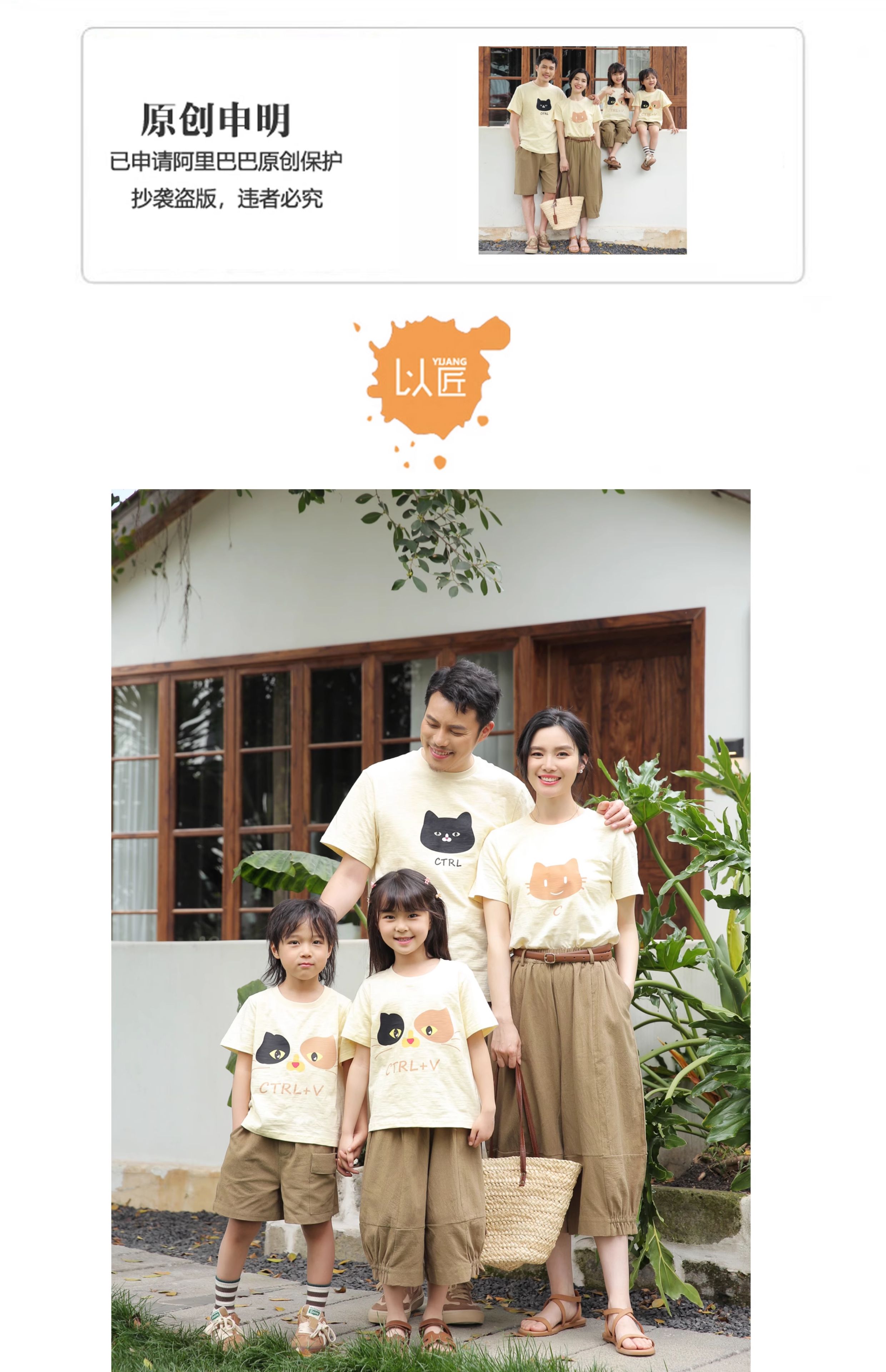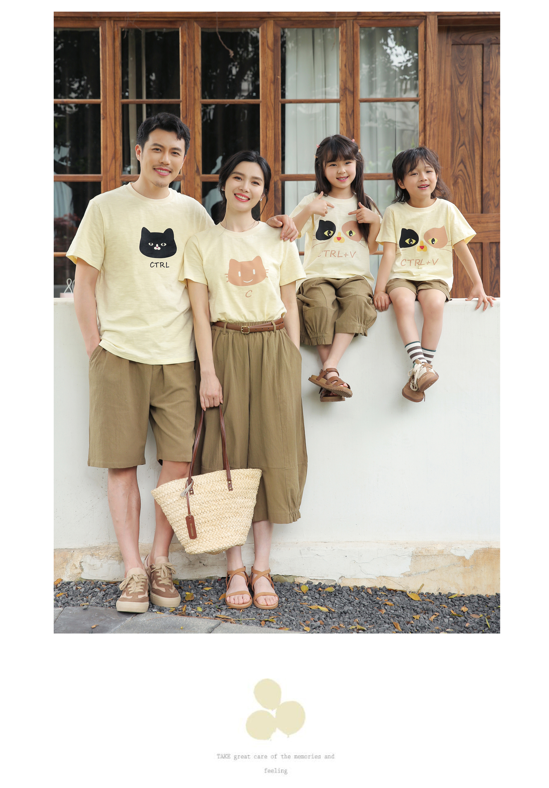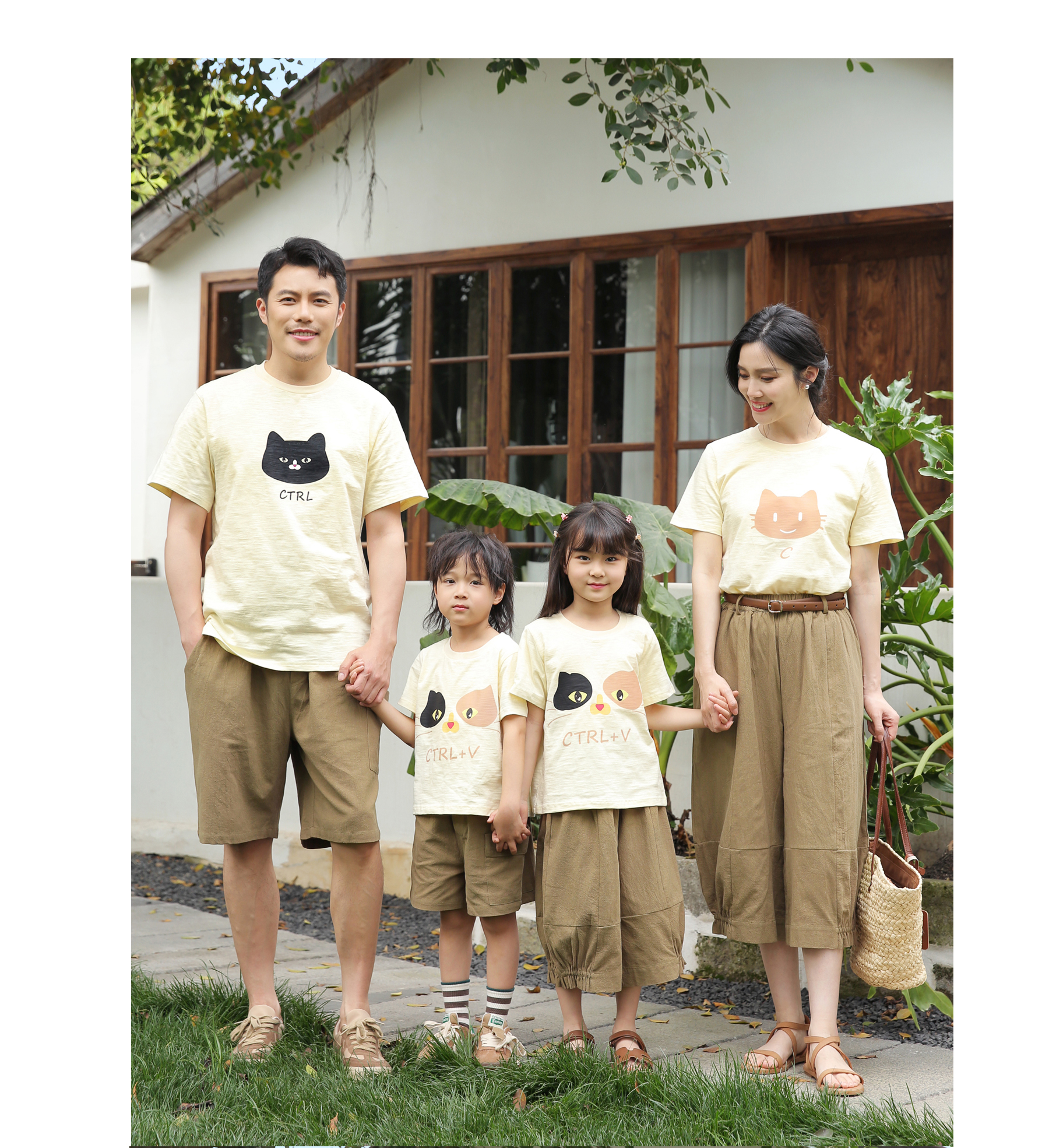 2025夏裝新款純棉寬松卡通休閒洋氣母子女一家三口四口親子裝全家