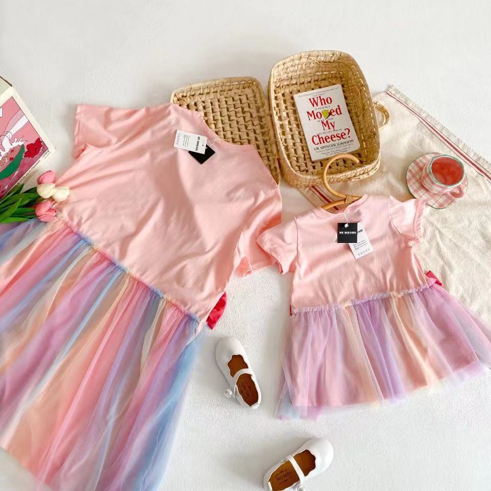 不一樣的親子裝夏季連衣裙炸街母女裝短袖裙子ins風寶寶洋氣休閒