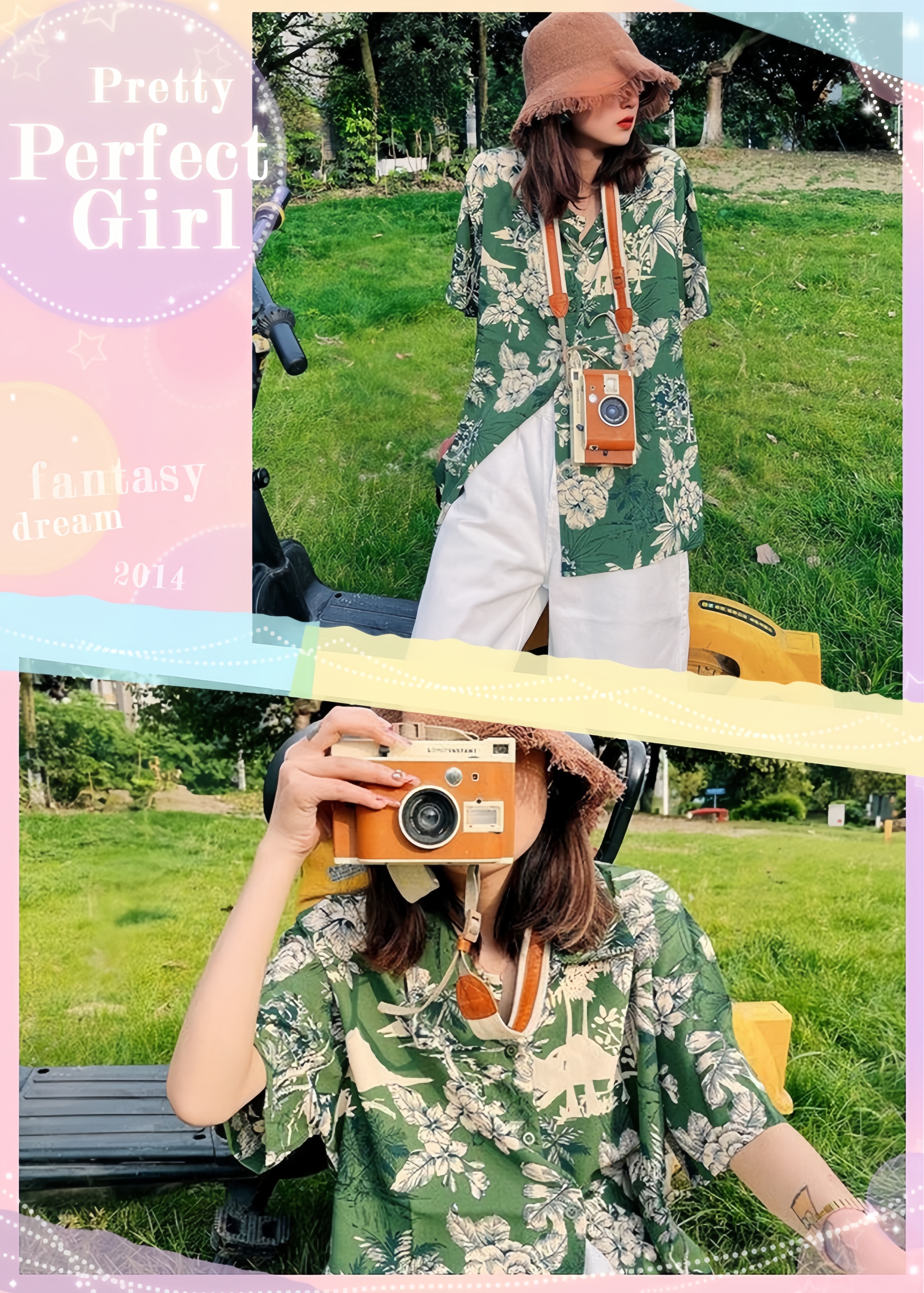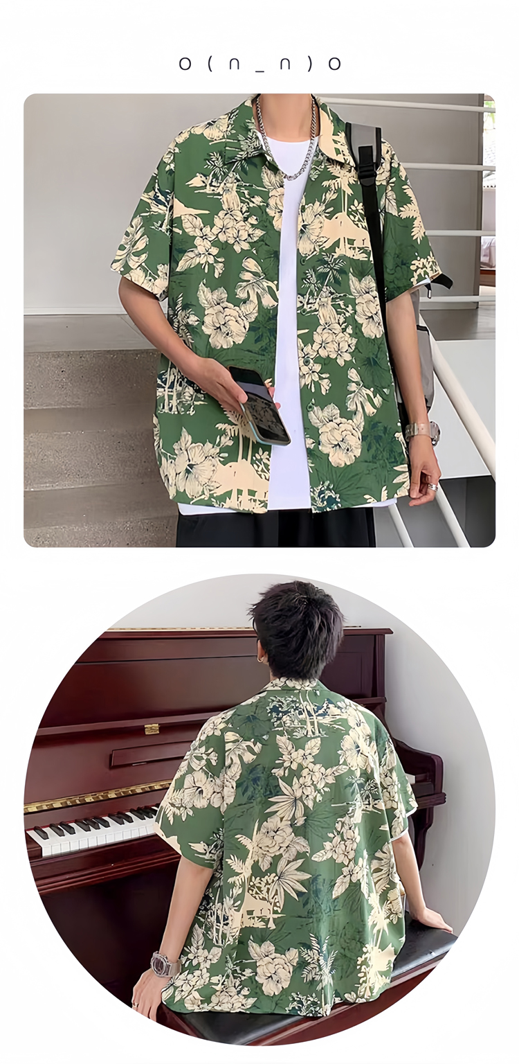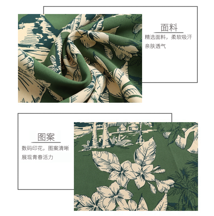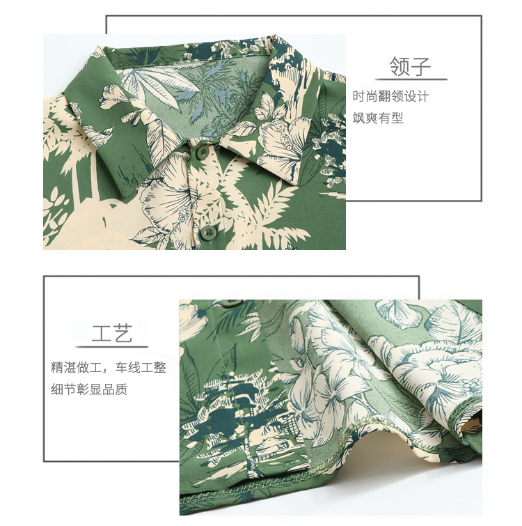 海邊度假親子裝一家三口夏威夷復古港風碎花短袖襯衫母女母子套裝