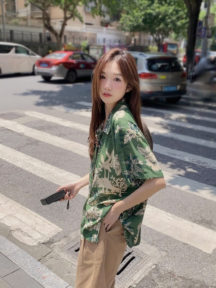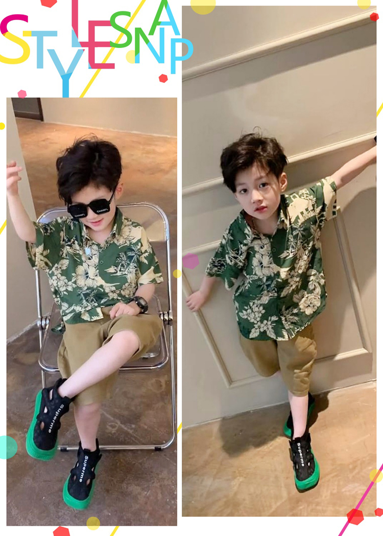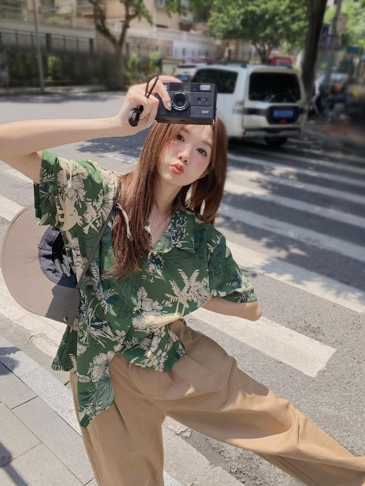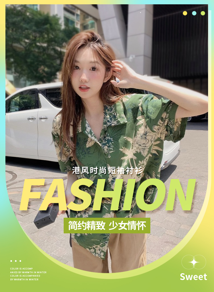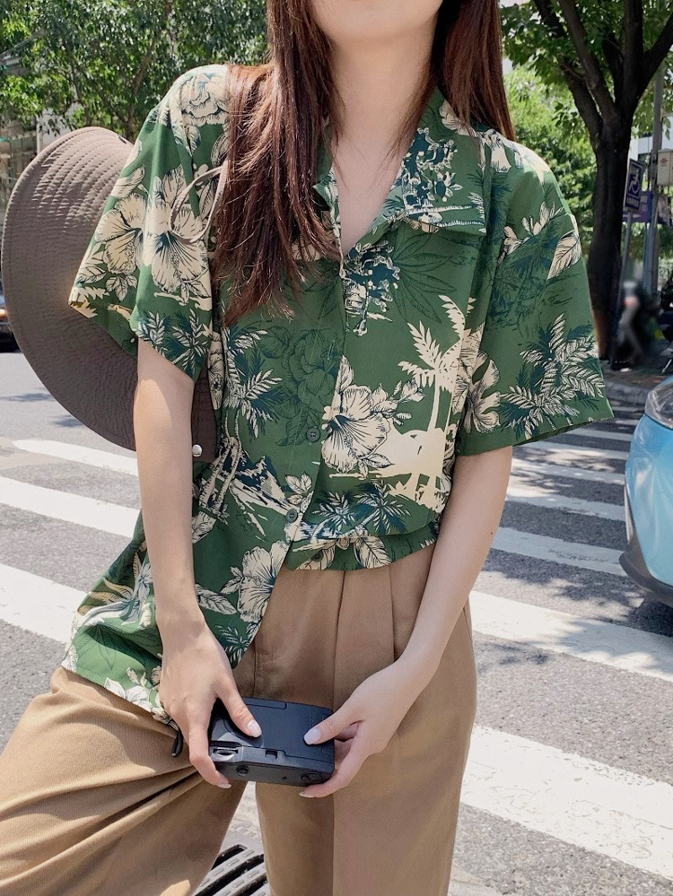 海邊度假親子裝一家三口夏威夷復古港風碎花短袖襯衫母女母子套裝