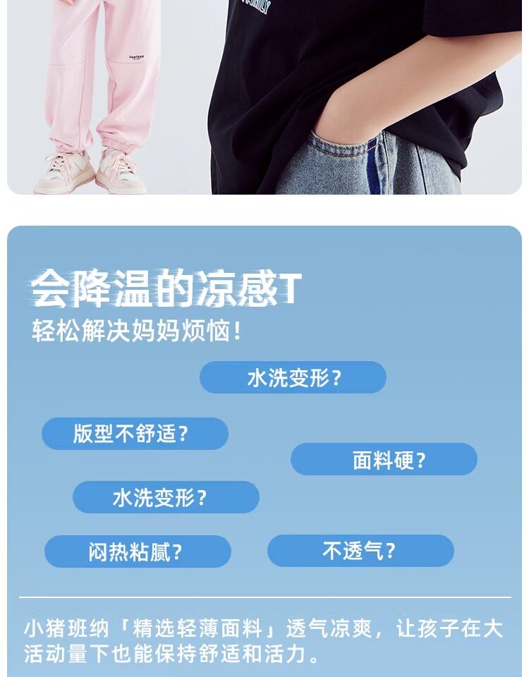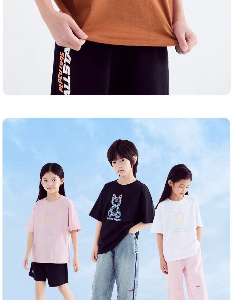小豬班納童裝夏裝新款兒童短袖T恤中大童男童上衣女童親子裝