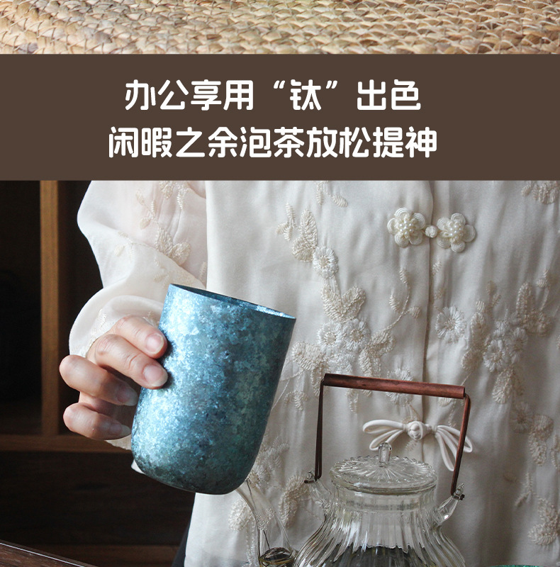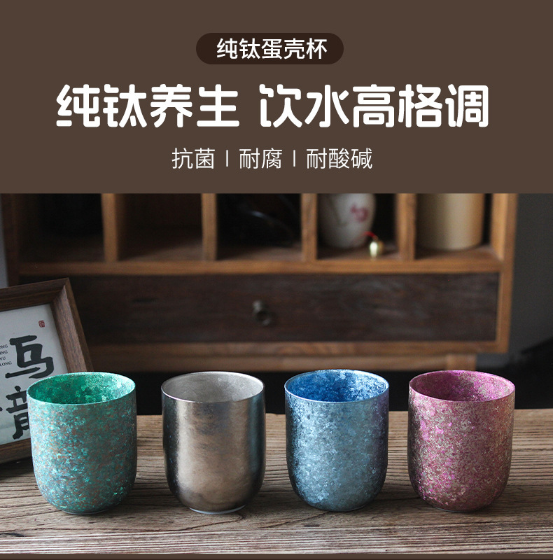 新款鈦杯雙層純鈦水杯家用隔熱蛋殼杯高檔輕奢u型水杯雞蛋杯禮品
