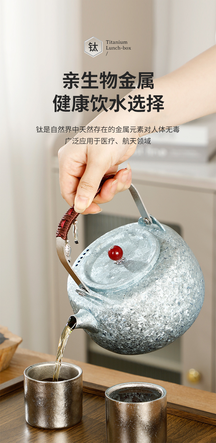 純鈦泡茶器套裝品茗杯冰花鷹嘴泡茶器高級露營酒杯喝茶泡茶鈦杯
