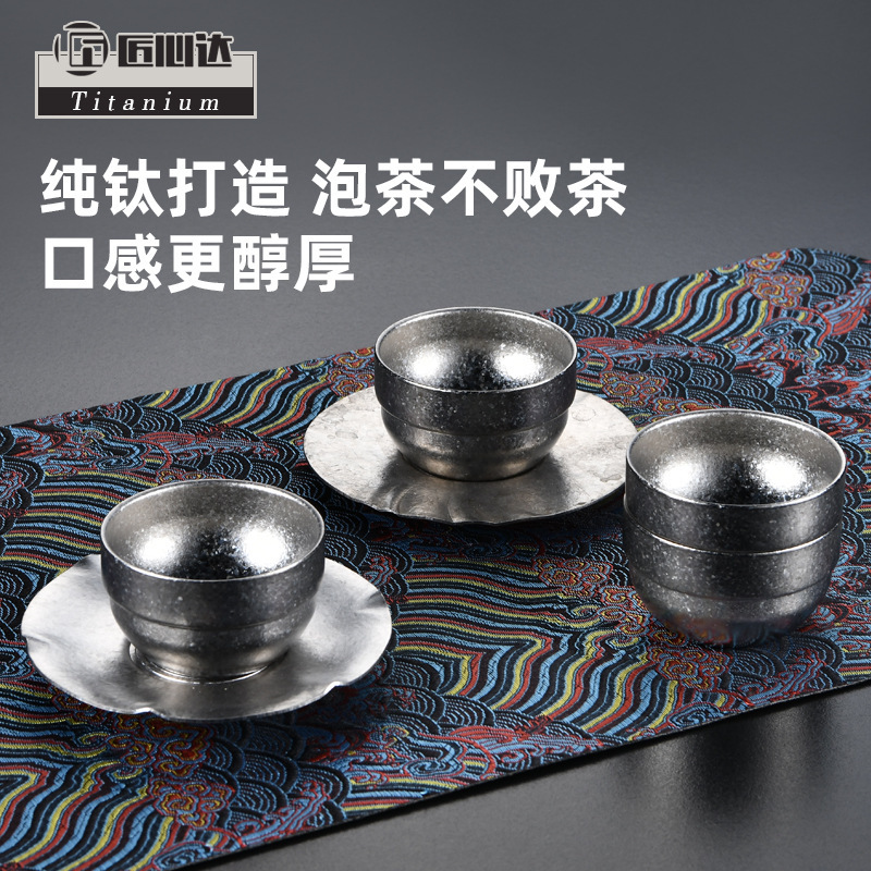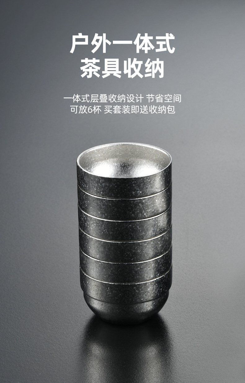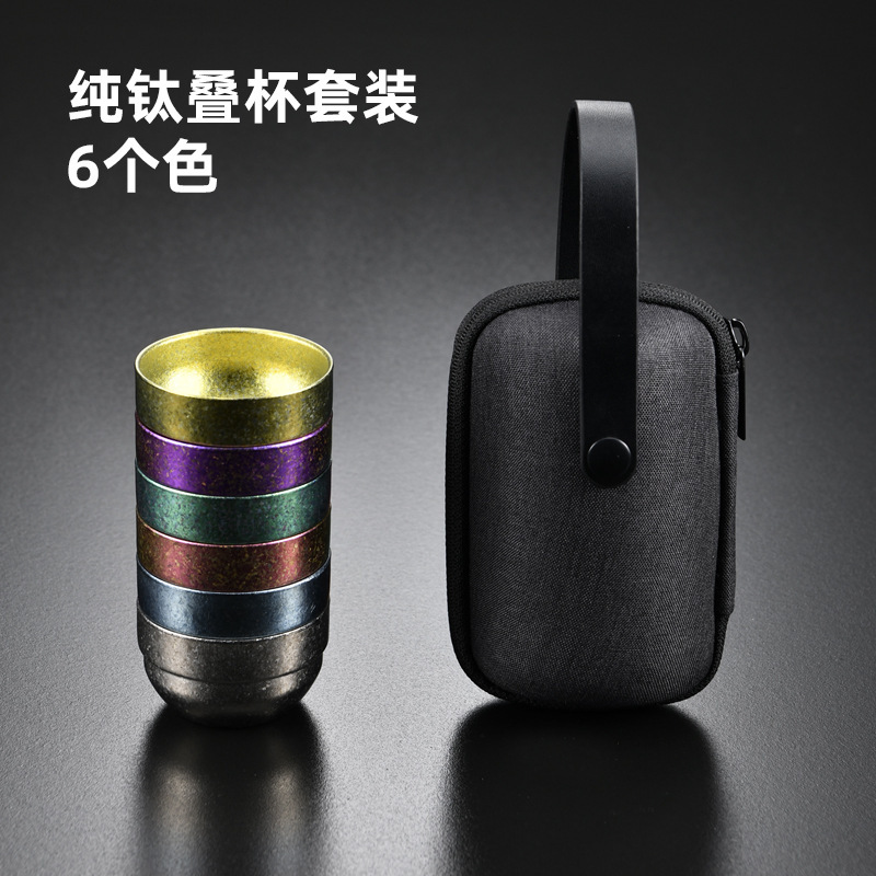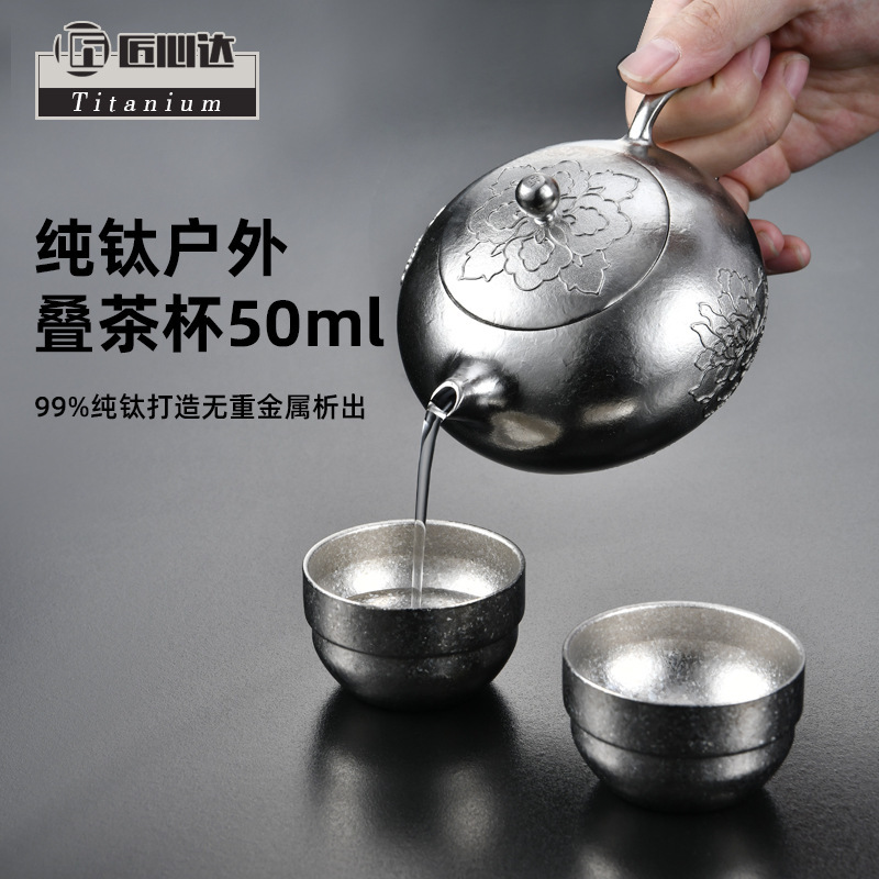 鈦杯純鈦疊杯戶外野營水杯隨身茶具套裝可攜式收納雙層茶杯禮品套裝