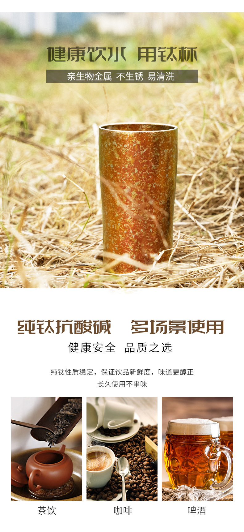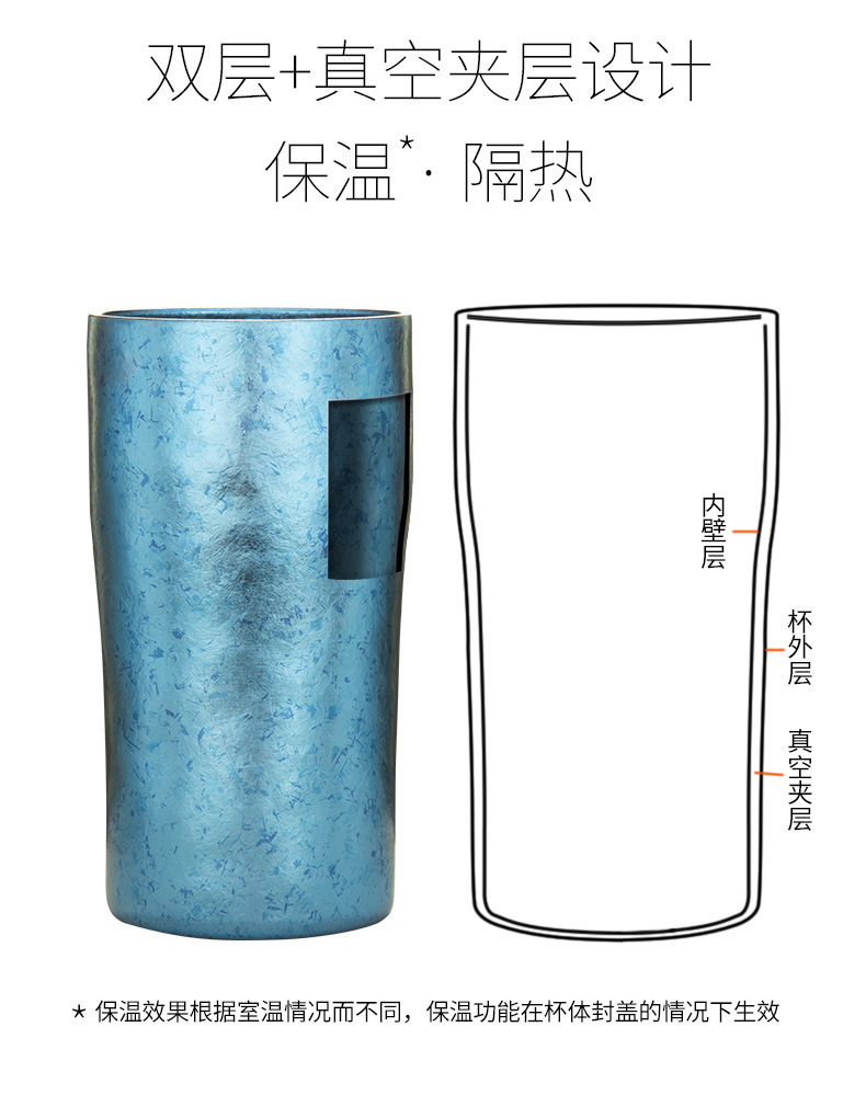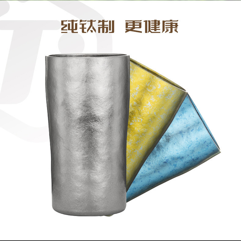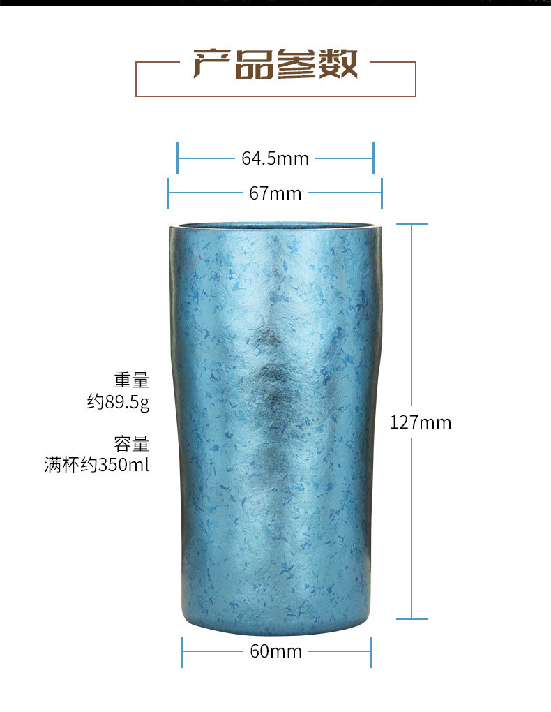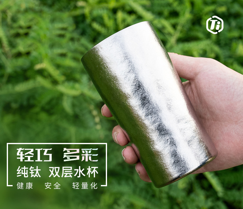 雙層純鈦啤酒杯真空保溫鈦杯時尚隨手杯鈦金飲料杯純鈦大口杯戶外