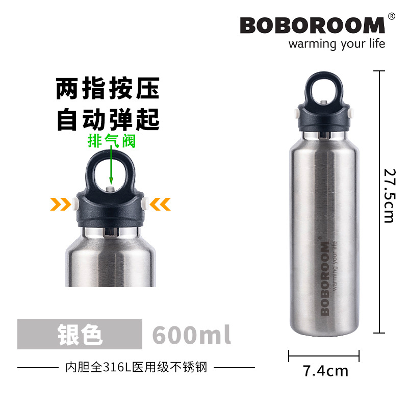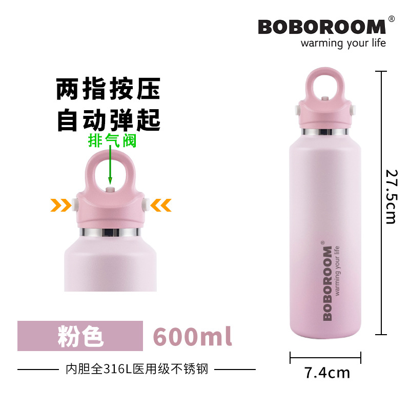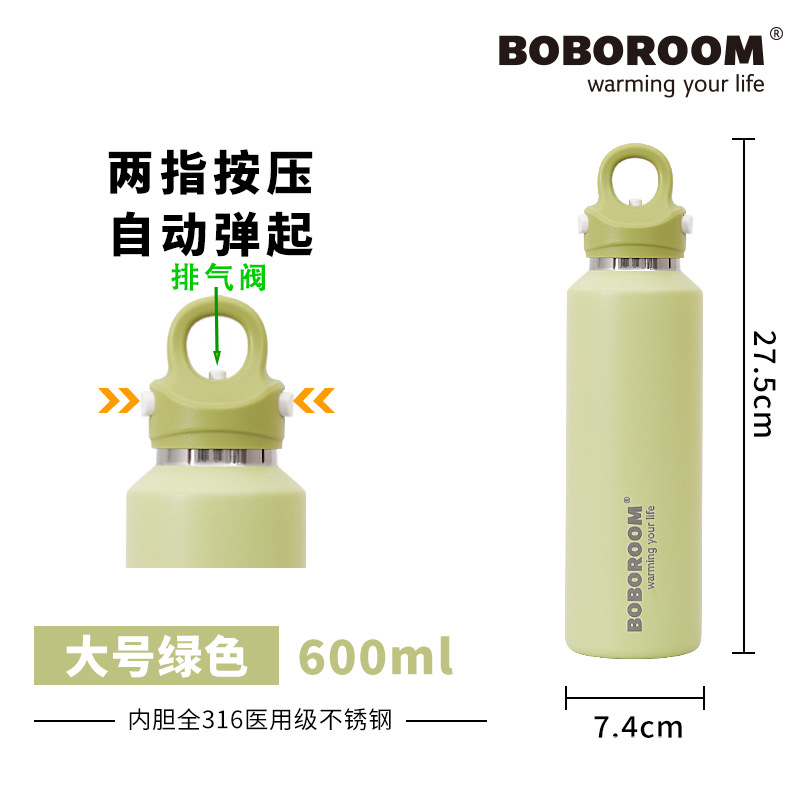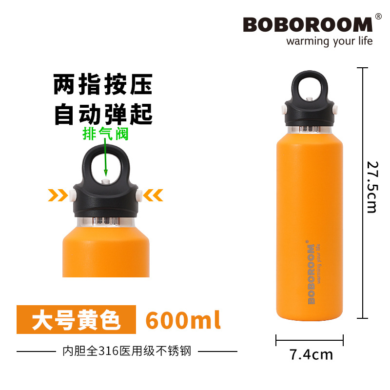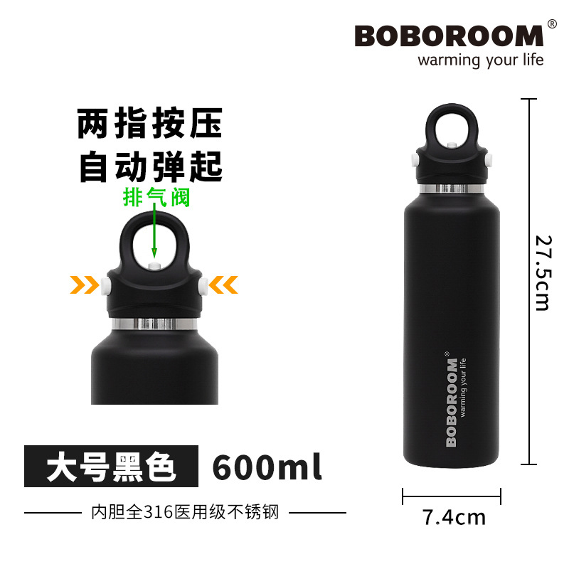 新款316不鏽鋼無螺紋保溫保冷杯雙層真空速開杯一鍵開啓