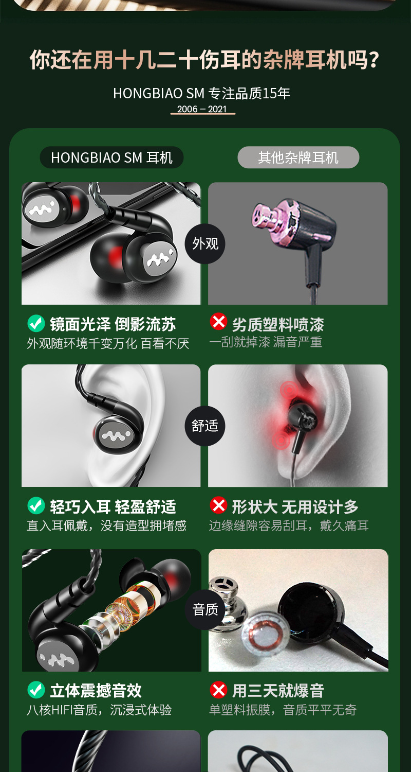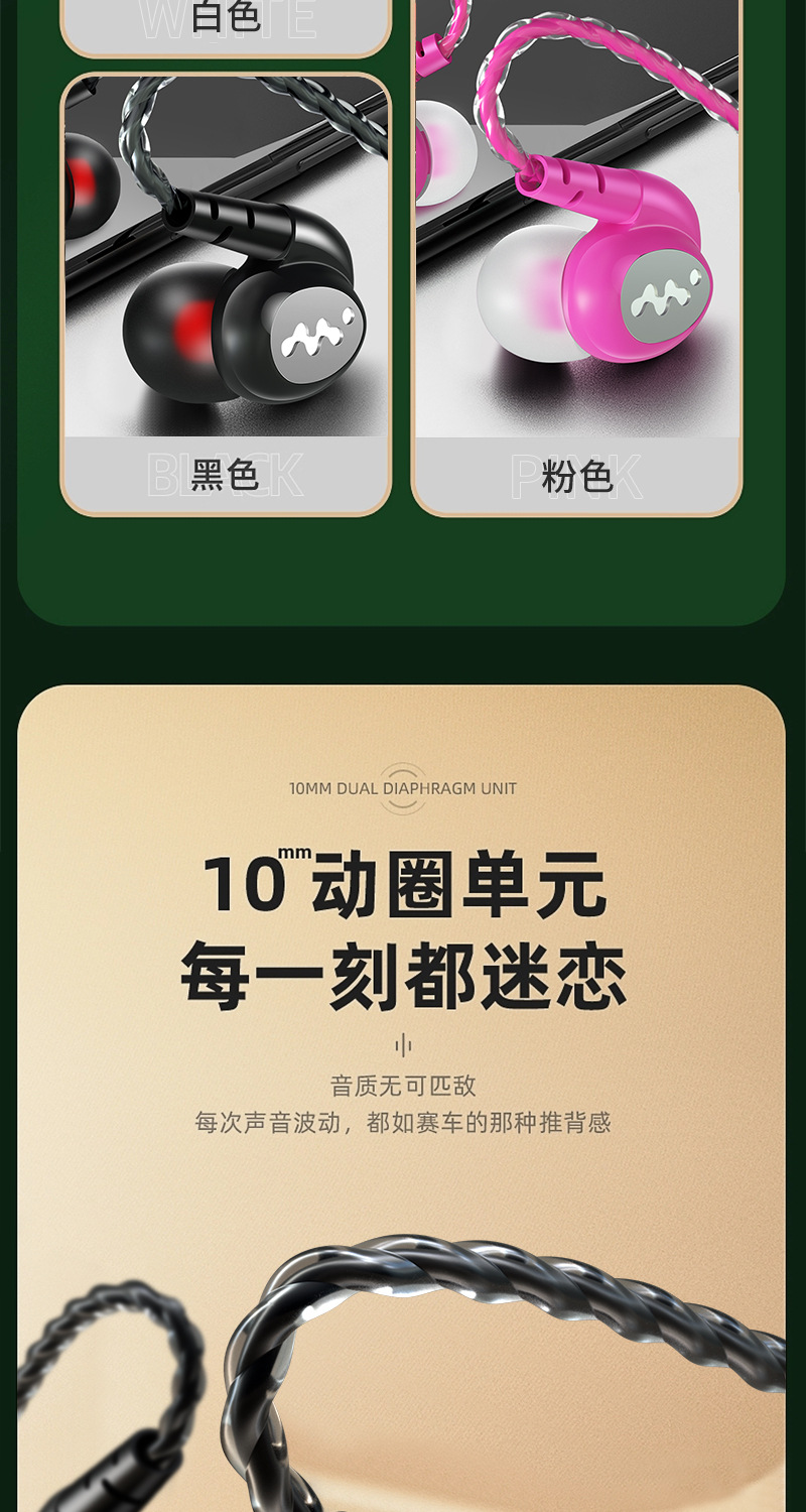 耳機高音質重低音適用運動跑步k歌遊戯入耳式線控帶麥美標通用