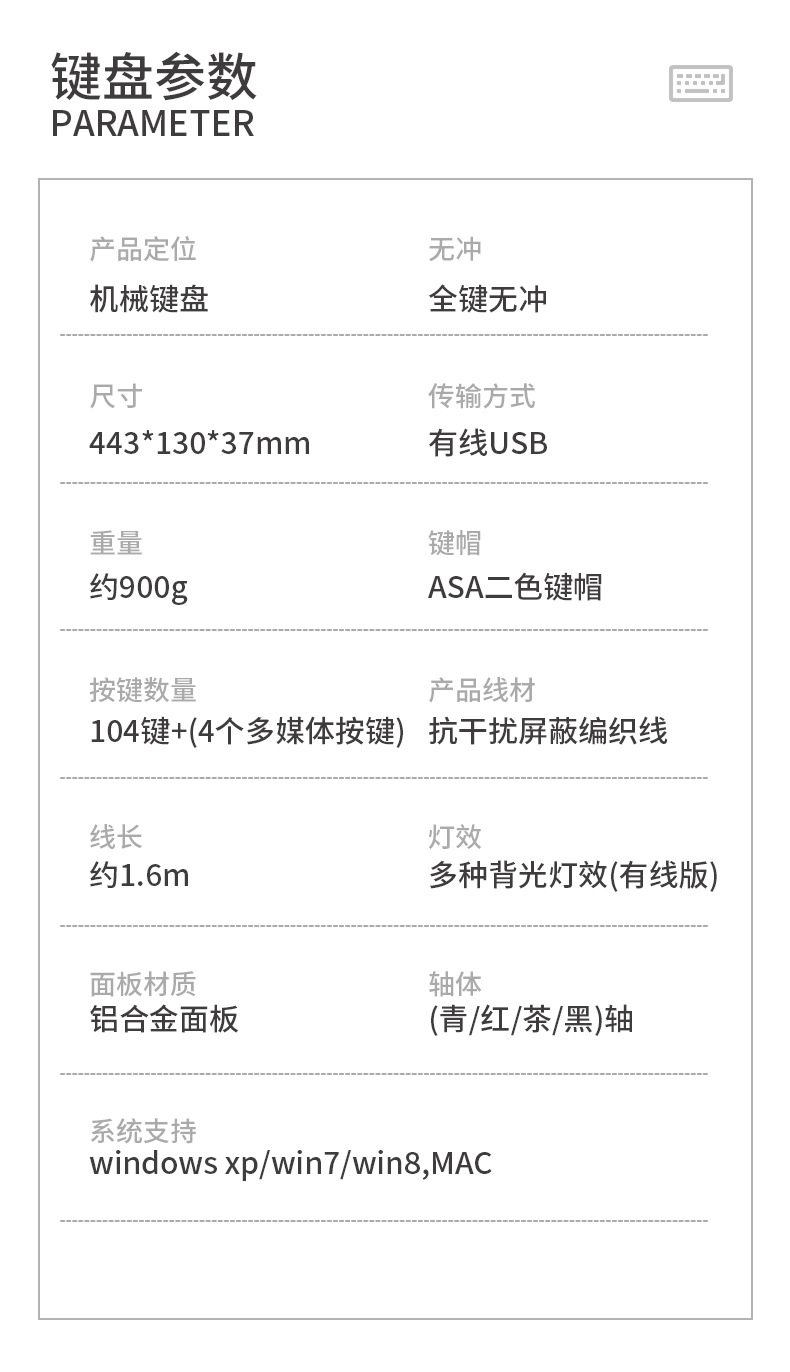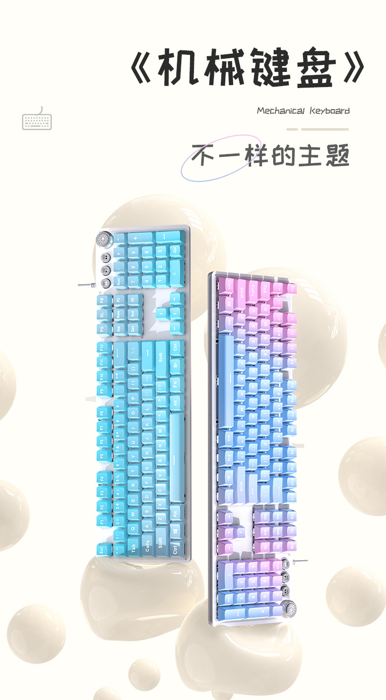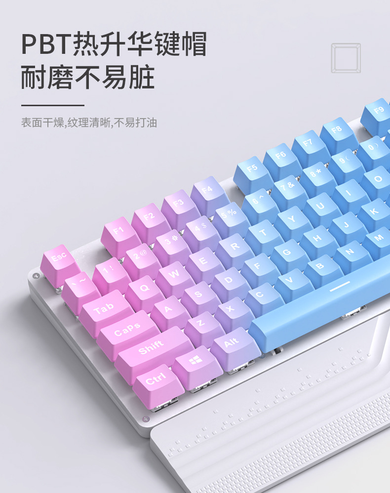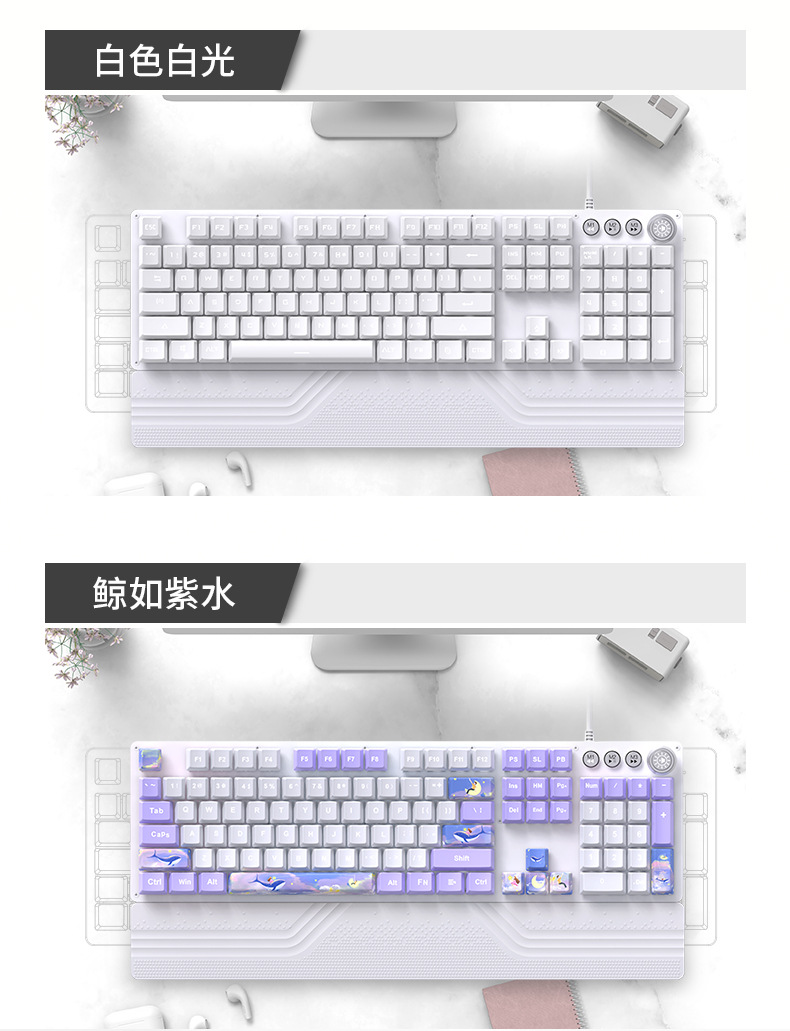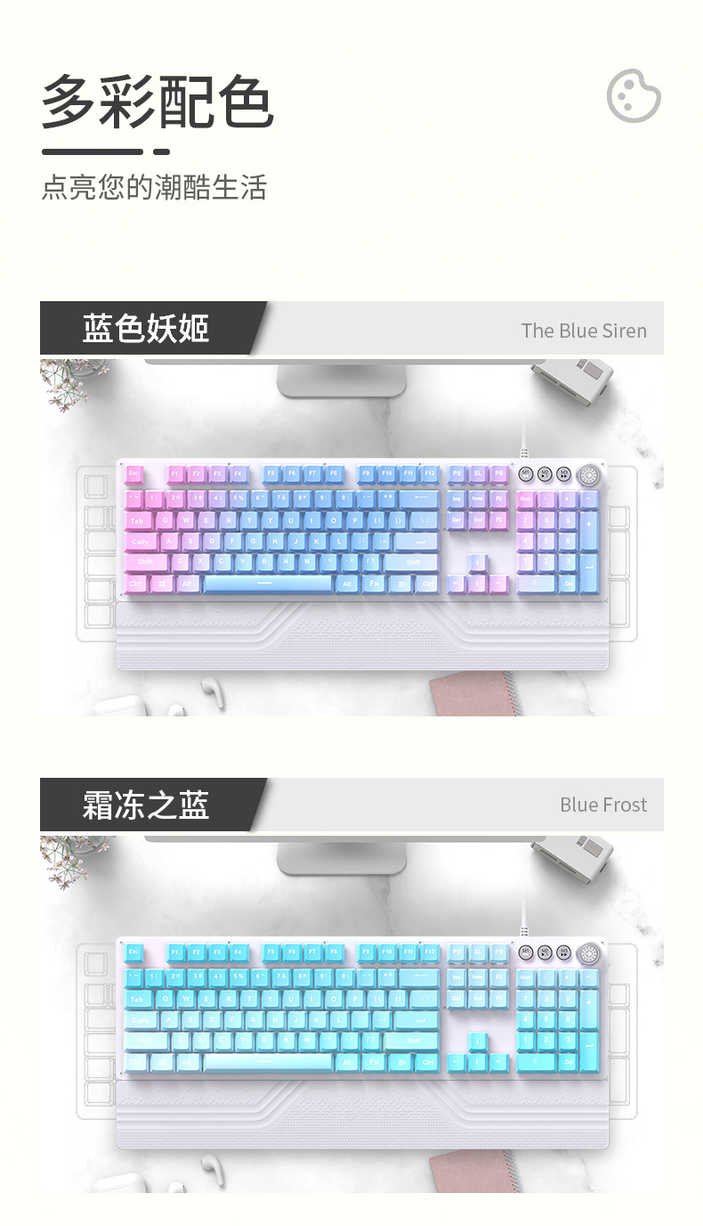 前行者TK930機械鍵盤白藍主題金屬面板有線電競遊戯鍵盤