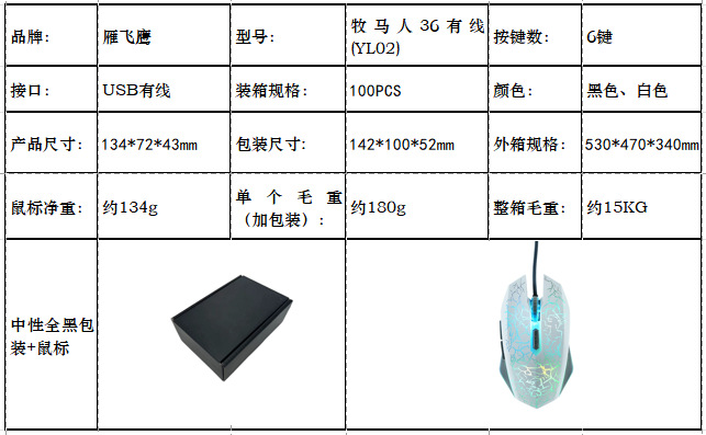 | 包裝清單 | 滑鼠 包裝 充電線 |