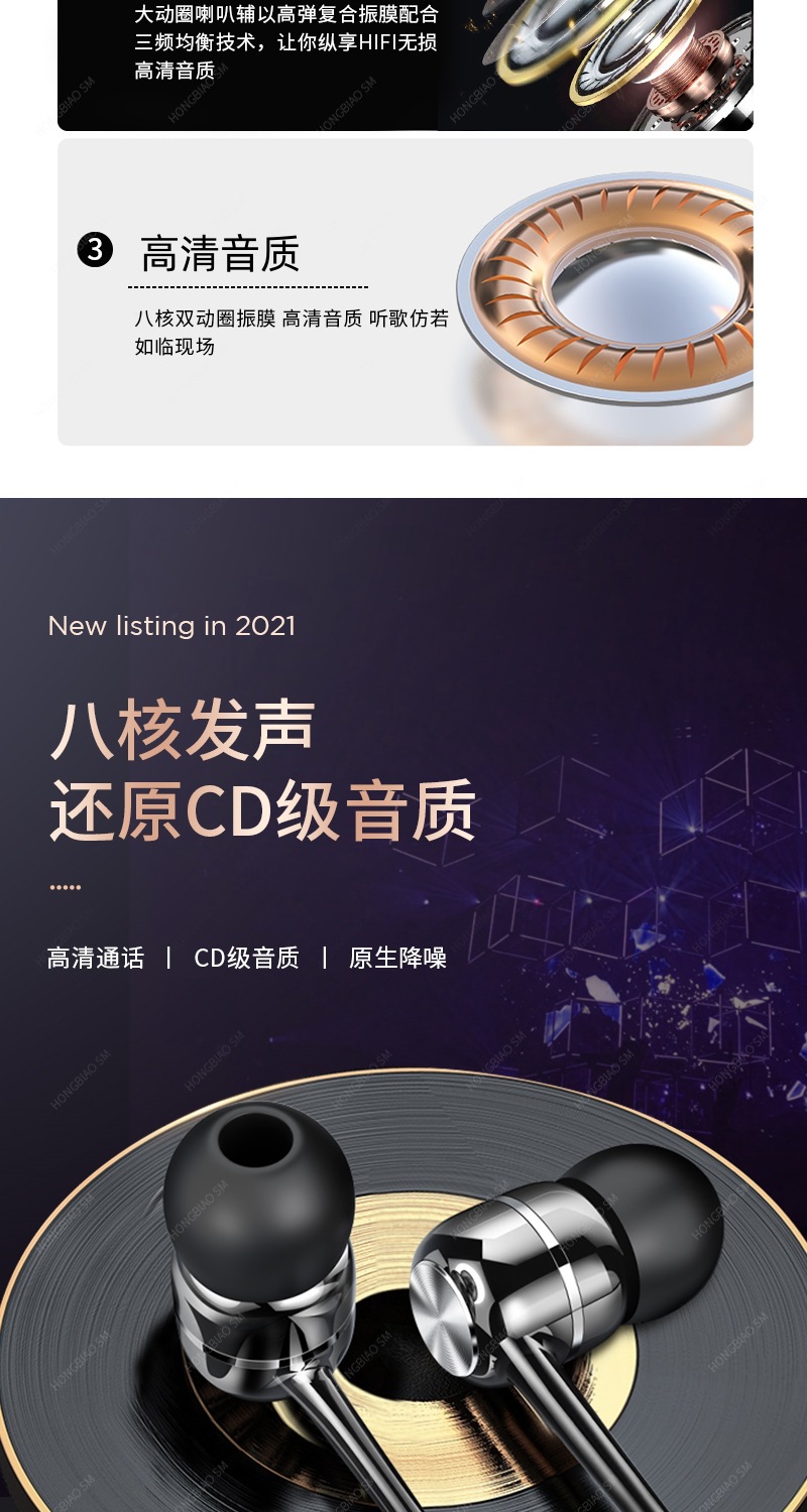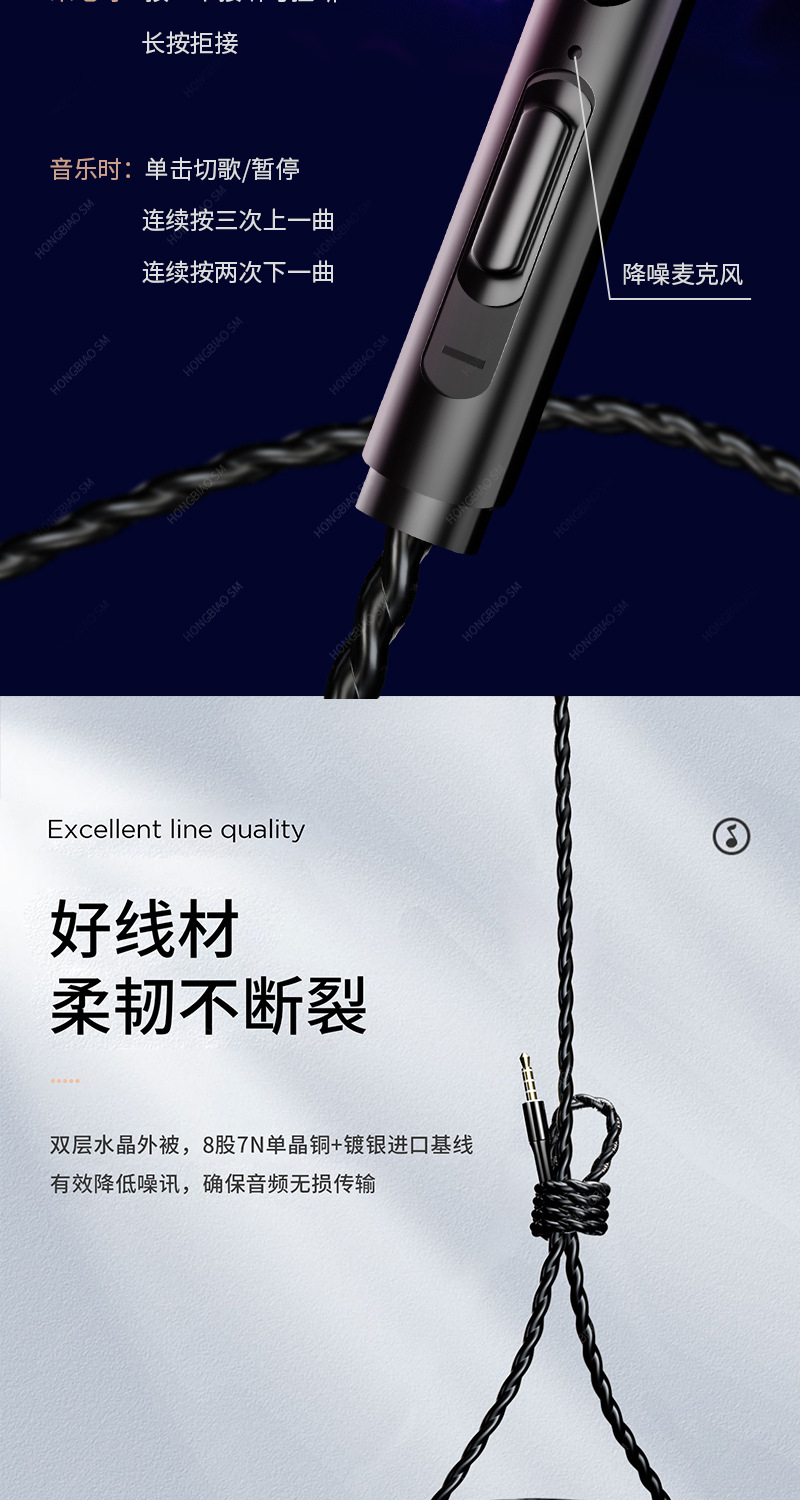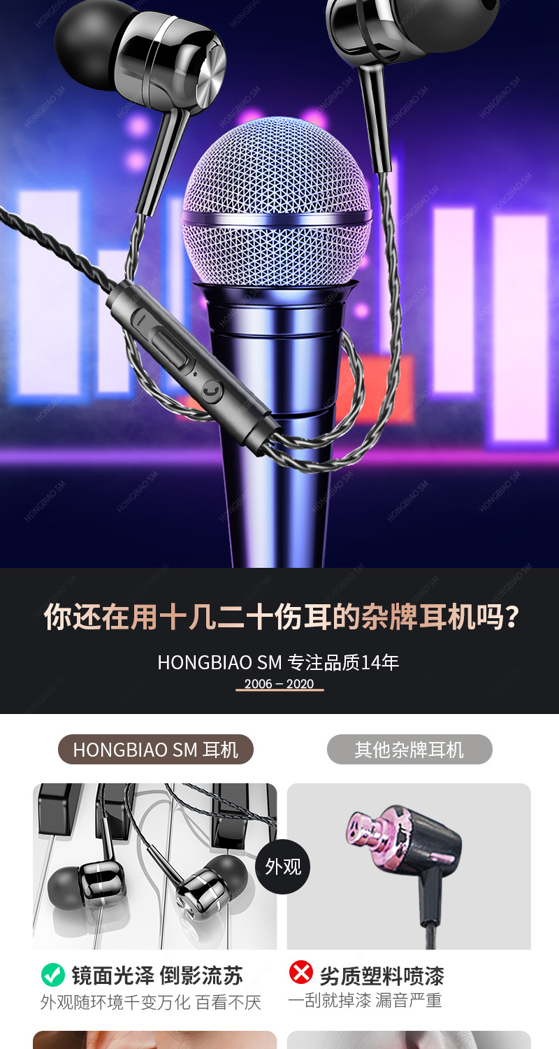 耳機適用小米新款重低音入耳式K歌遊戯吃雞調音線控帶麥