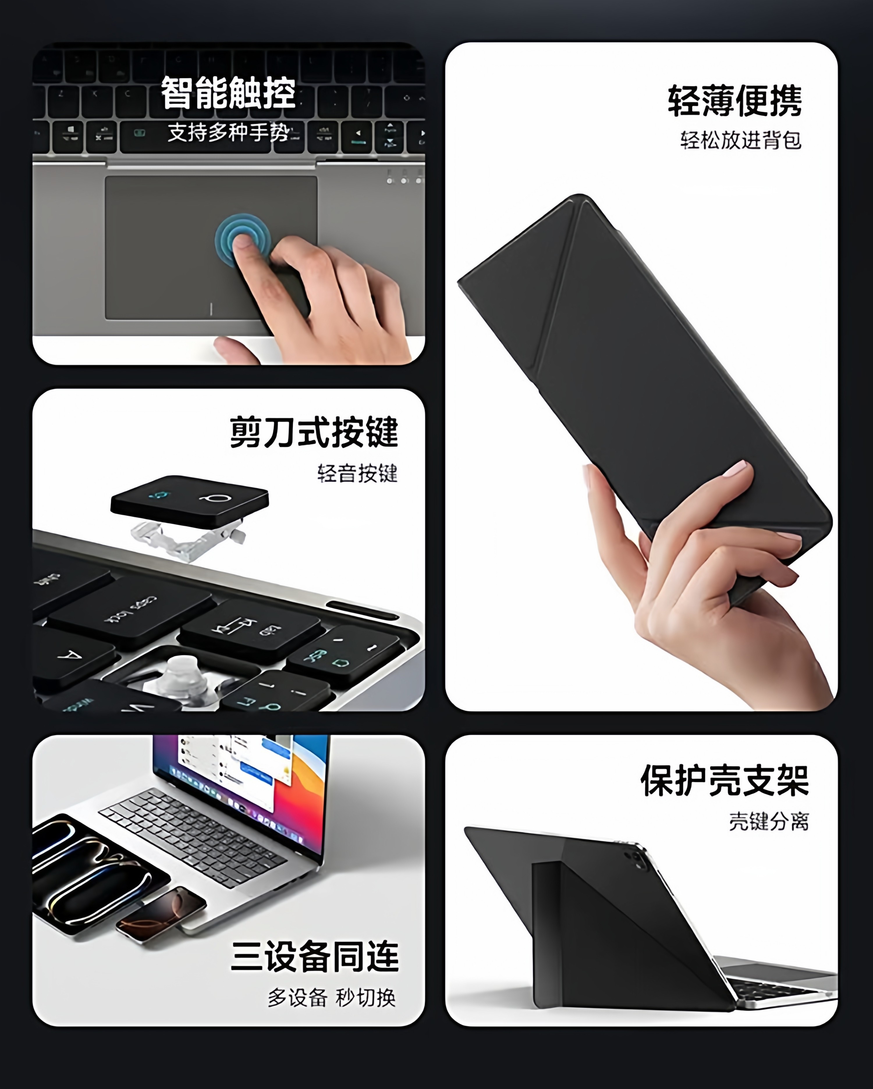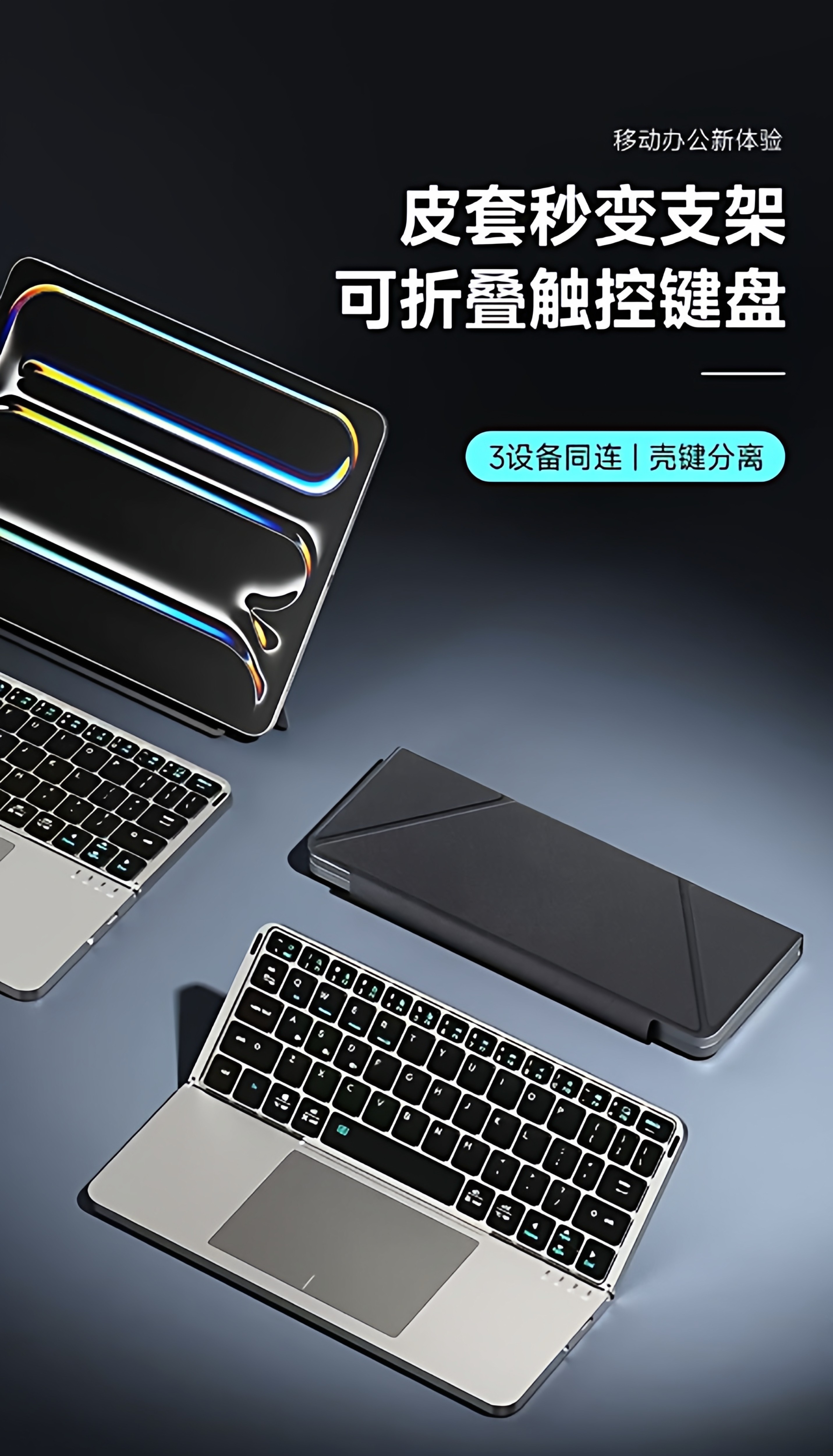 KOCULUS藍牙無線觸控鍵盤雙折曡收納適用蘋果ipad通用平板電腦