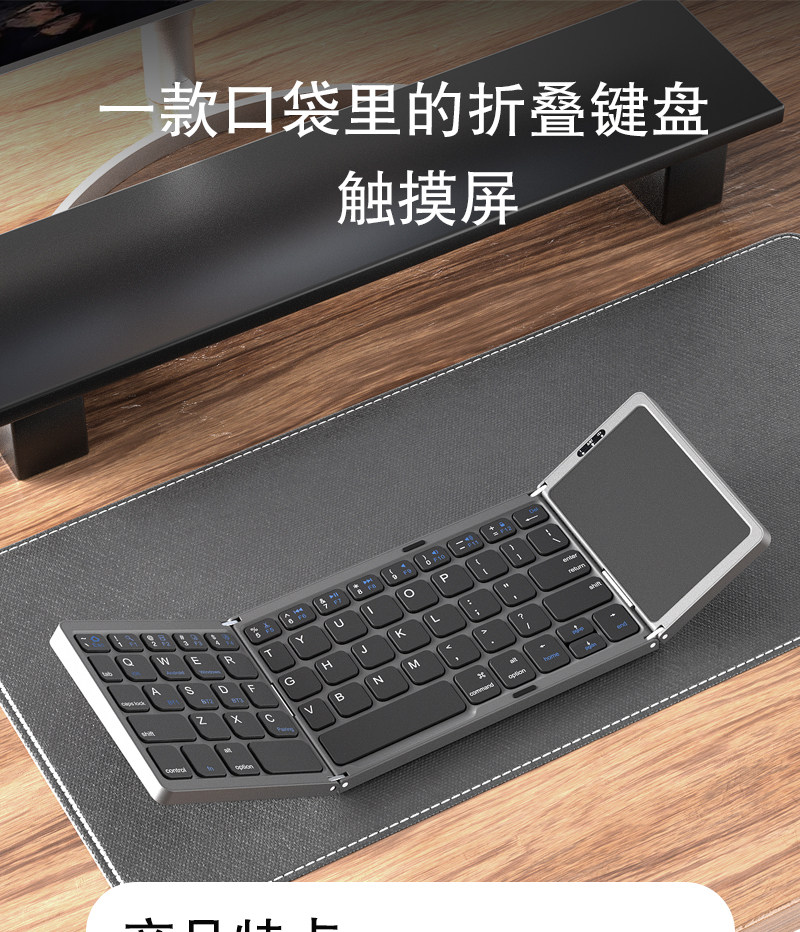 三折曡藍牙鍵盤可攜式超薄迷你鍵盤手機平板電腦全屏觸控折曡鍵盤