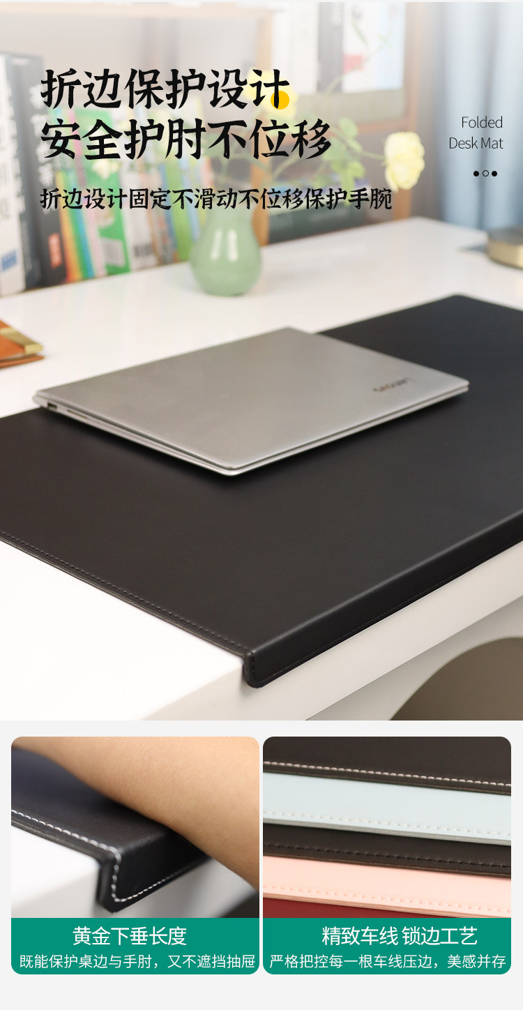 特硬掛釦折邊商務電腦桌加厚耐熱超大號防髒辦公鍵盤滑鼠皮革墊